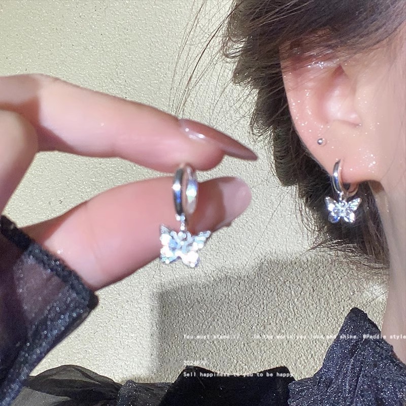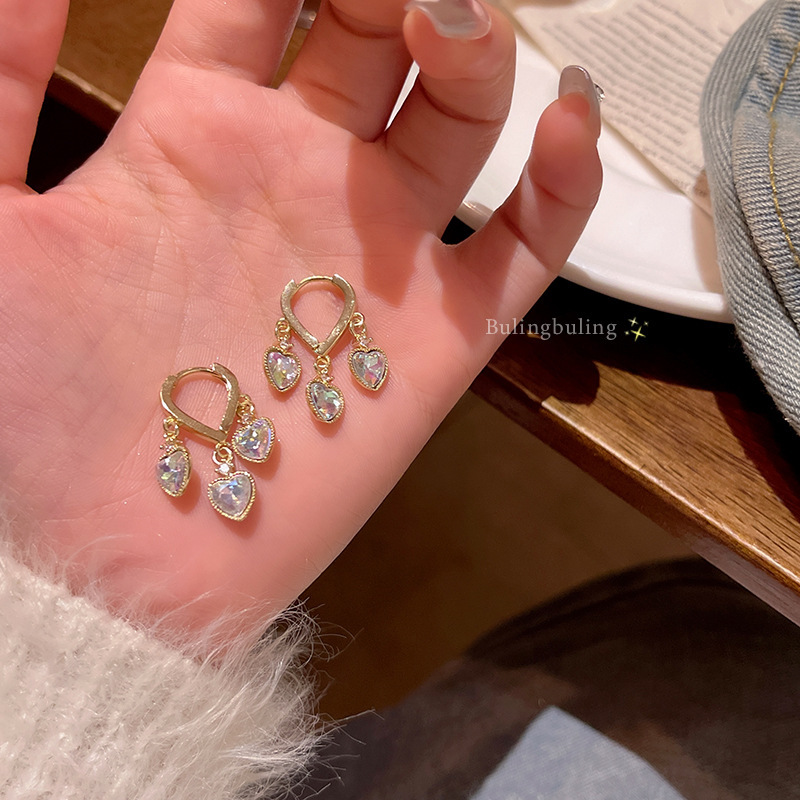 韩国新款轻奢小众素圈耳圈耳扣女ins潮百搭气质锆石爱心耳钉耳环
