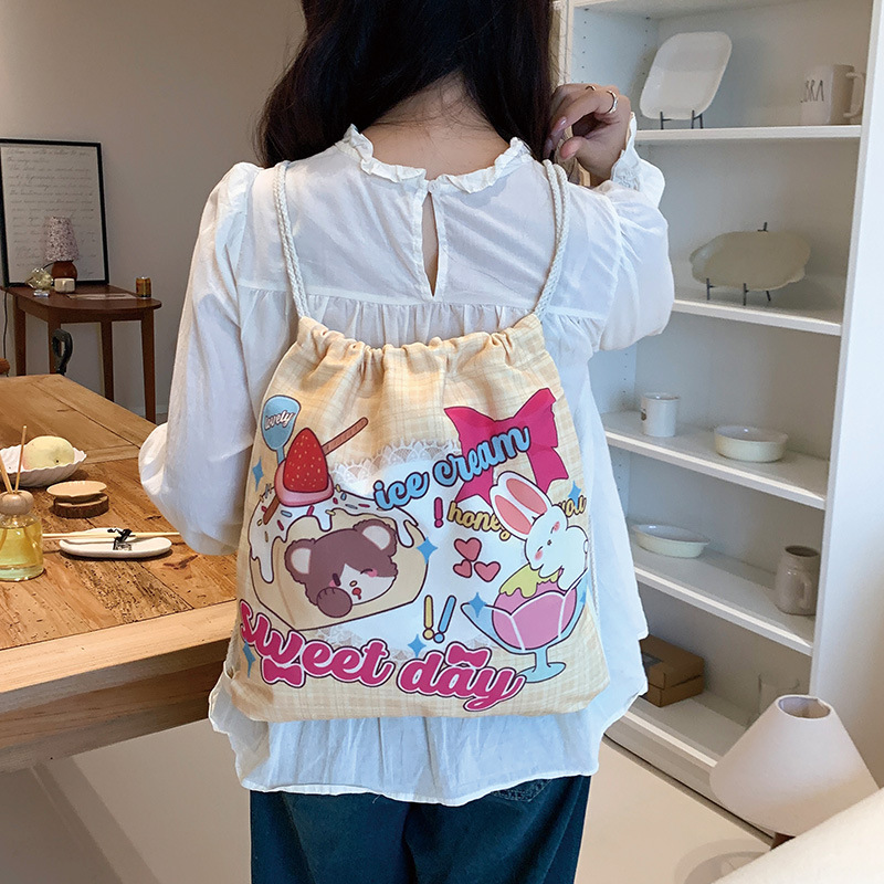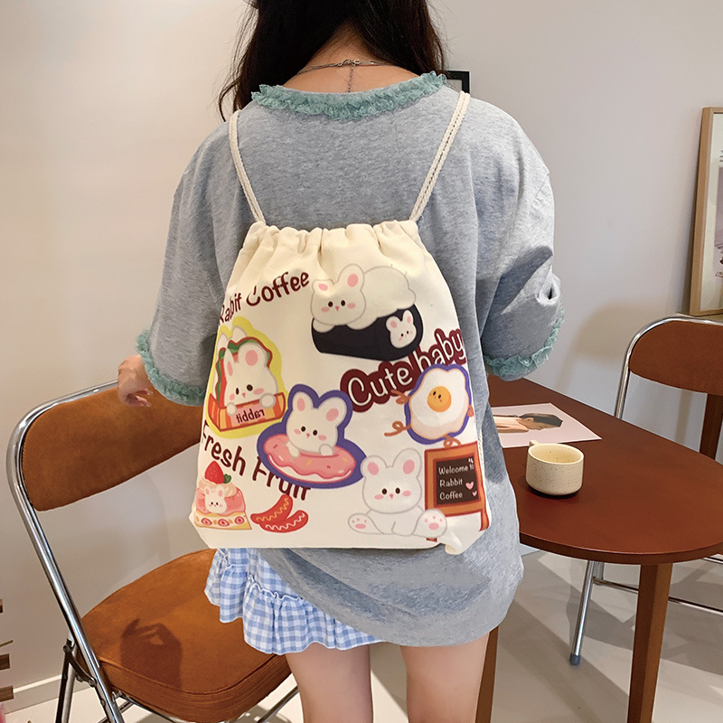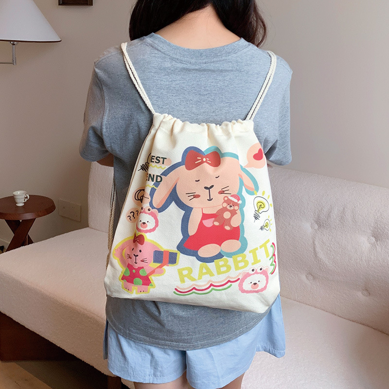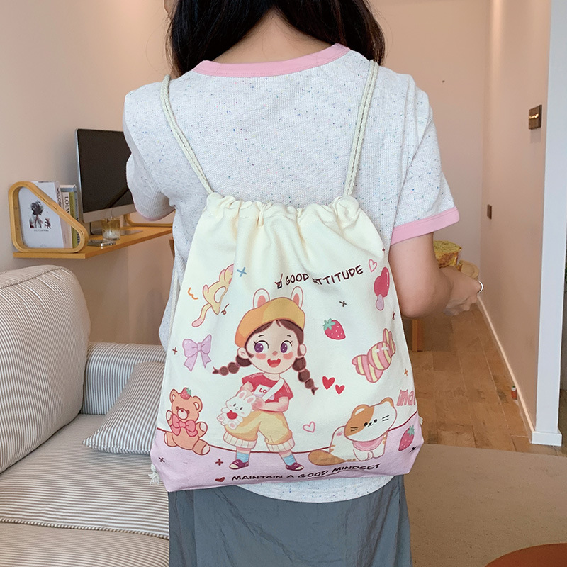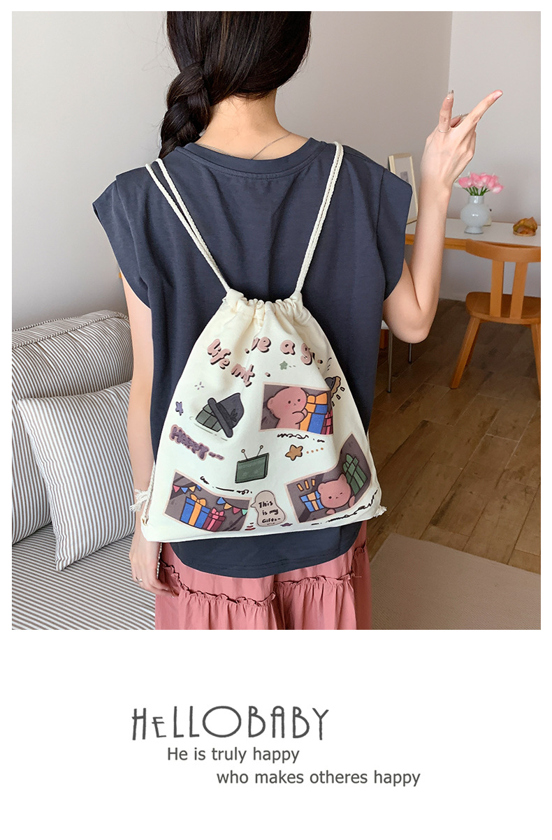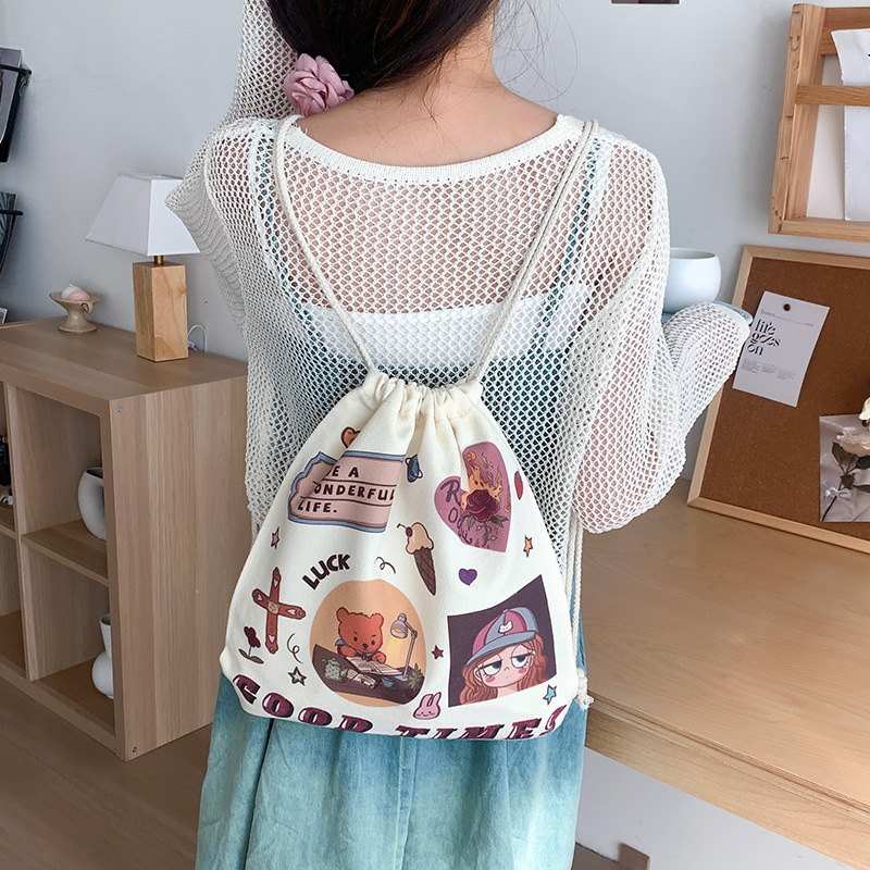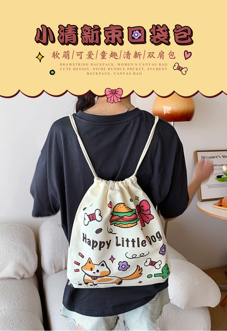 帆布包女2025新款多用束口袋大容量帆布袋双肩包可爱简约布袋批发