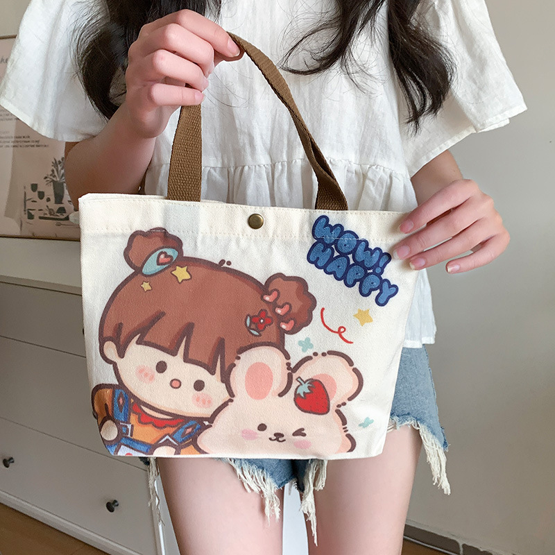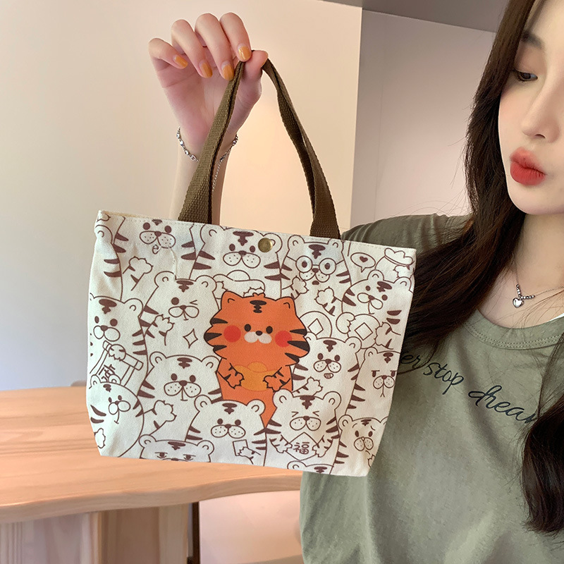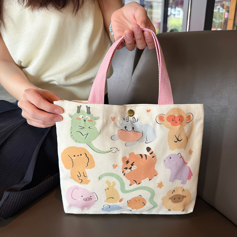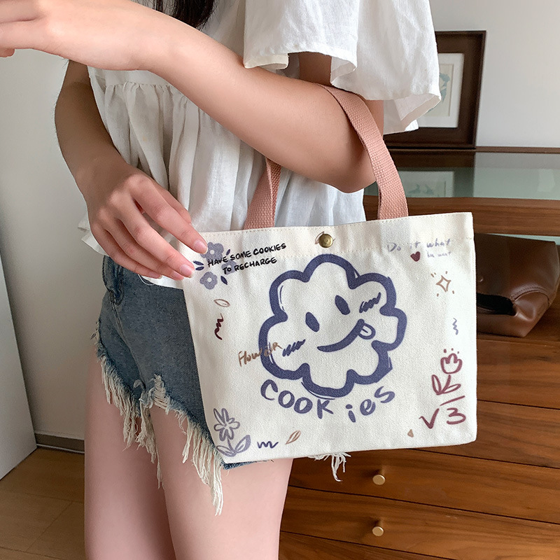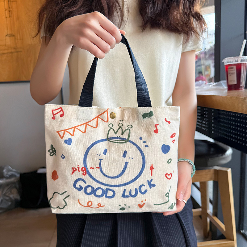 卡通小巧帆布包女2025春夏新款手提袋上班族便携收纳包袋一件代发