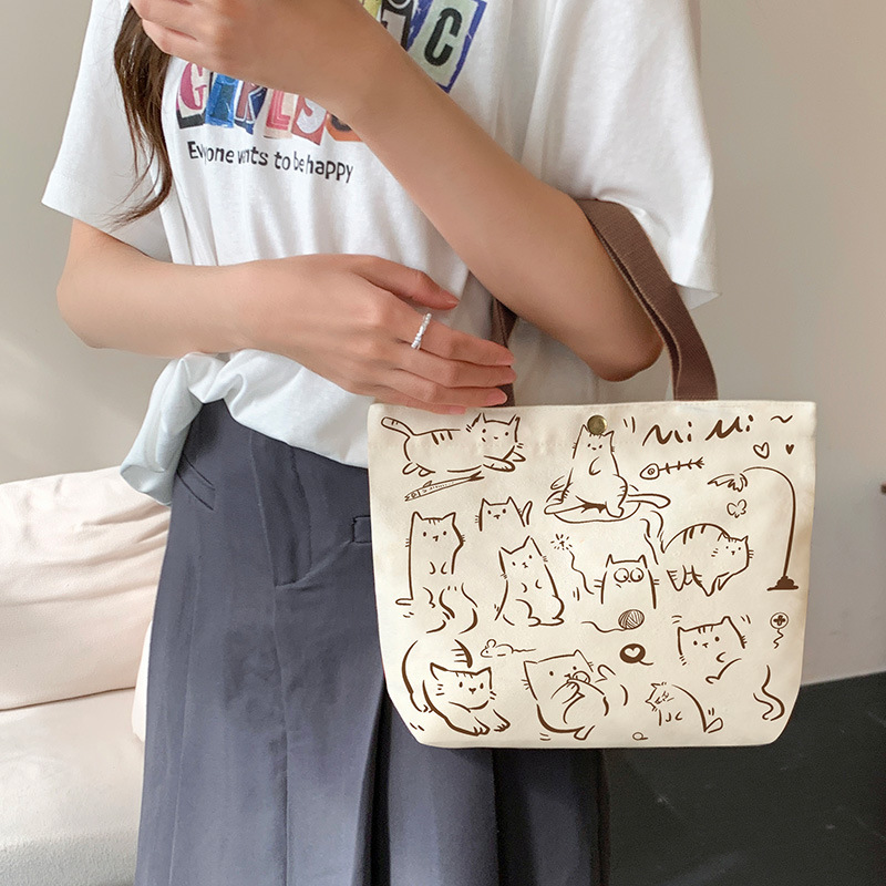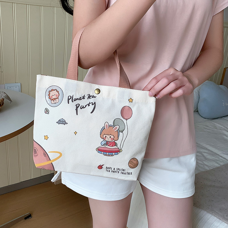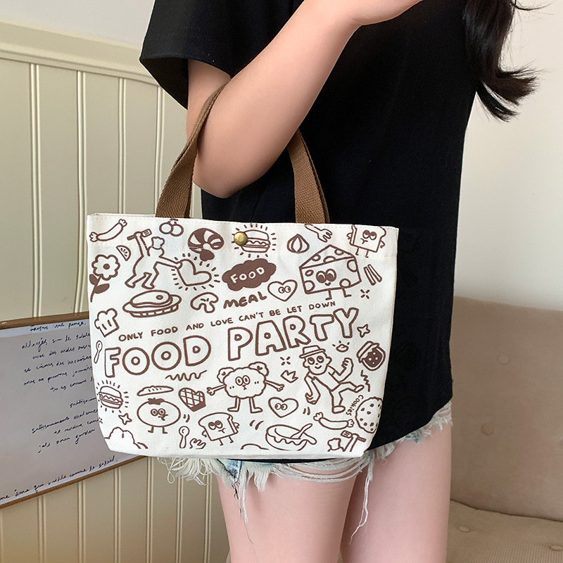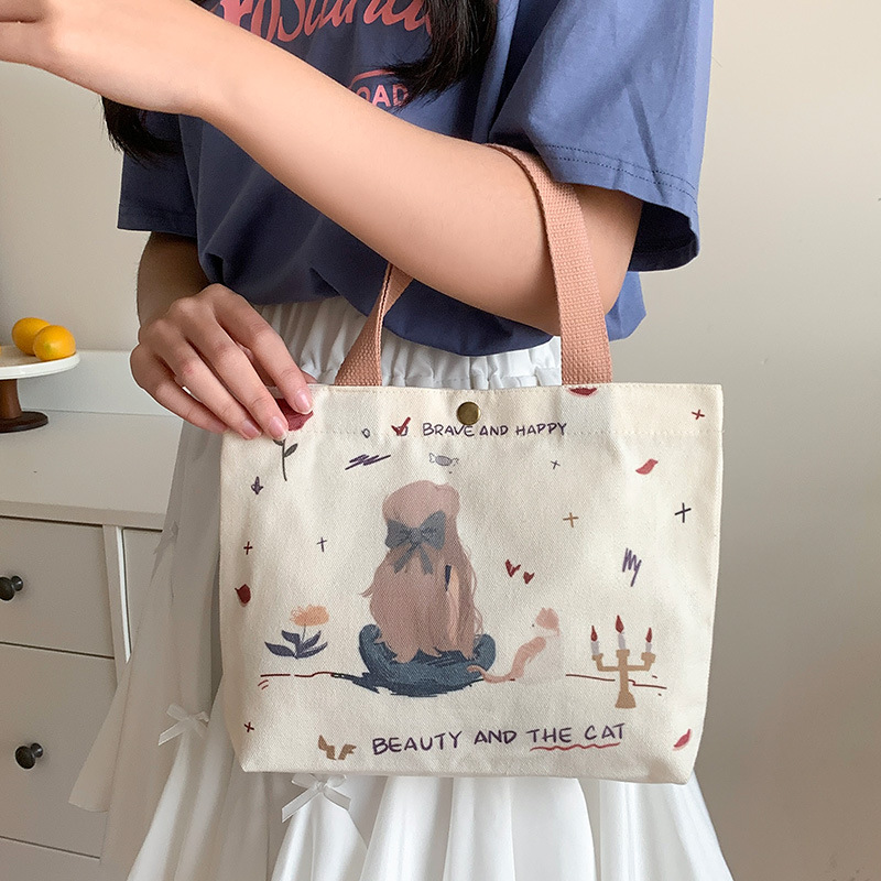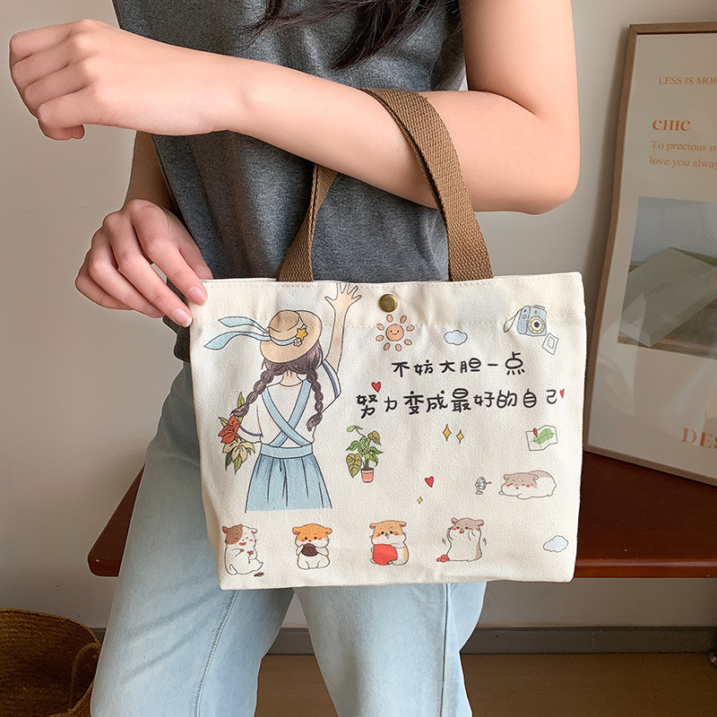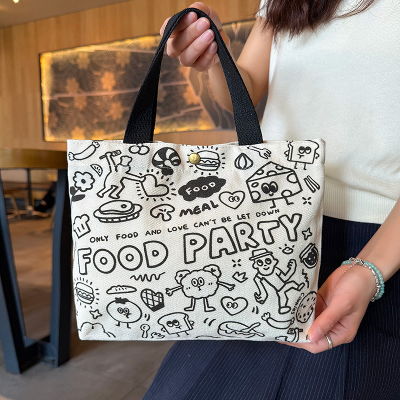 卡通小巧帆布包女2025春夏新款手提袋上班族便携收纳包袋一件代发
