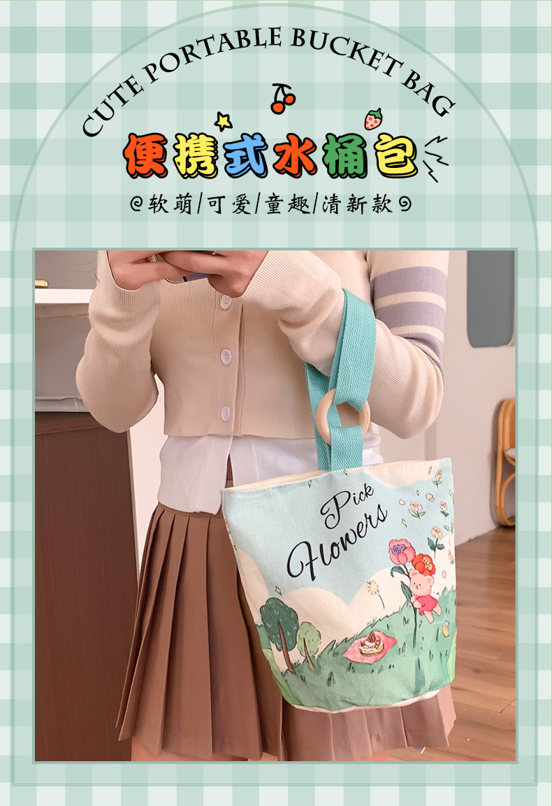 批发手提包女2025新款水桶包大容量通勤手提袋帆布包简约布袋包包