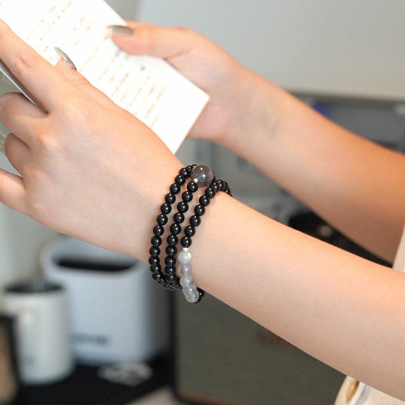 |名称|6MM黑玛瑙 灰月光石设计手链 项链双用