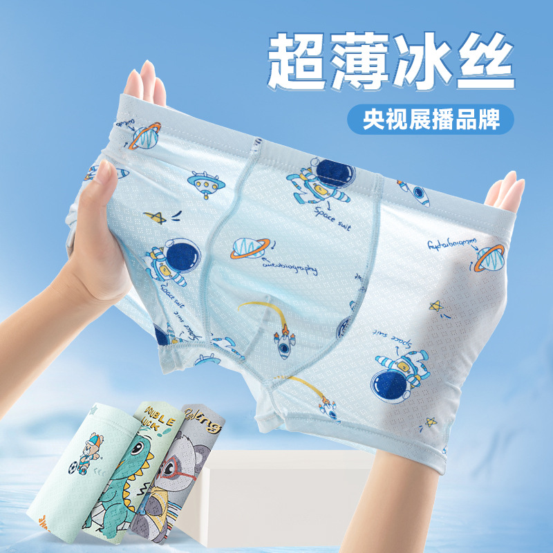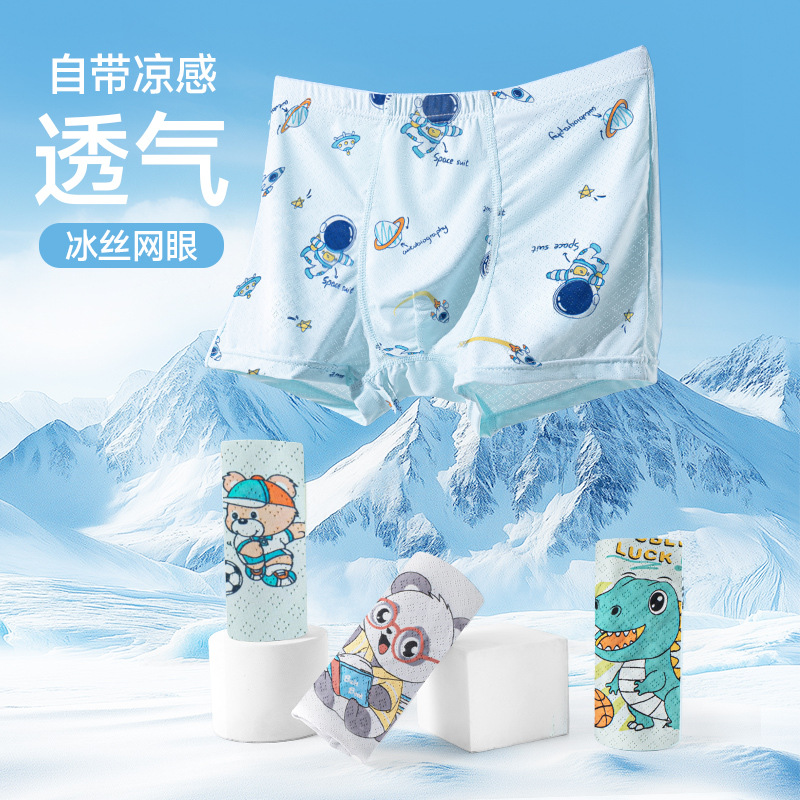 男童冰丝内裤夏季薄款儿童平角裤男童男孩冰丝a类四角短裤中大童