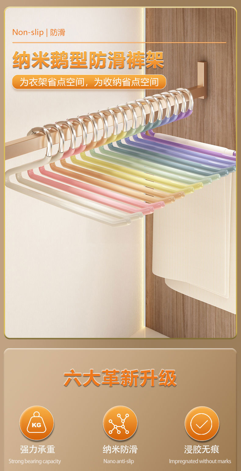 Z字裤夹鹅型裤架彩虹成人防滑浸胶衣架家用无痕收纳加粗加厚裤架