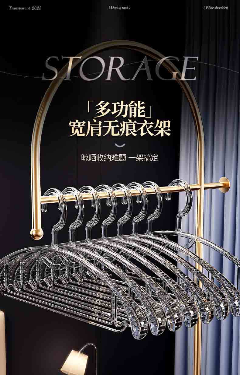 【用坏包赔】透明衣架宽肩无痕家用挂衣架子服装店水晶衣服架衣撑