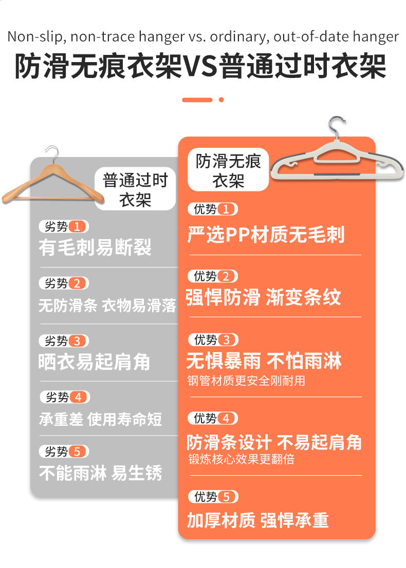 衣架家用塑料衣挂晾晒阳台成人款收纳衣服架无痕双位衣撑防滑衣架