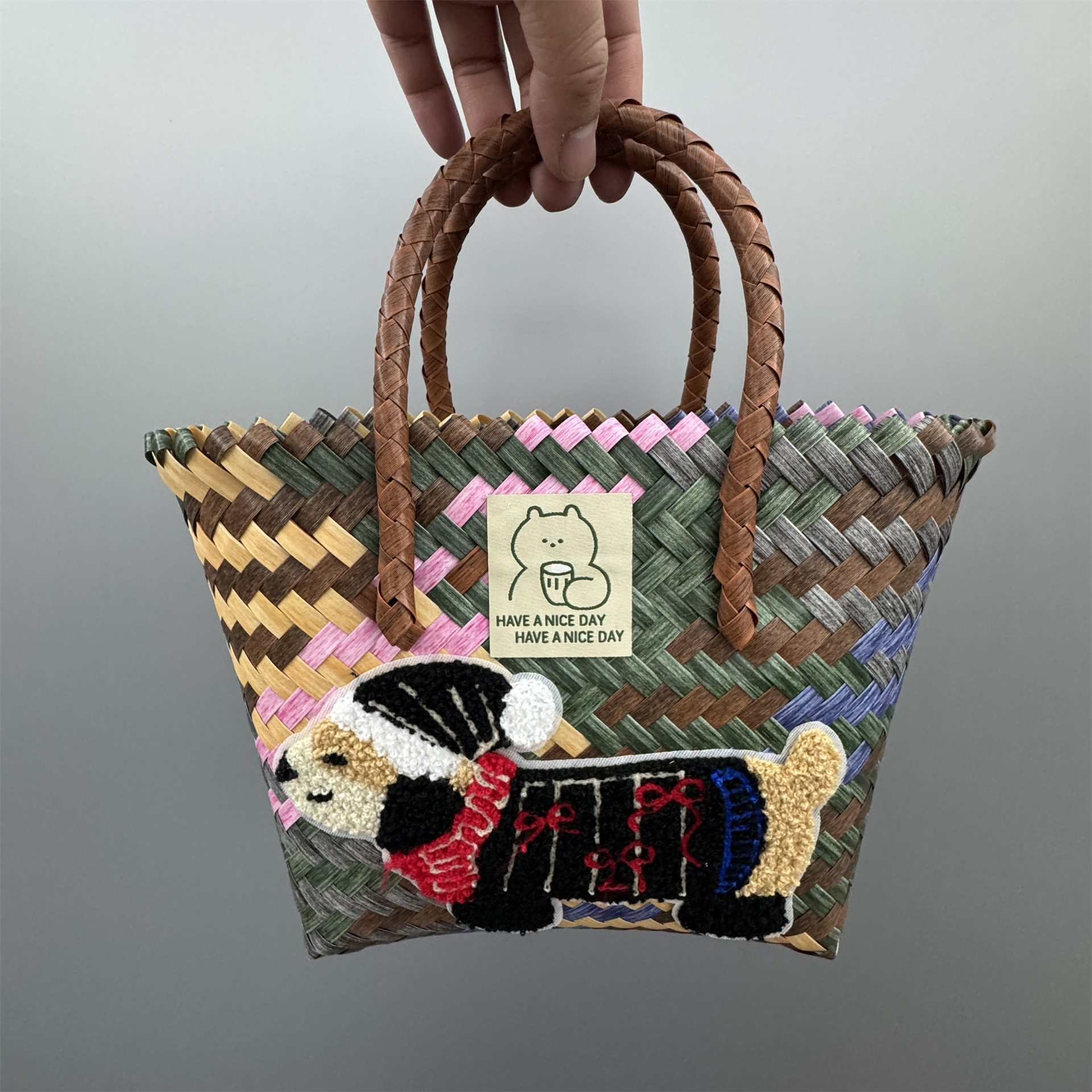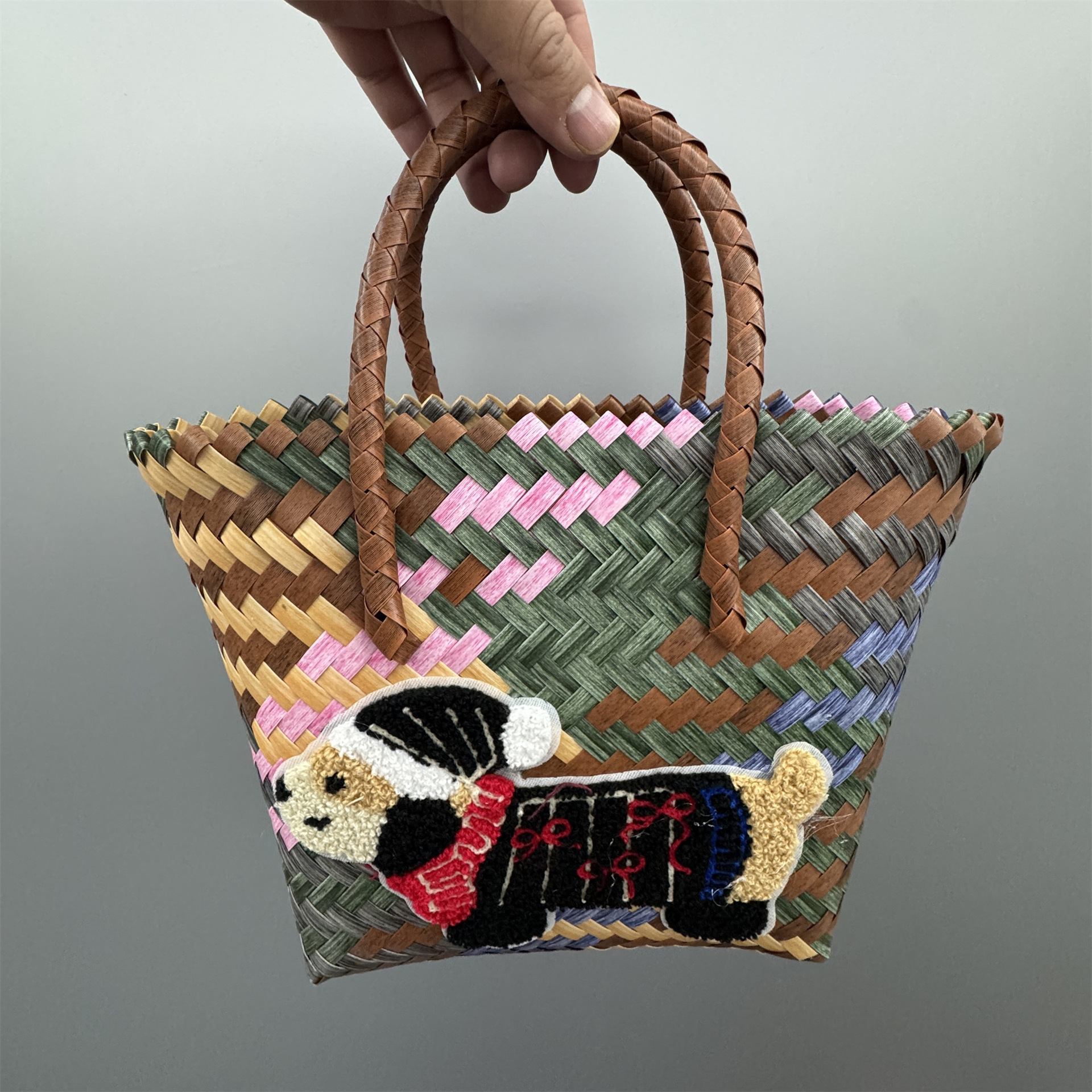 小红书同款复古腊肠狗编织包包女士手提包托特包手拎包伴手礼篮子