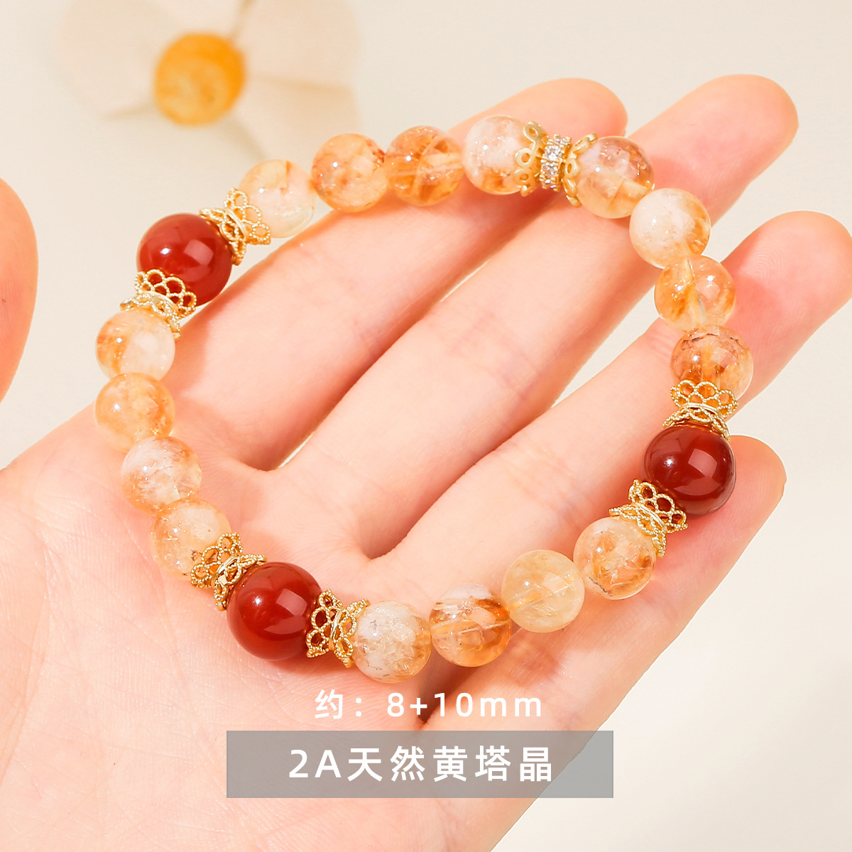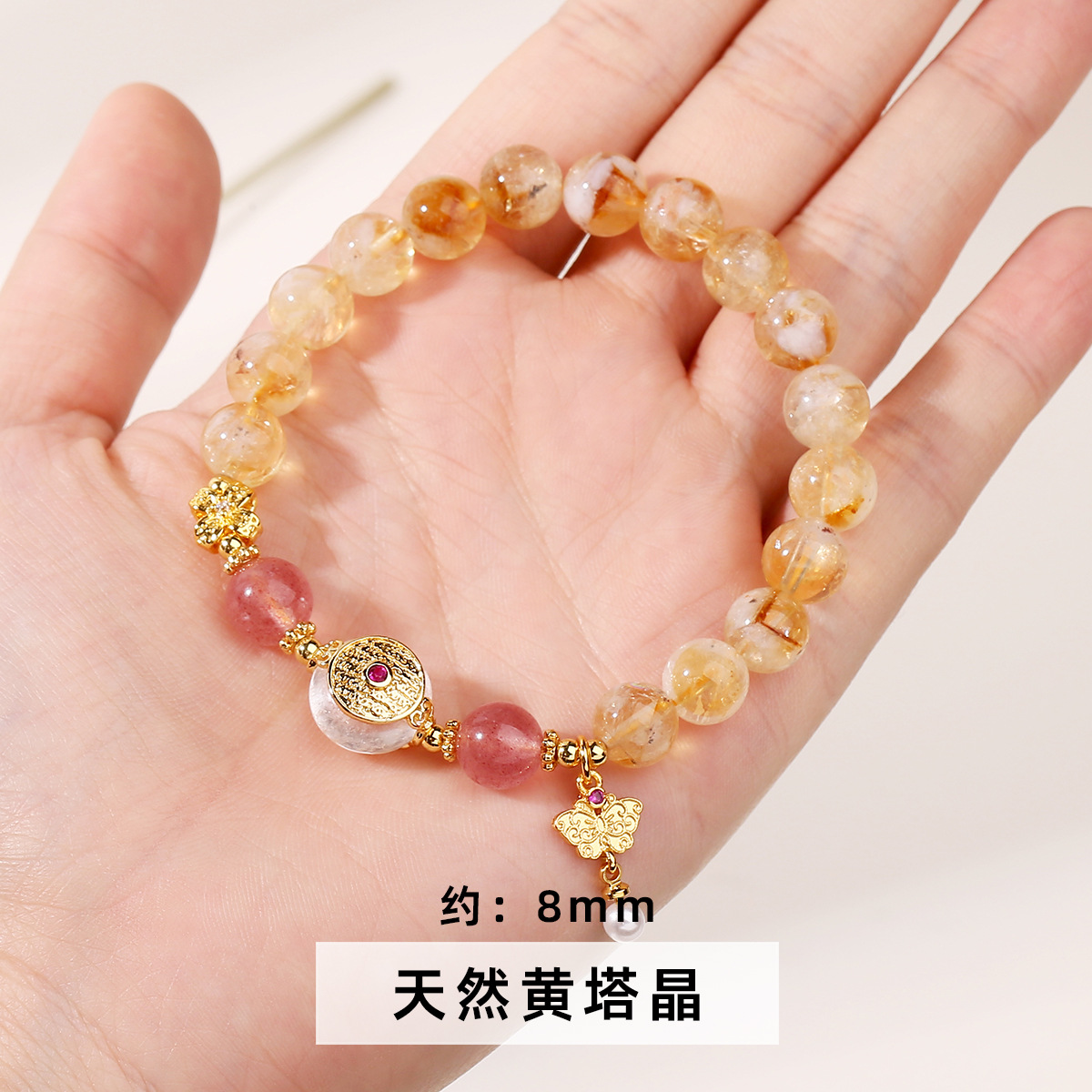 晶州珠宝原创设计款天然水晶手链粉水晶黄塔晶送女友时尚礼物手串