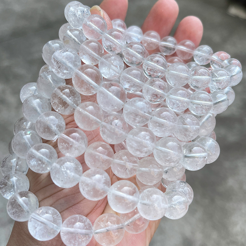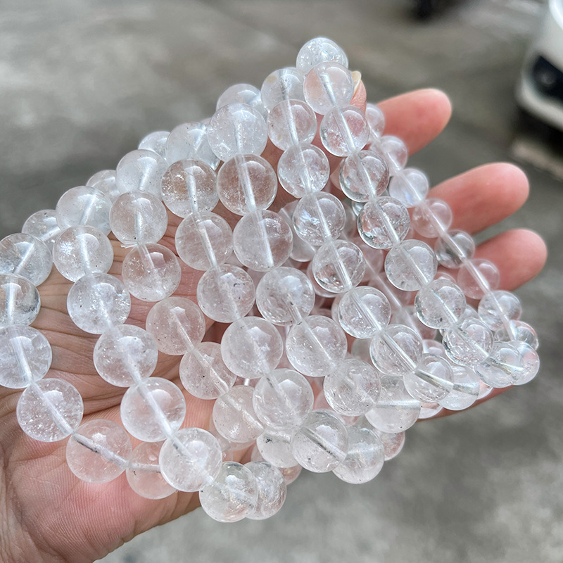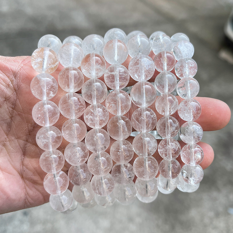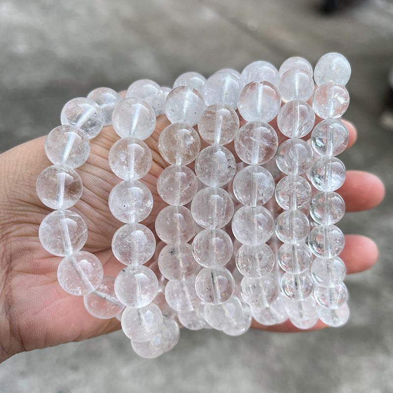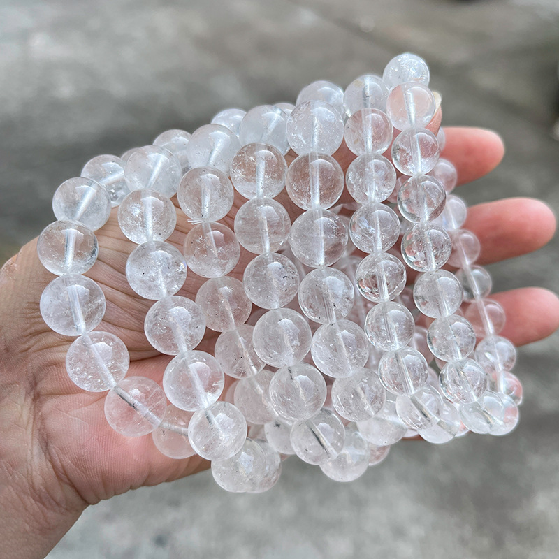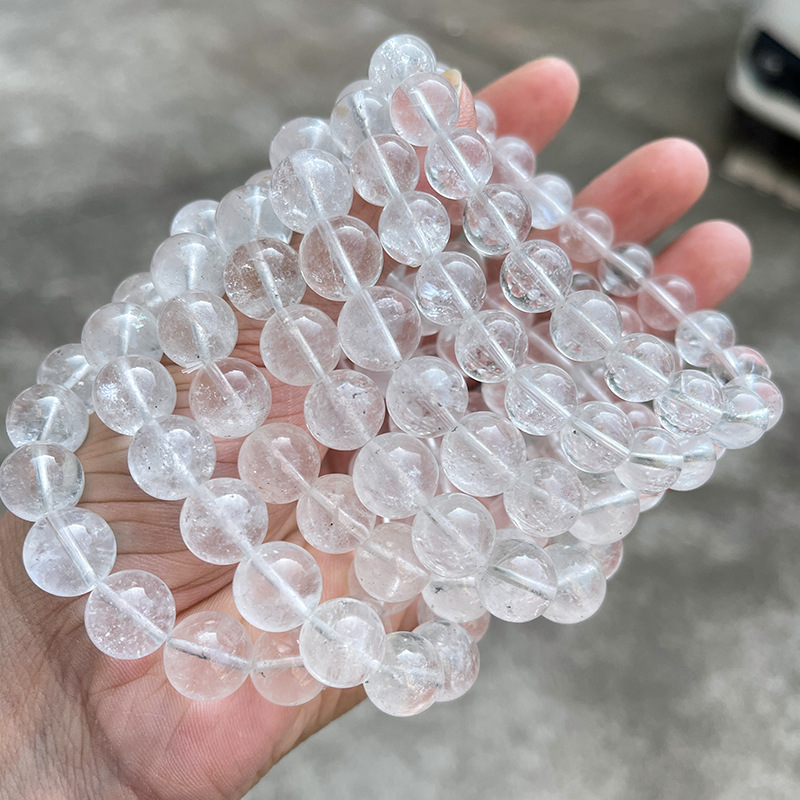 晶州珠宝 1A天然白幽灵水晶手链 透体时尚简约男女水晶手串批发