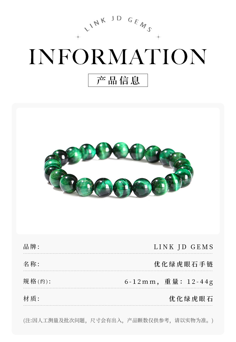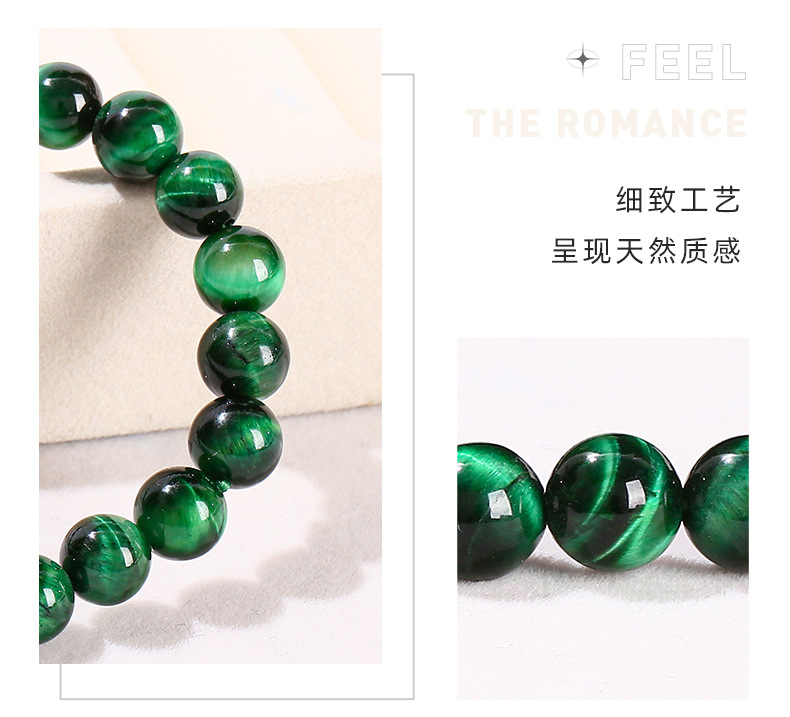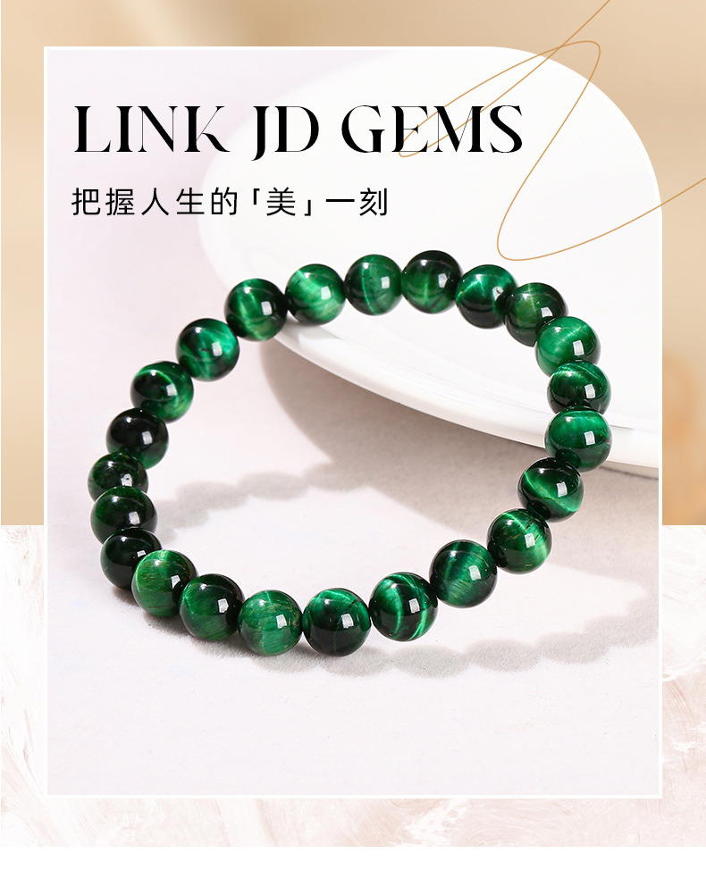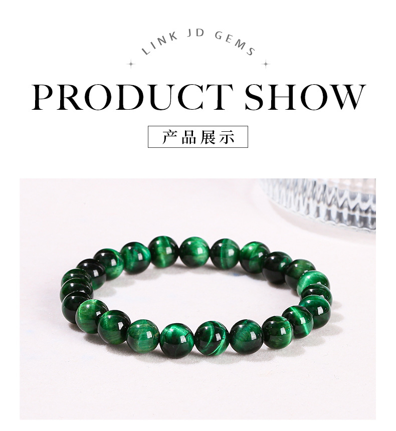 晶州珠宝 5A优化绿虎眼石手链欧美跨境时尚礼物圆珠男女手串批发