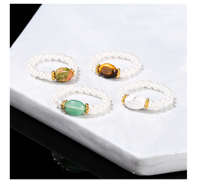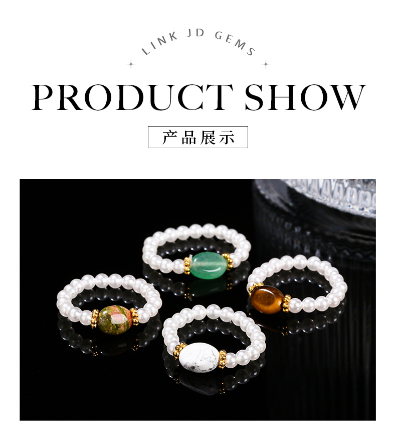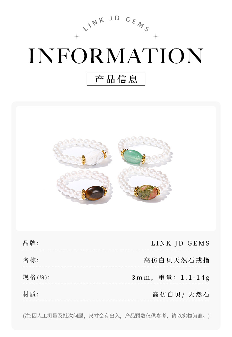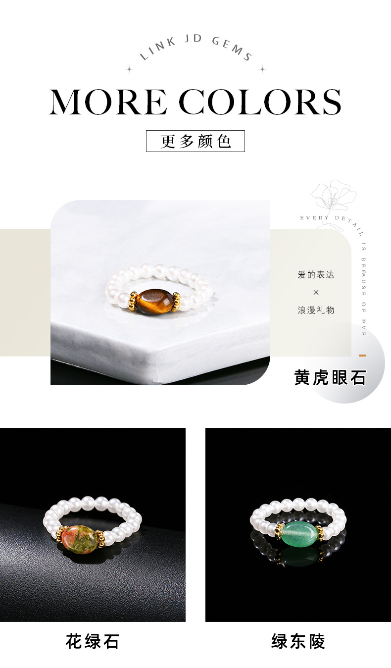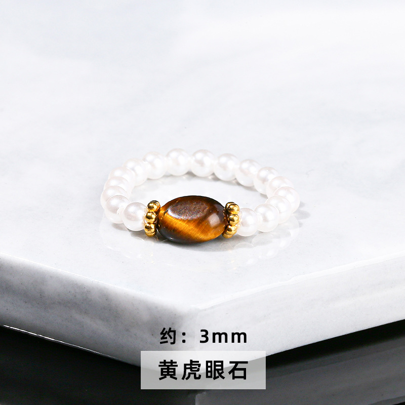 晶州珠宝 白贝珠黄虎眼石戒指时尚简约欧美跨境小众女生指环批发