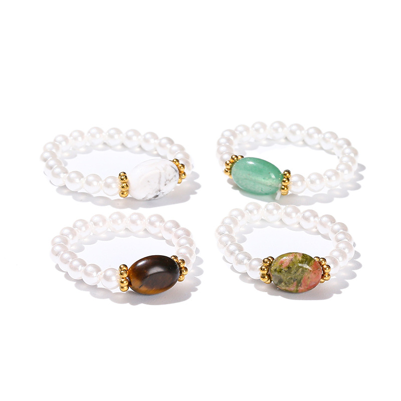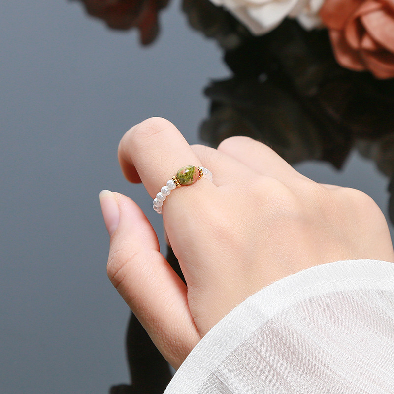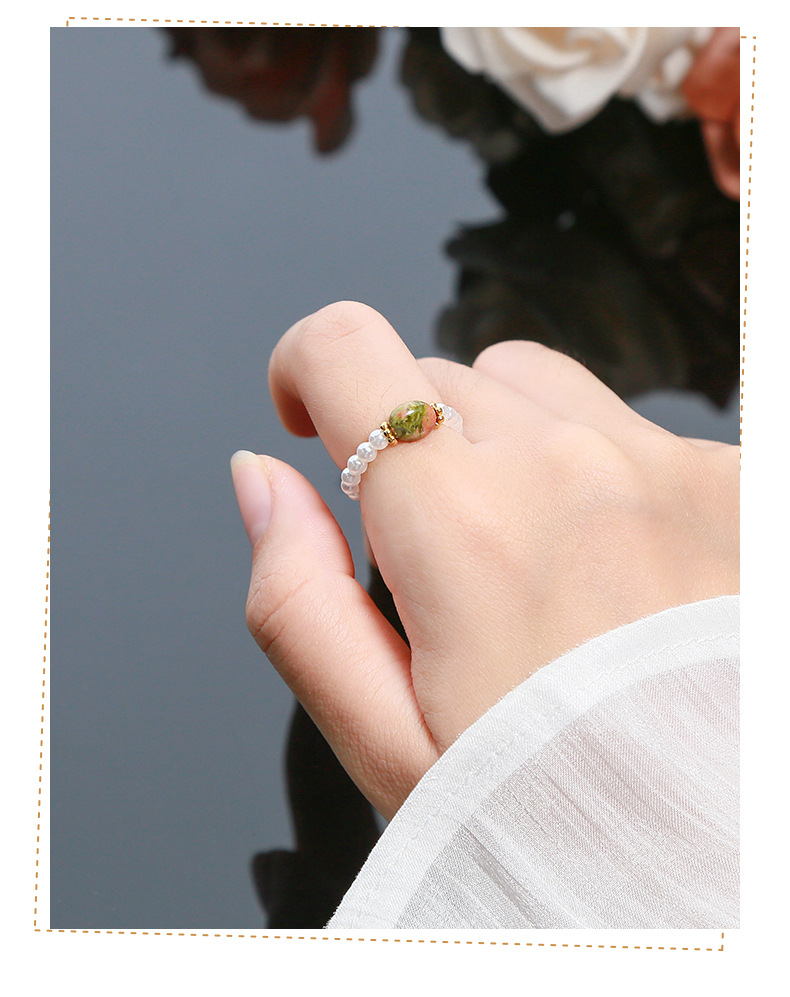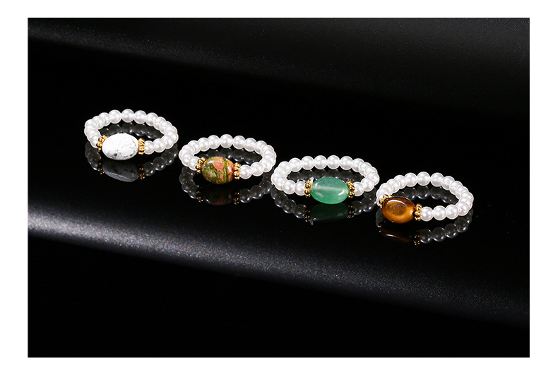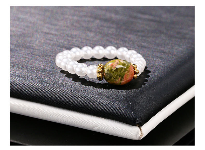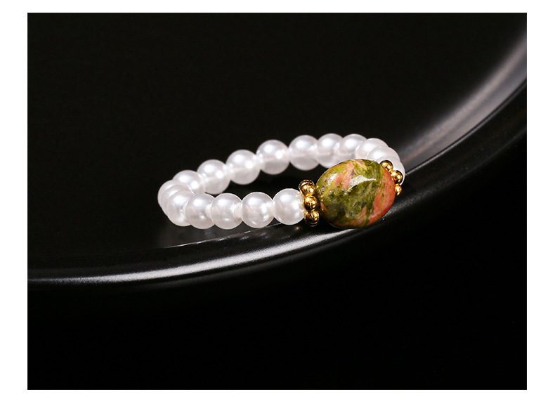 晶州珠宝 白贝珠黄虎眼石戒指时尚简约欧美跨境小众女生指环批发
