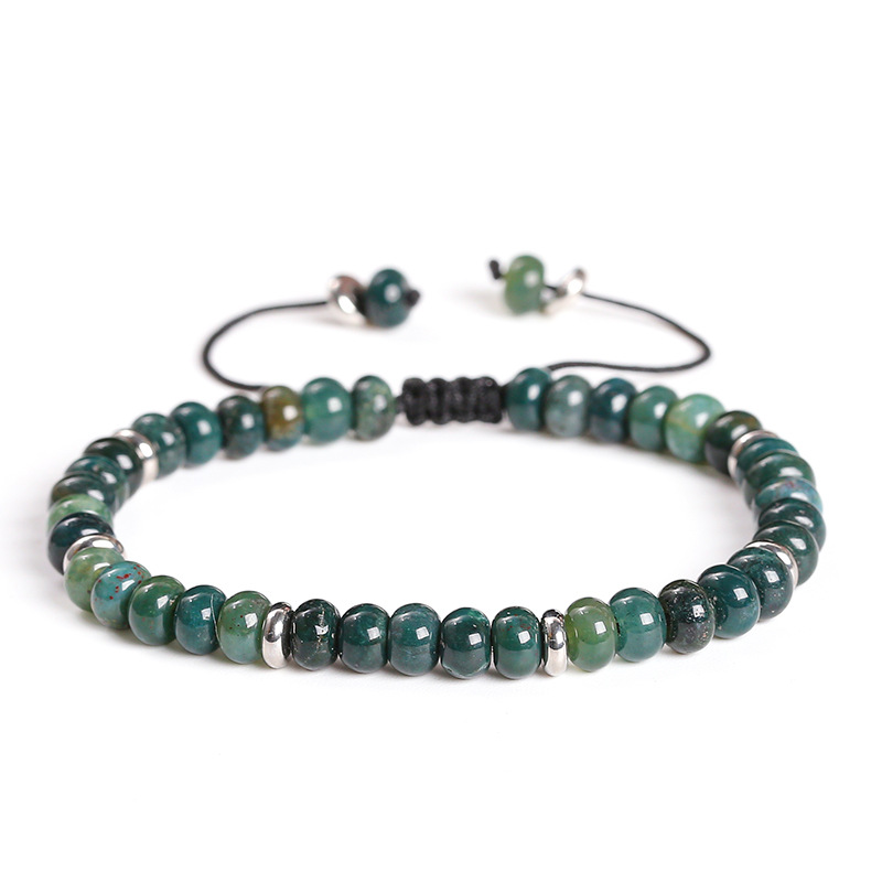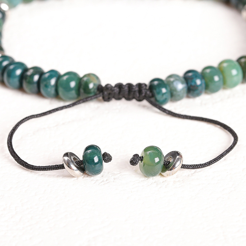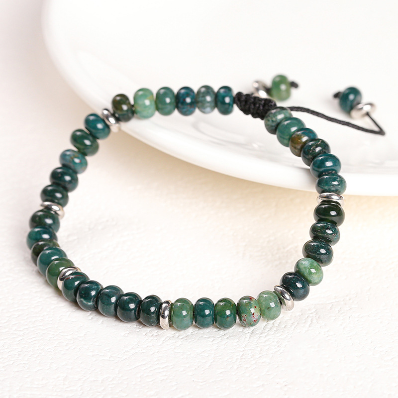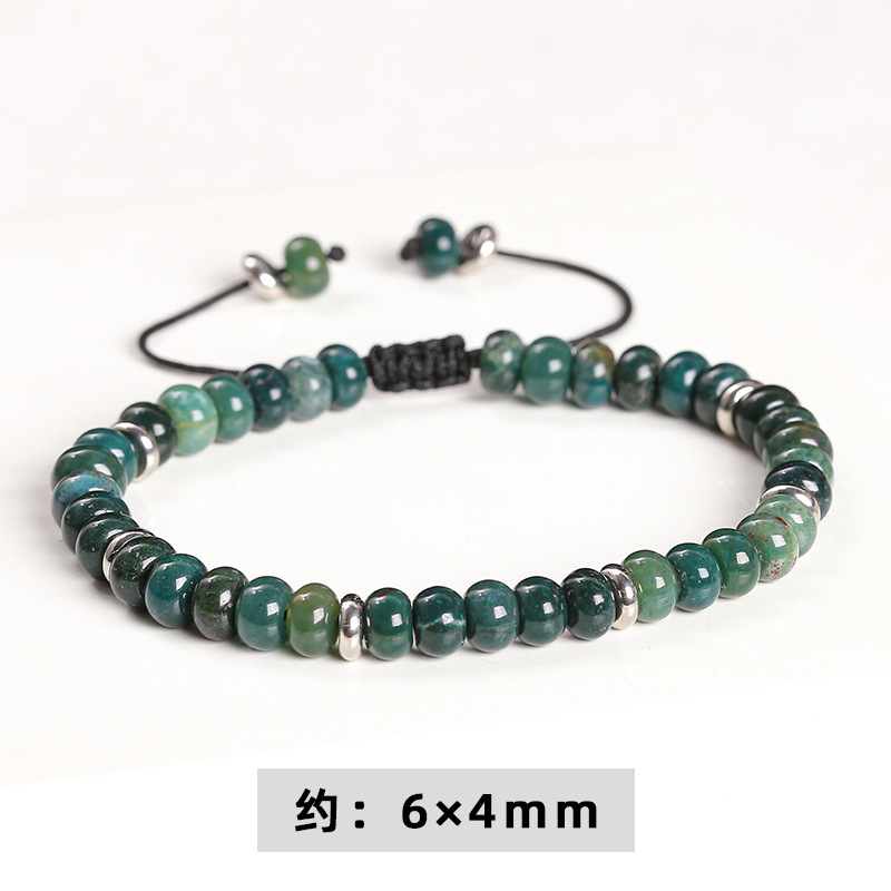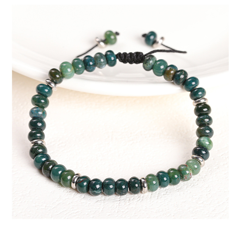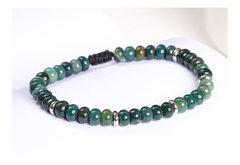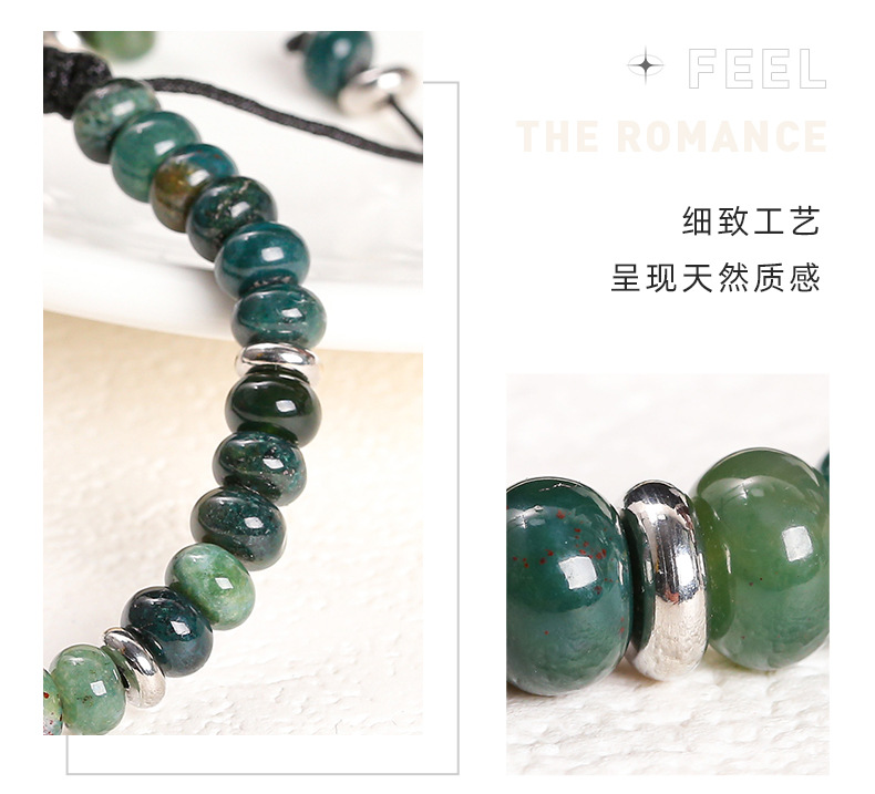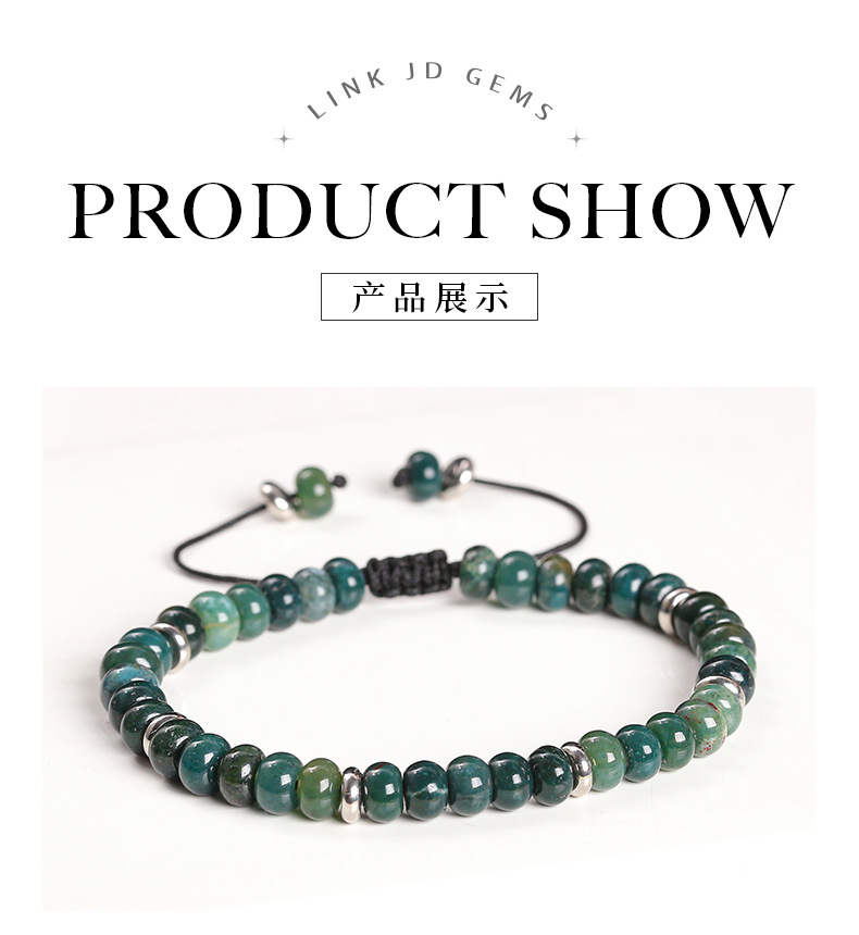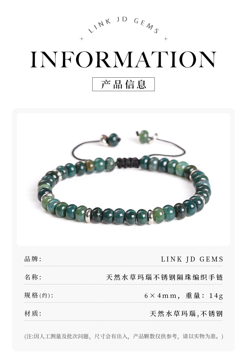 晶州珠宝 天然水草玛瑙不锈钢隔珠编织手链时尚百搭男女手饰批发