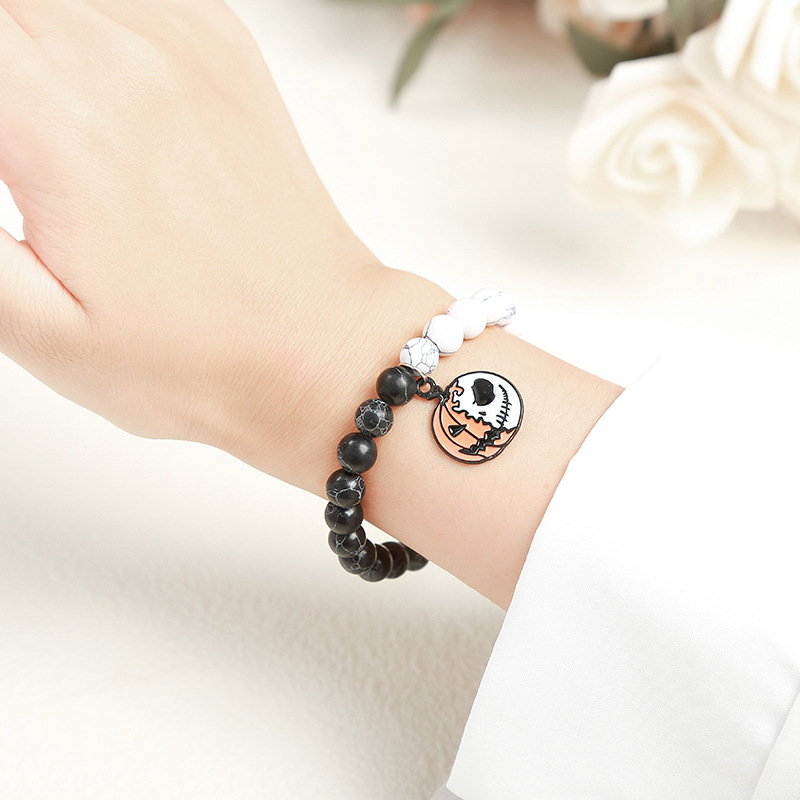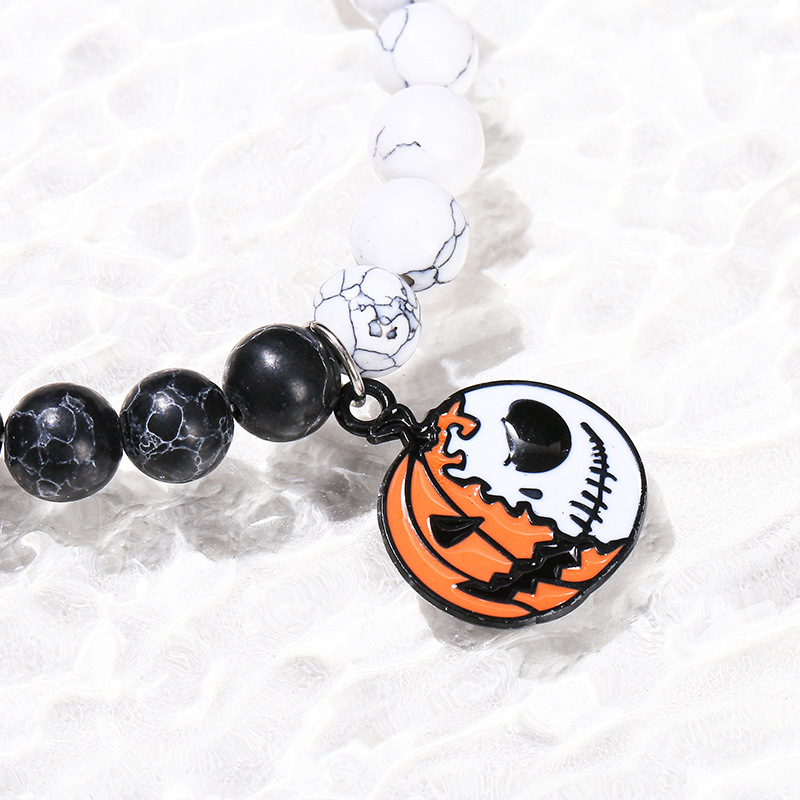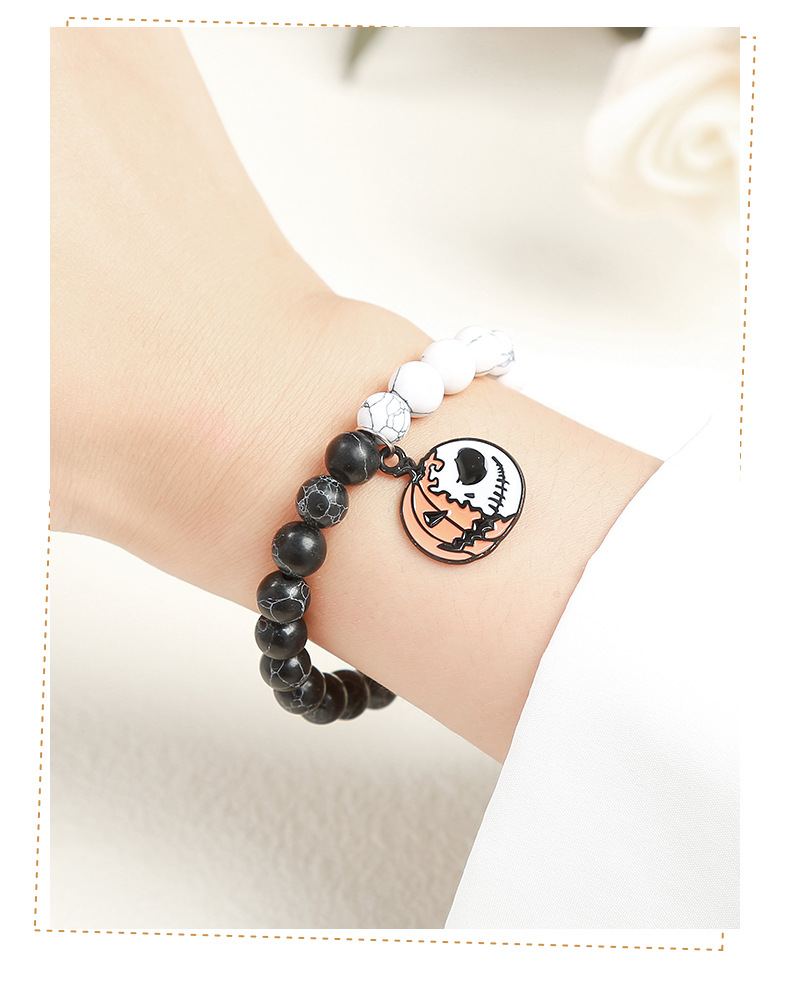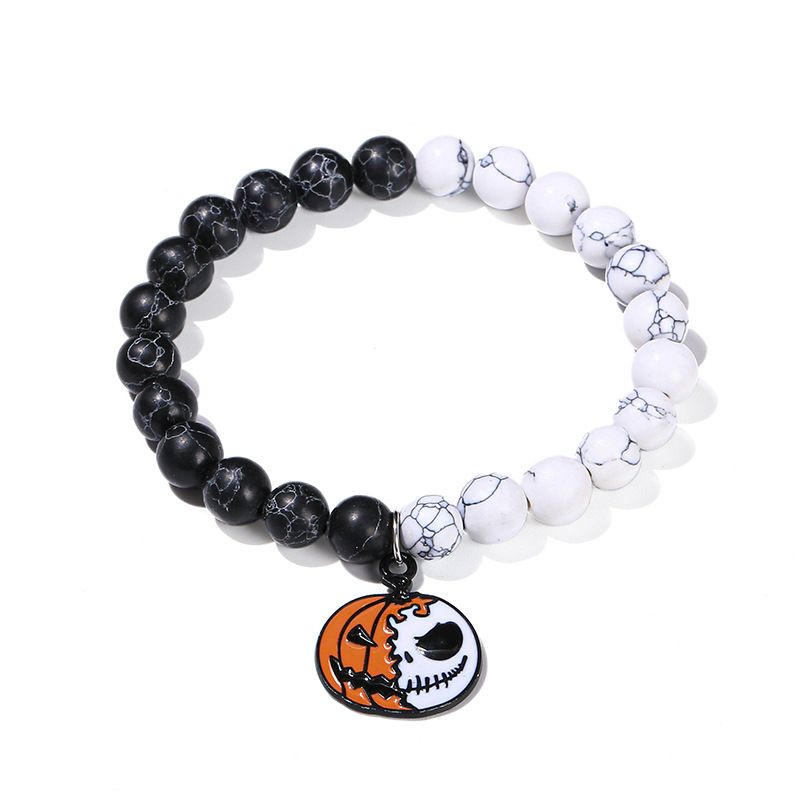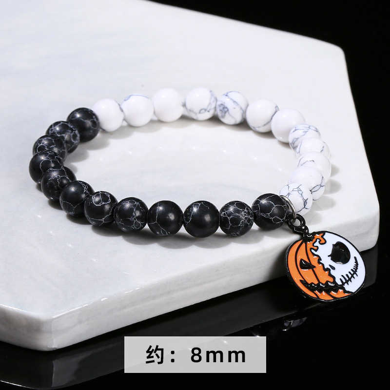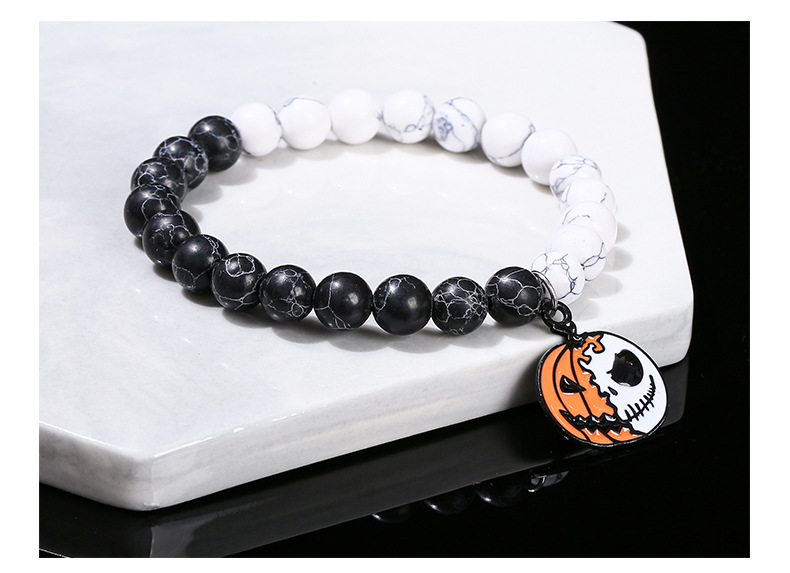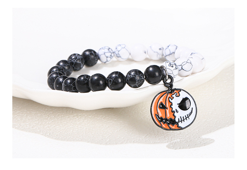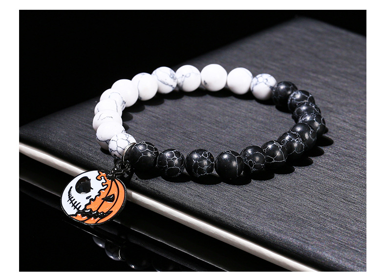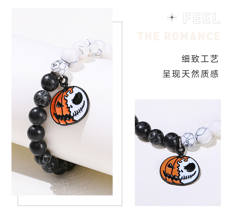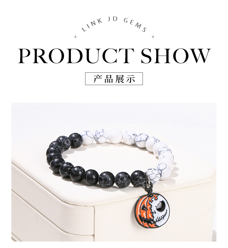 晶州珠宝 黑白松石万圣节南瓜手链欧美跨境个性男女款手串批发