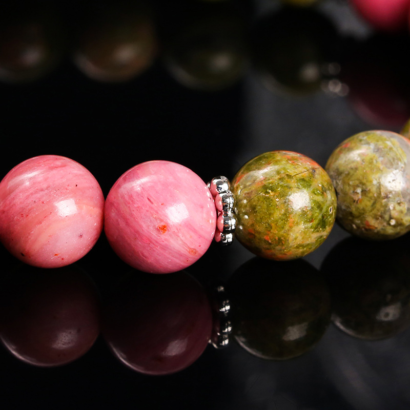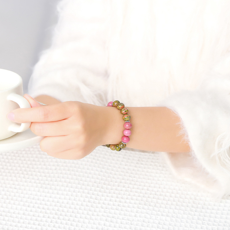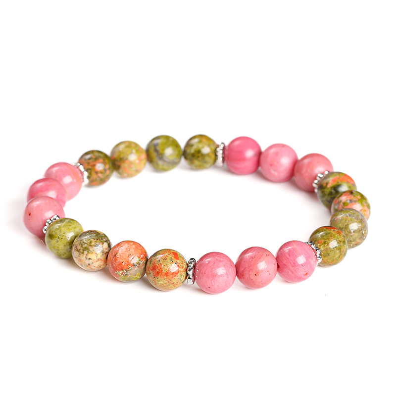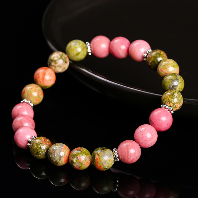 晶州珠宝 天然红纹石花绿石双拼手链 时尚跨境女生圆珠手饰批发