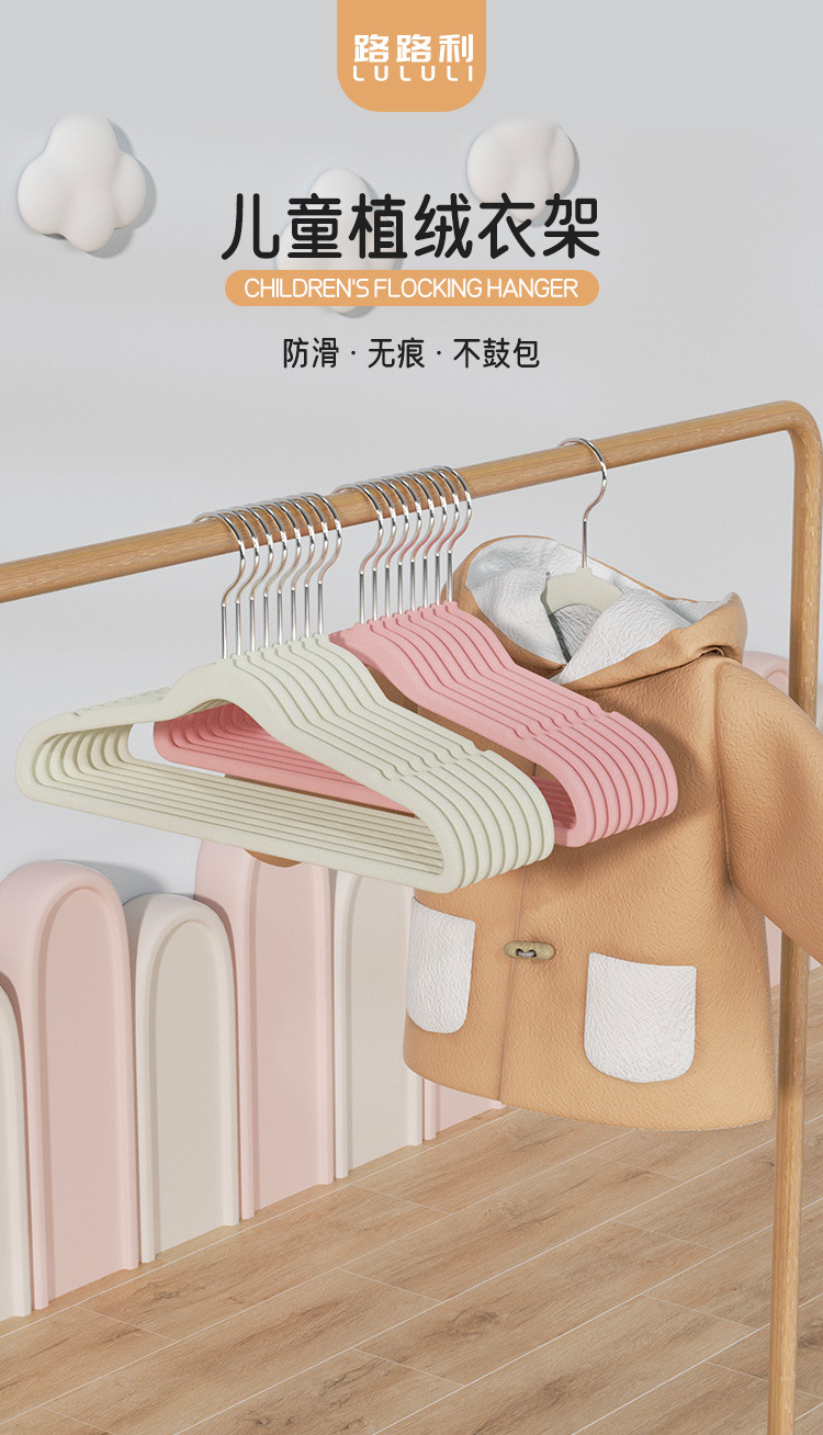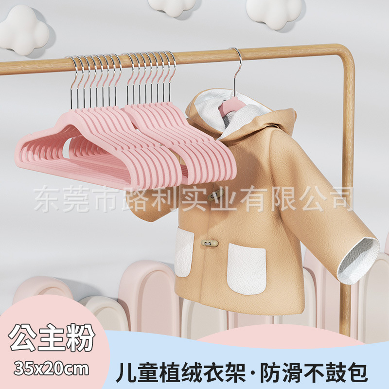 儿童植绒衣架晾衣挂婴儿无痕宝宝小衣架家用挂衣中童大童小孩衣架