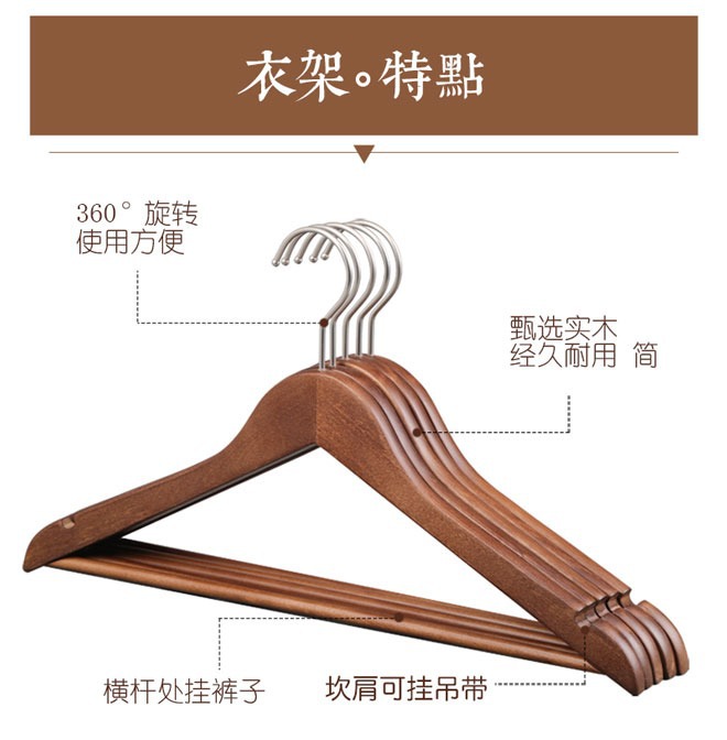 实木旋转衣架服装店衣柜木头衣挂木质防滑衣撑家用成人无痕木衣架