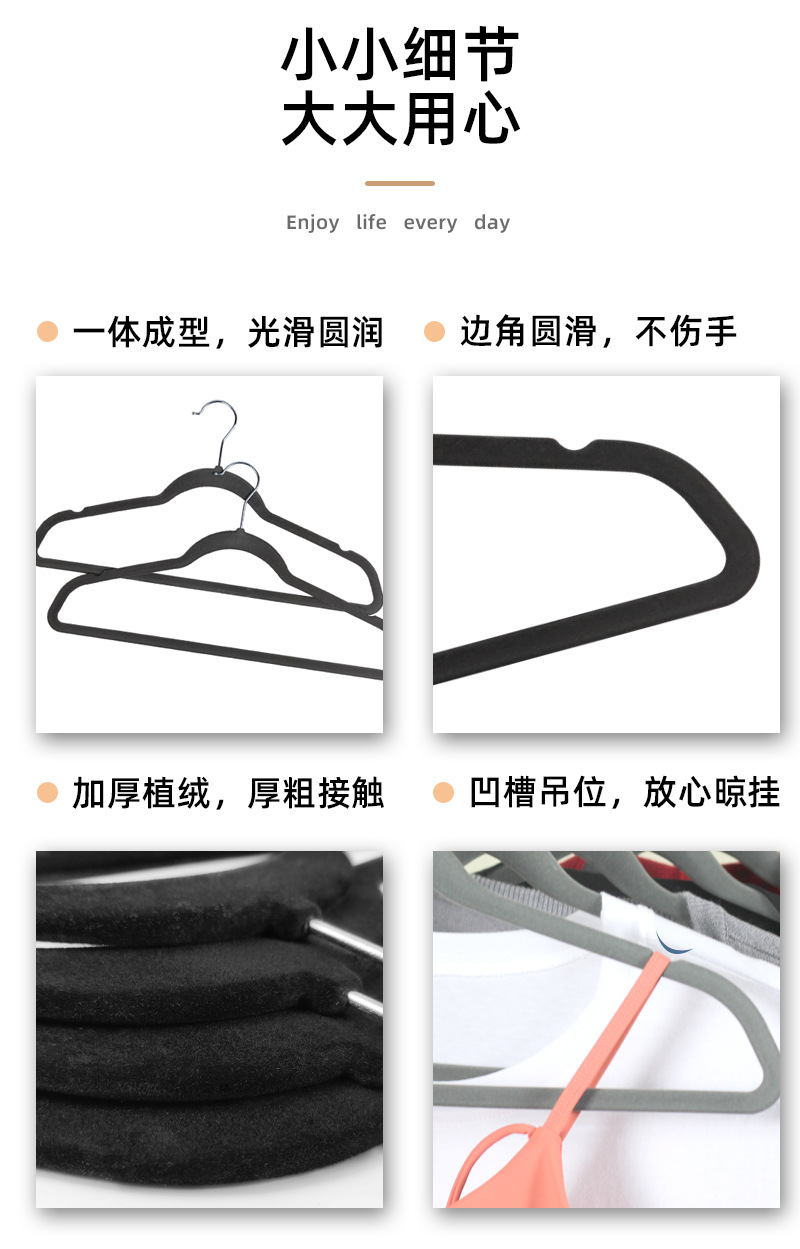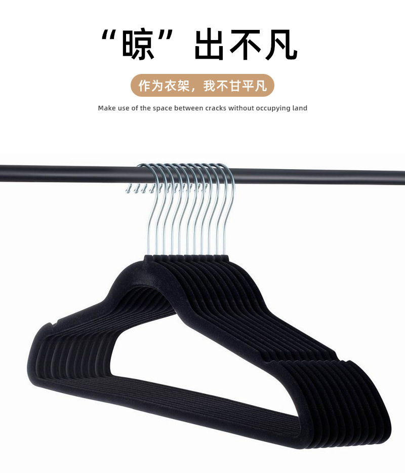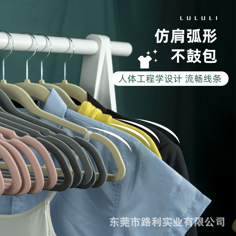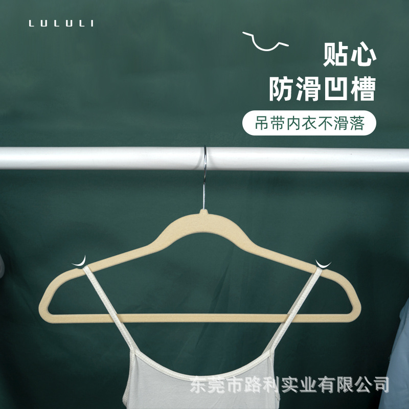 non-slip flocking hanger household wardrobe storage clothes hanger clothes support anti shoulder angle can not afford the bag clothes rack
