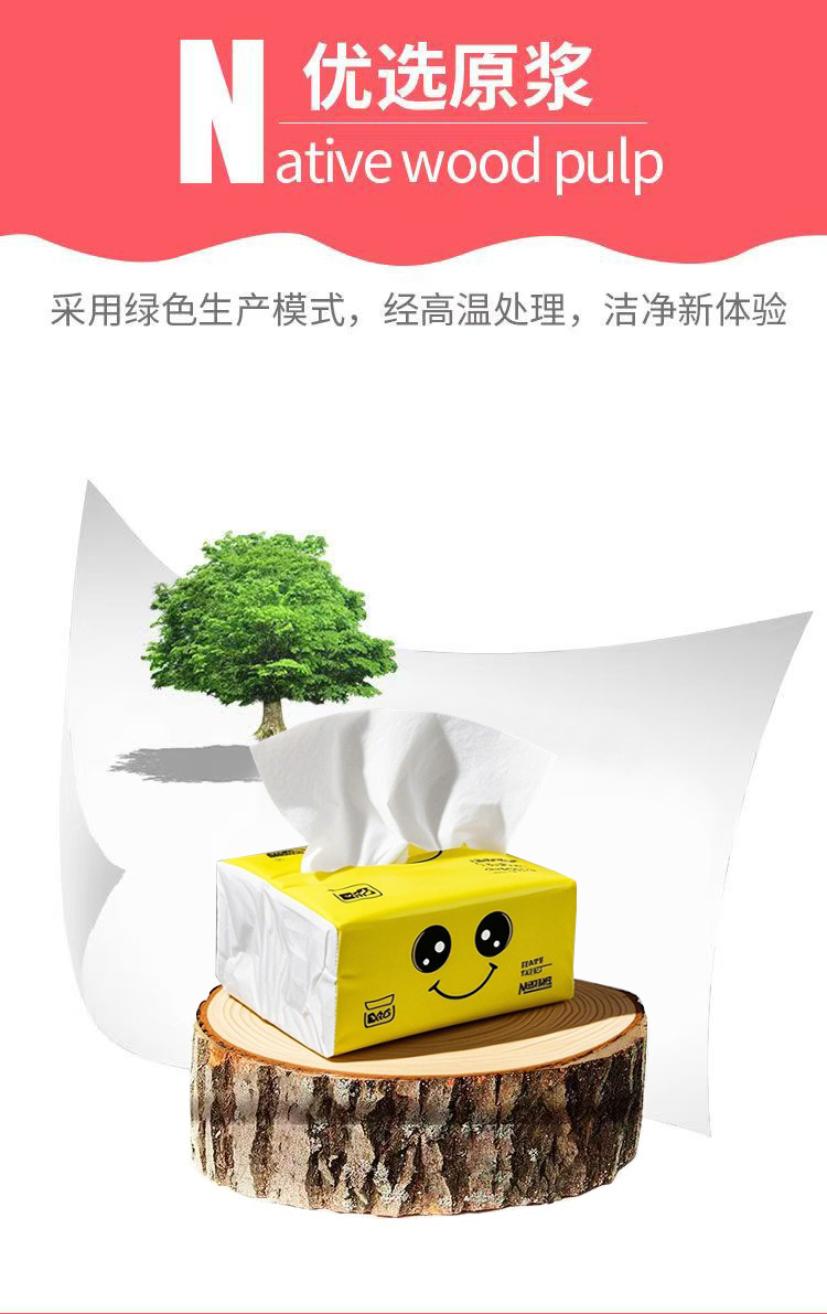 笑脸抽纸工厂批发原木纸巾餐饮酒店商用餐巾纸烧烤大排档用小方抽
