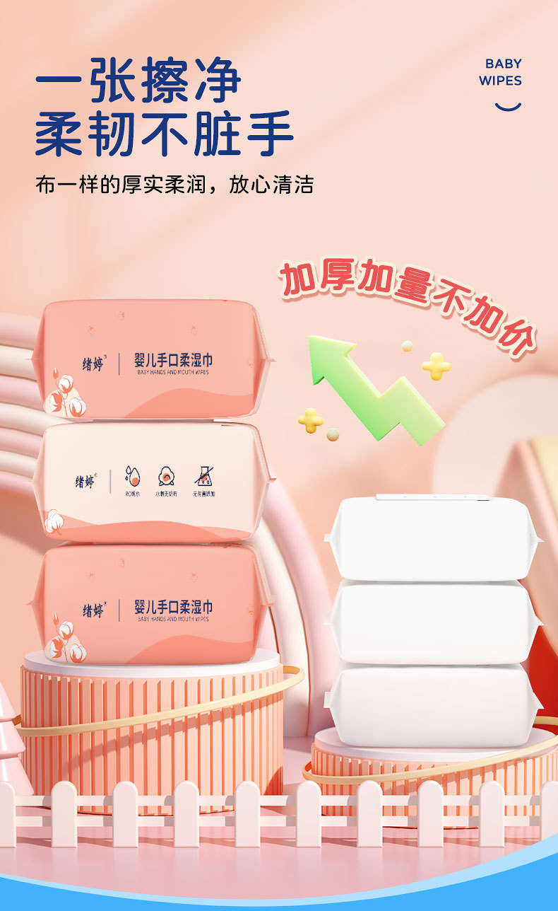 新品代发婴儿湿巾宝宝湿纸巾大包装儿童手口专用湿巾加厚十包一箱