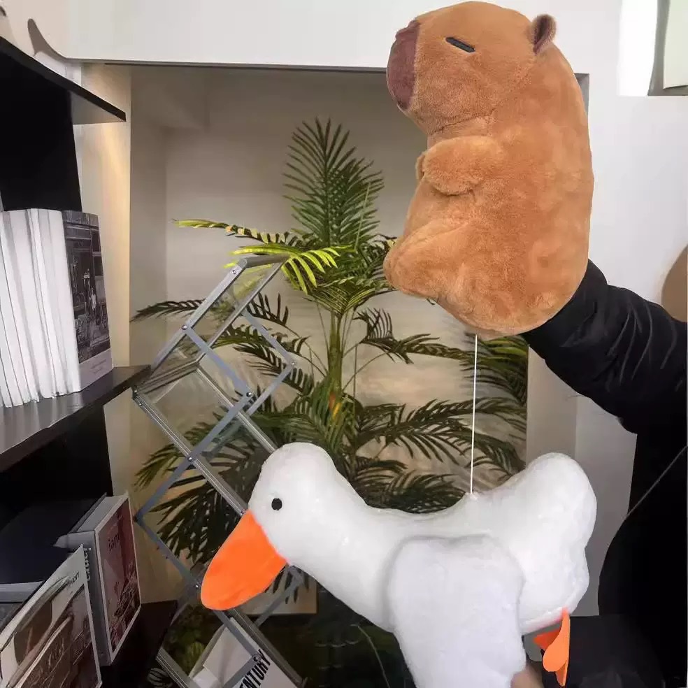 新款卡皮巴拉骑鳄鱼大鹅水豚公仔毛绒玩具外贸娃娃跨境批发礼品