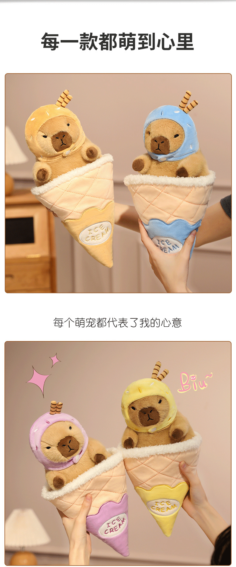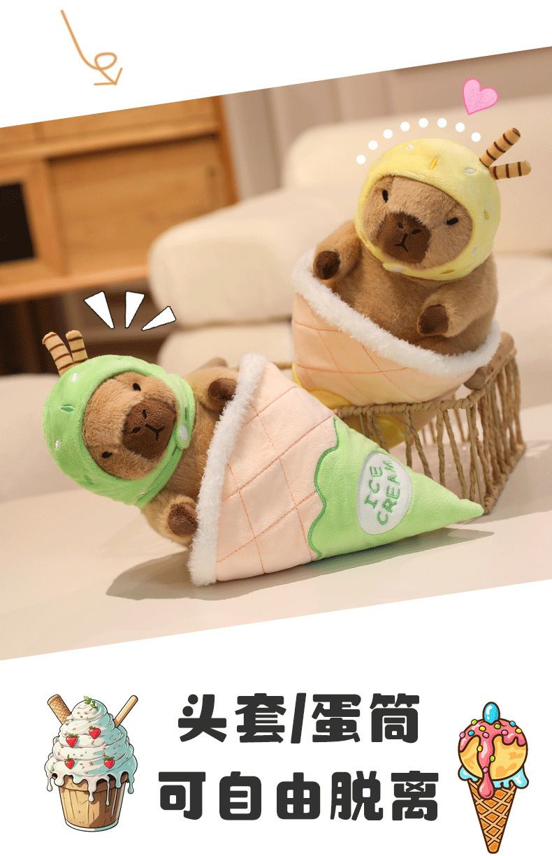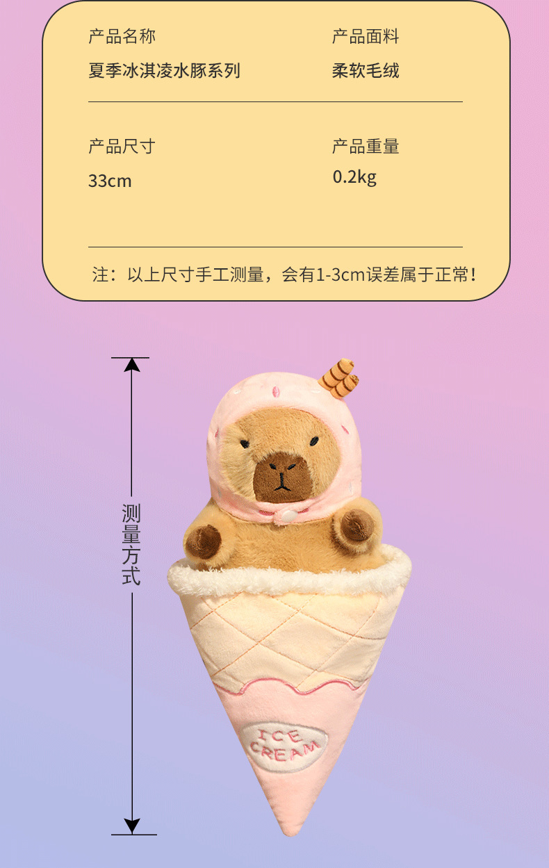 夏季冰淇凌水豚系列卡皮巴拉玩偶卡通布娃娃毛绒玩具工厂一件代发