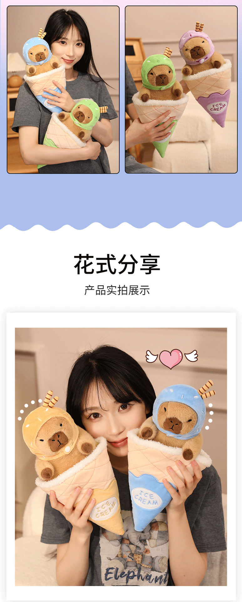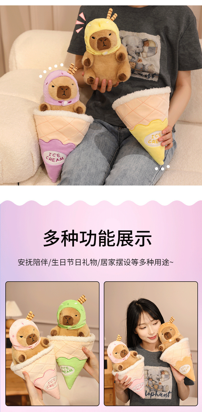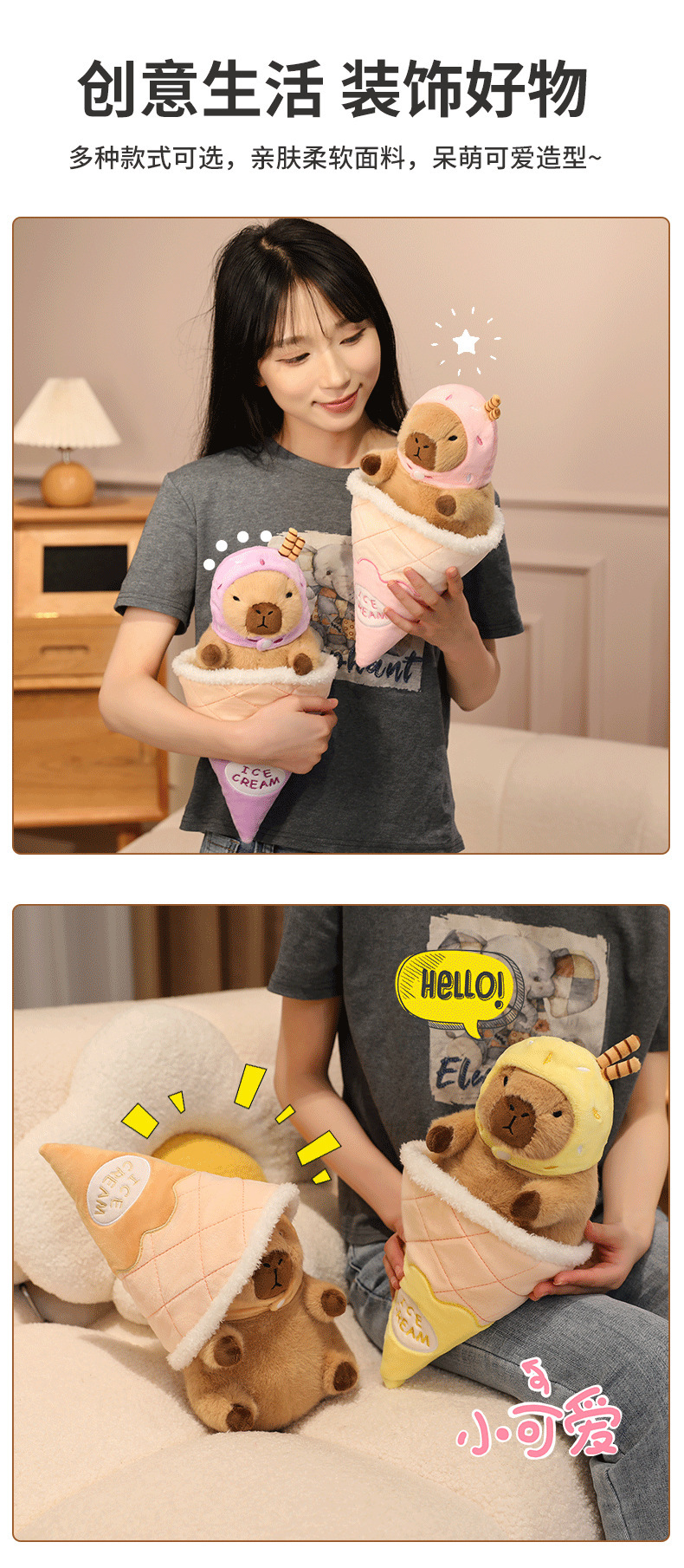 夏季冰淇凌水豚系列卡皮巴拉玩偶卡通布娃娃毛绒玩具工厂一件代发