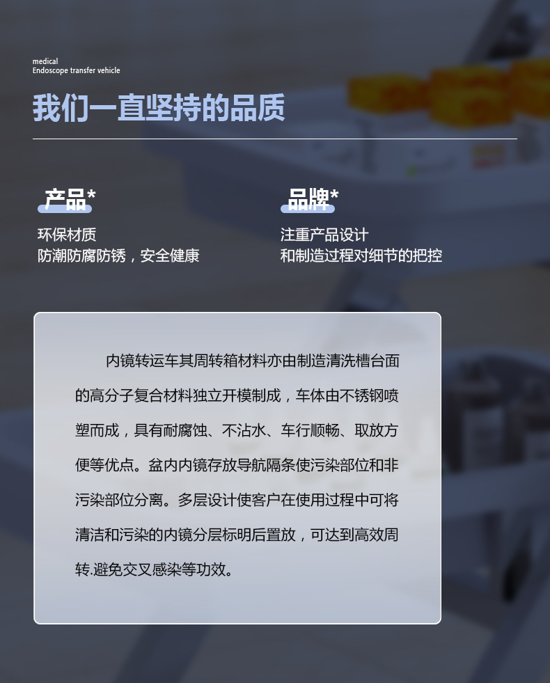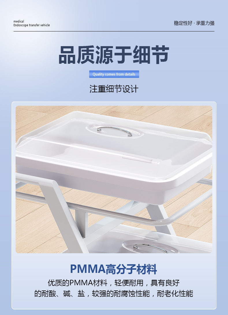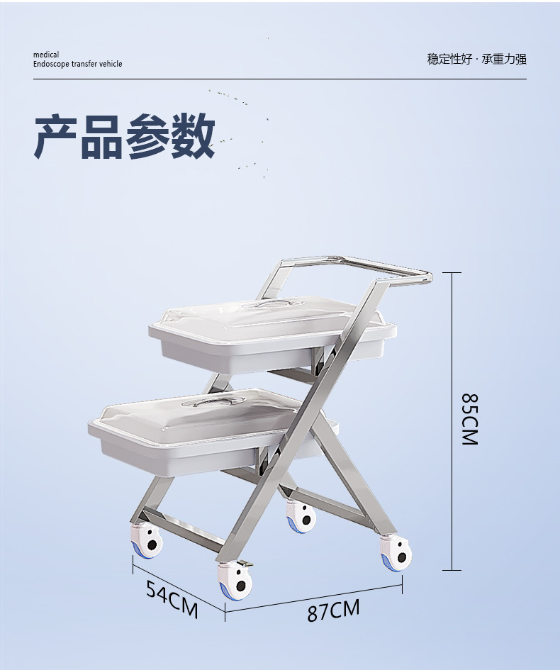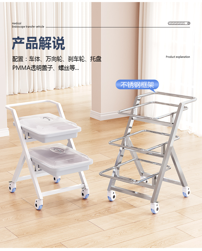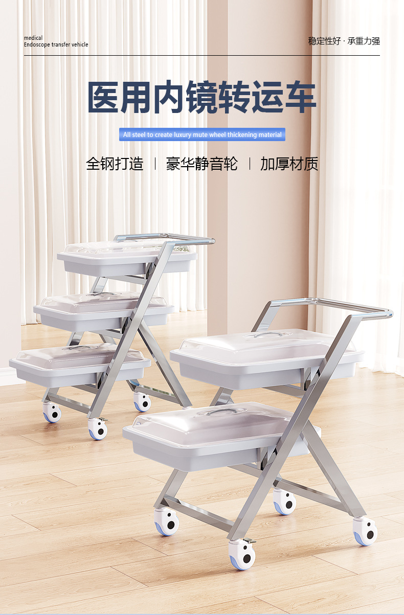 专供出口不锈钢医用内窥镜胃肠镜纤支气管镜运转车内镜托盘架推车
