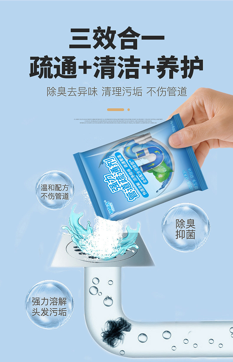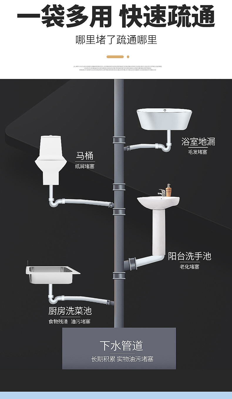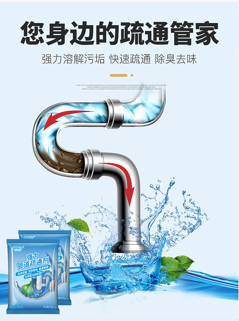【强力管道疏通剂】卫生间马桶地漏下水道疏通剂50g油污堵塞除臭