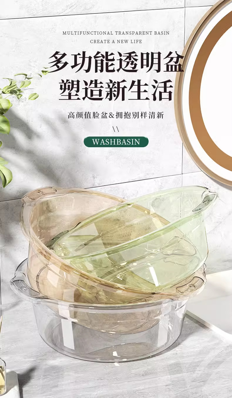 【特厚透明脸盆】盆子家用洗脸盆学生宿舍洗衣盆塑料盆厨房洗菜盆