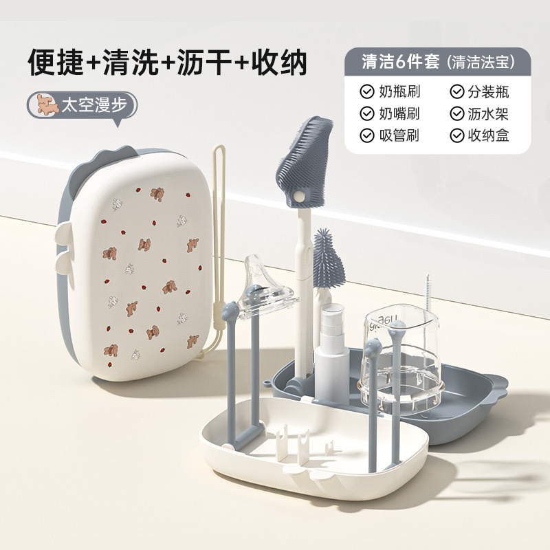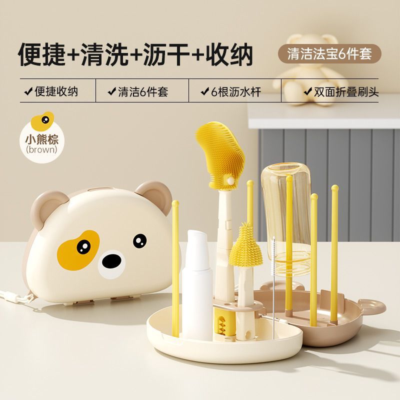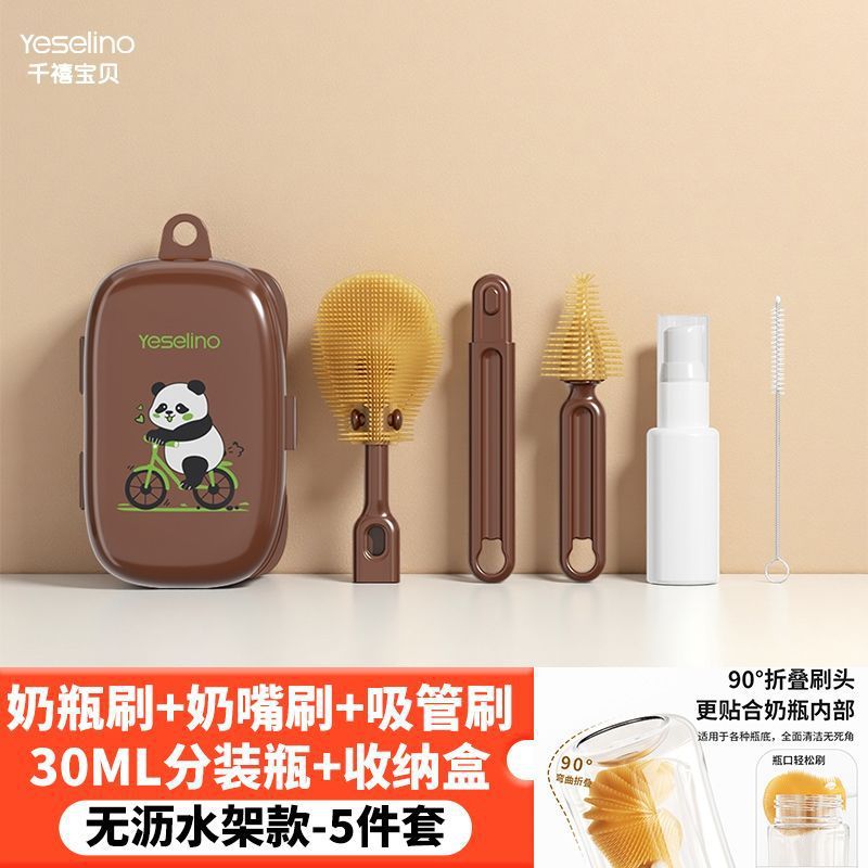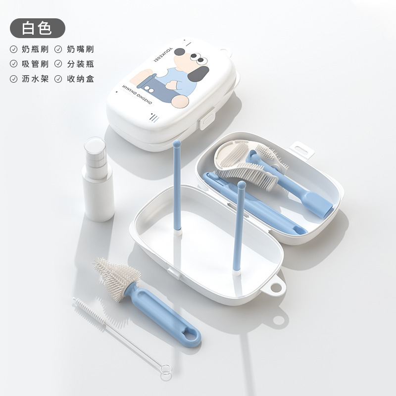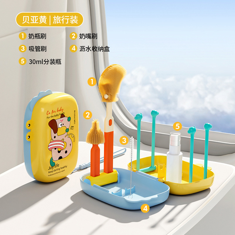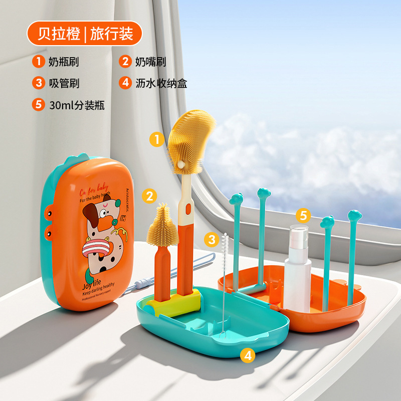 奶瓶刷婴儿童多功能便携式外出专用硅胶折叠清洁刷子旅行装六件套