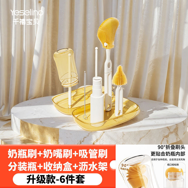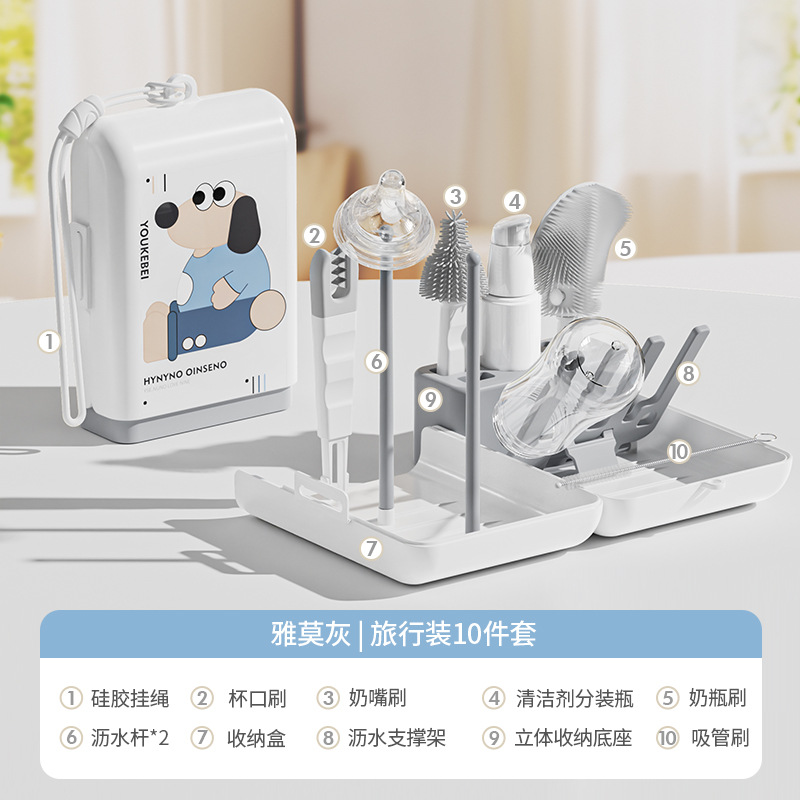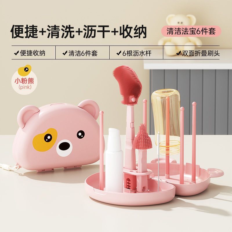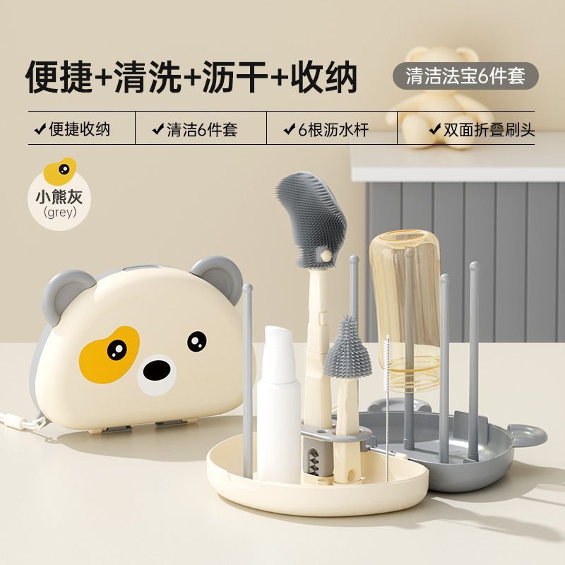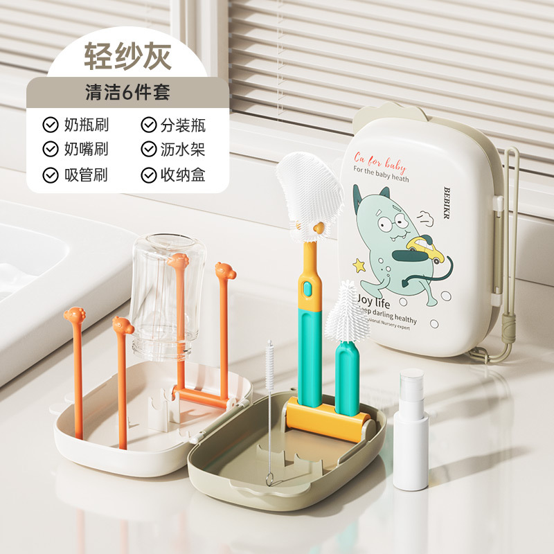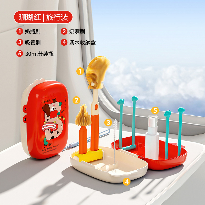 奶瓶刷婴儿童多功能便携式外出专用硅胶折叠清洁刷子旅行装六件套