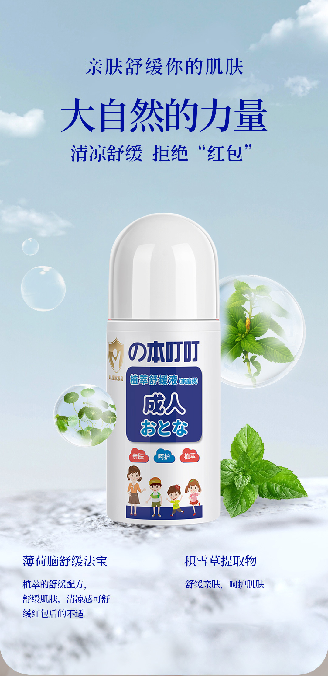 の本叮叮植萃舒缓液蚊虫叮咬红肿清凉便携(儿童/家庭装)50ML