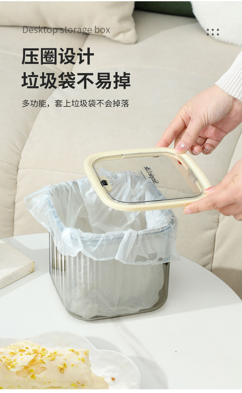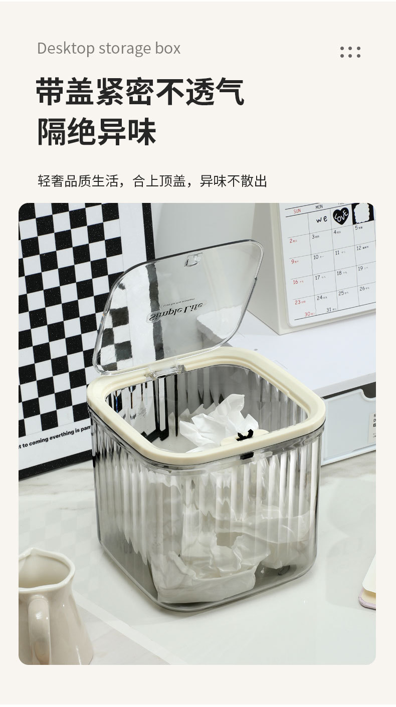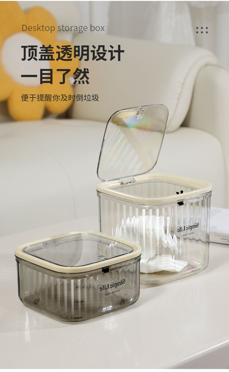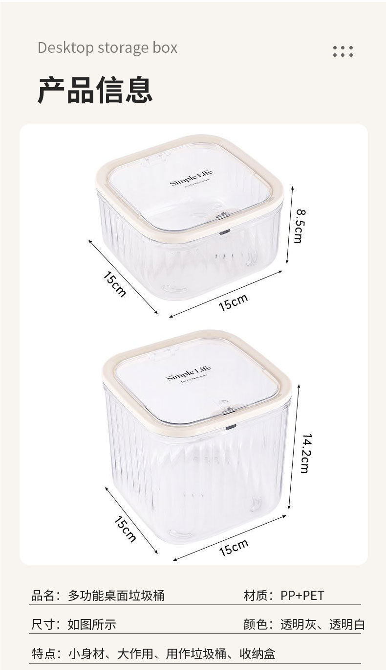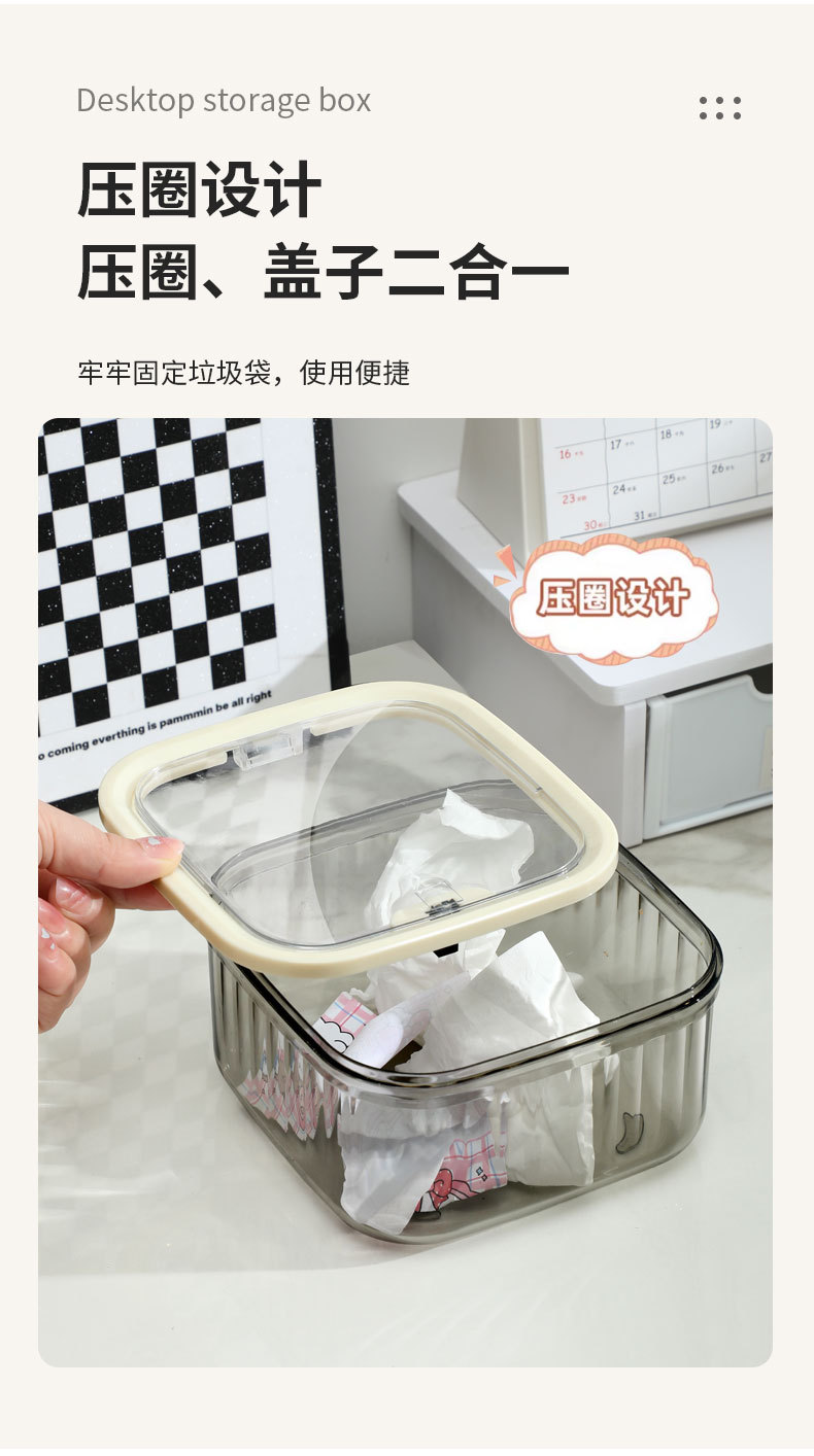 【多功能桌面垃圾桶】按压式化妆品收纳桶高颜值透明办公室废纸篓