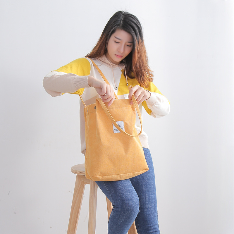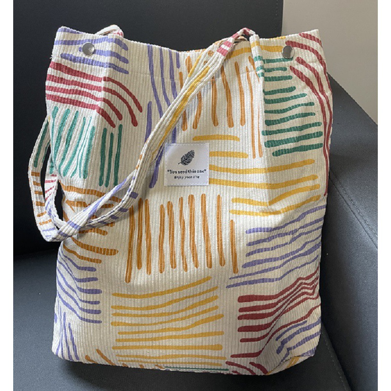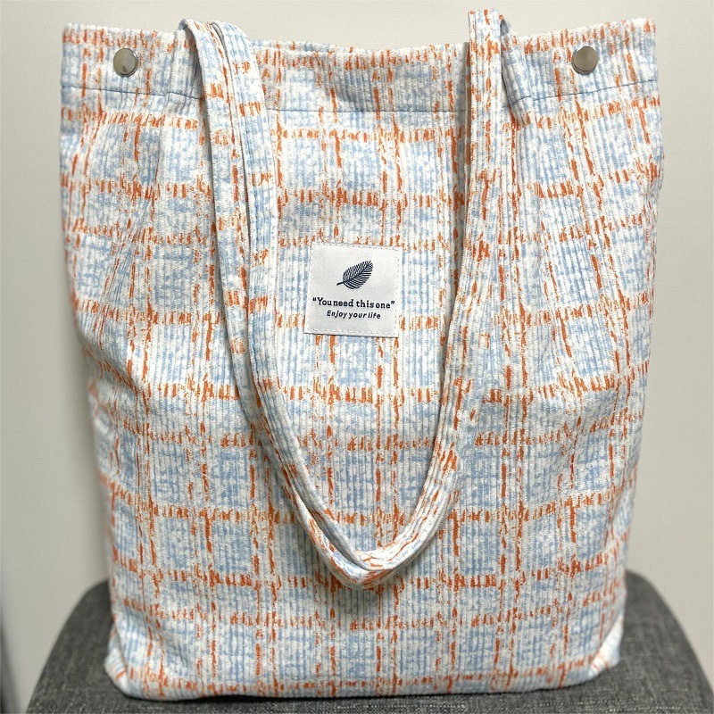 2024新款灯芯绒单肩包女韩国学生帆布包大容量文艺简约百搭购物袋