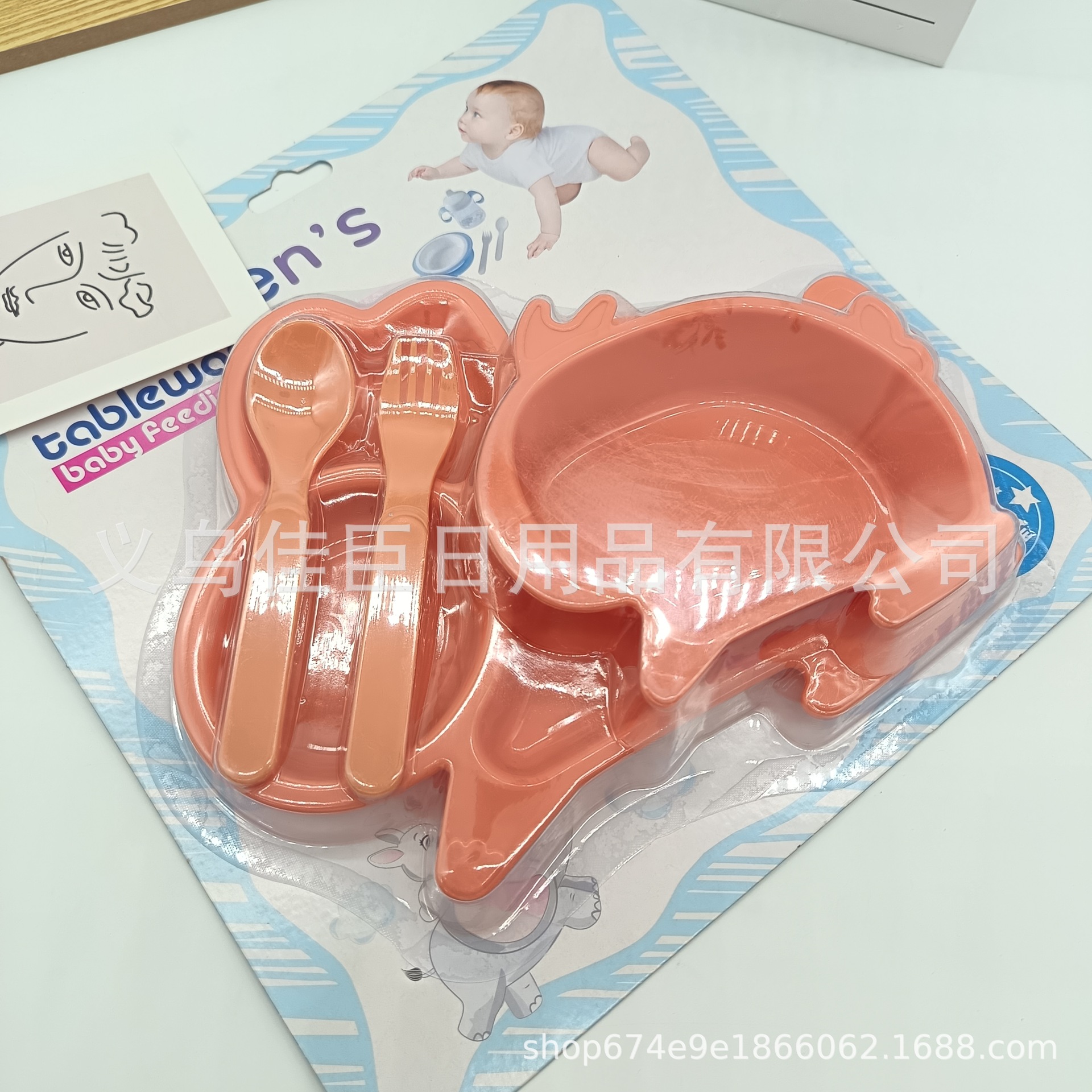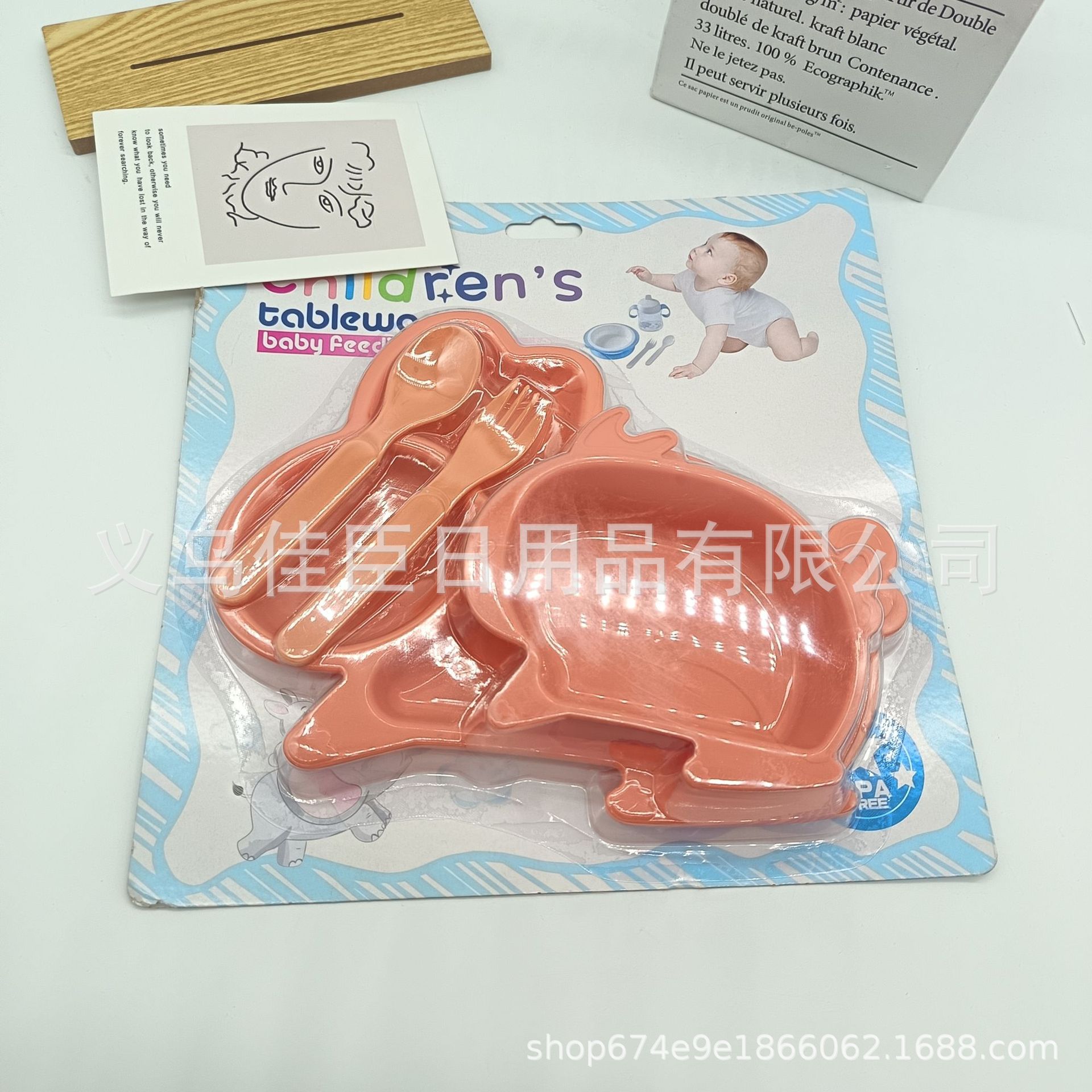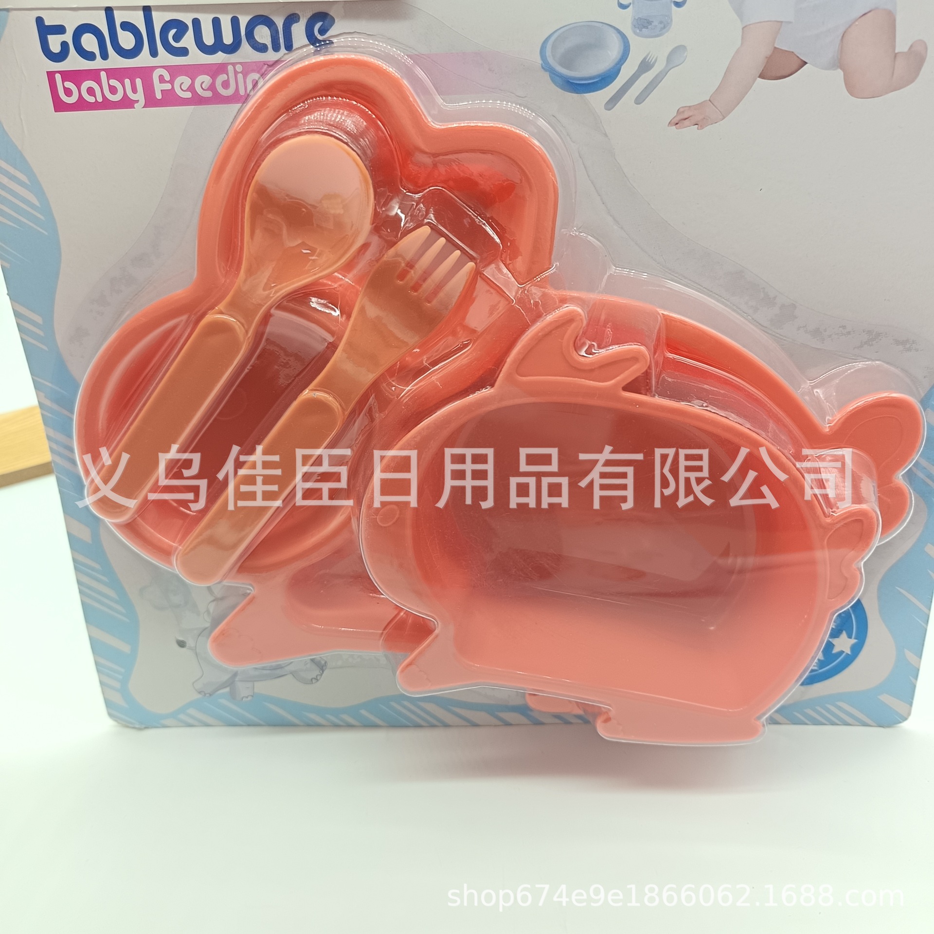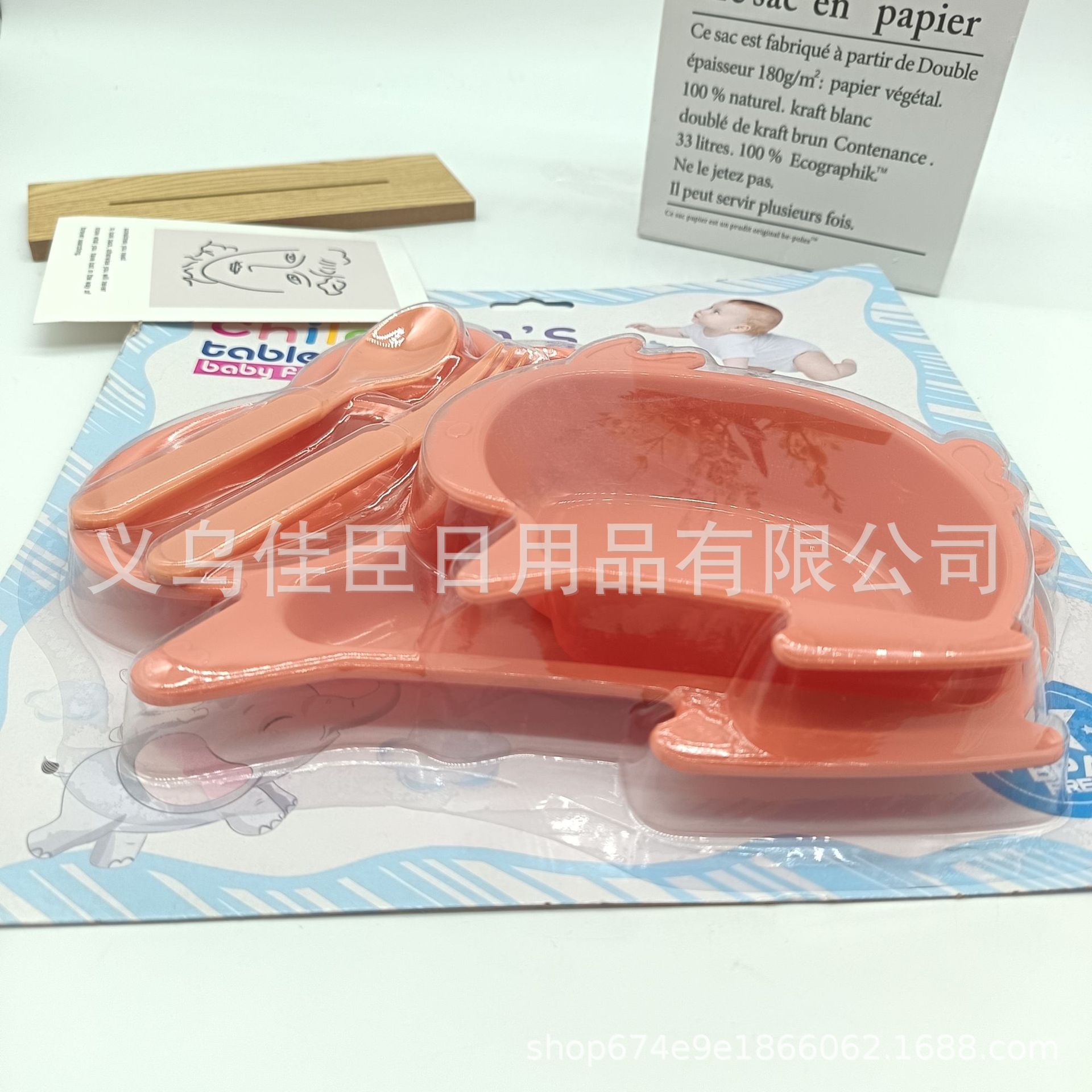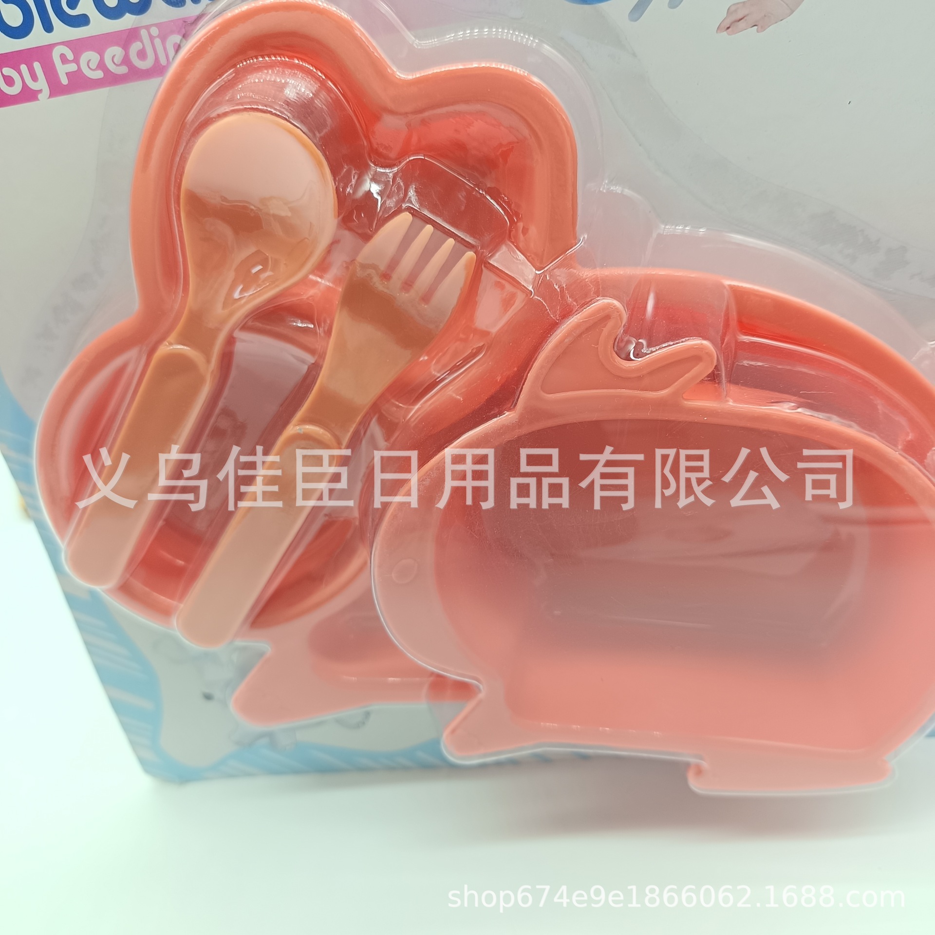 跨境批发卡通可爱PP儿童餐具兔子造型宝宝餐盘叉勺4件组合 母婴用