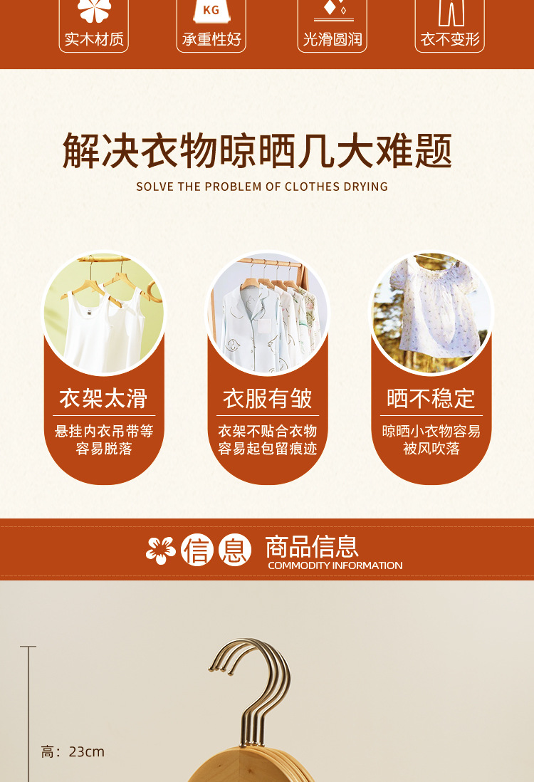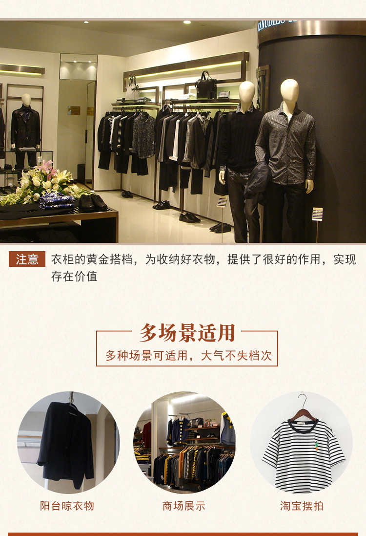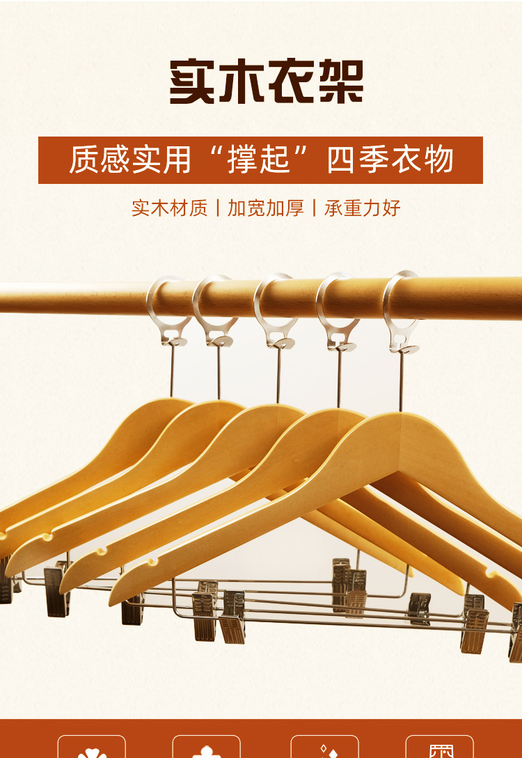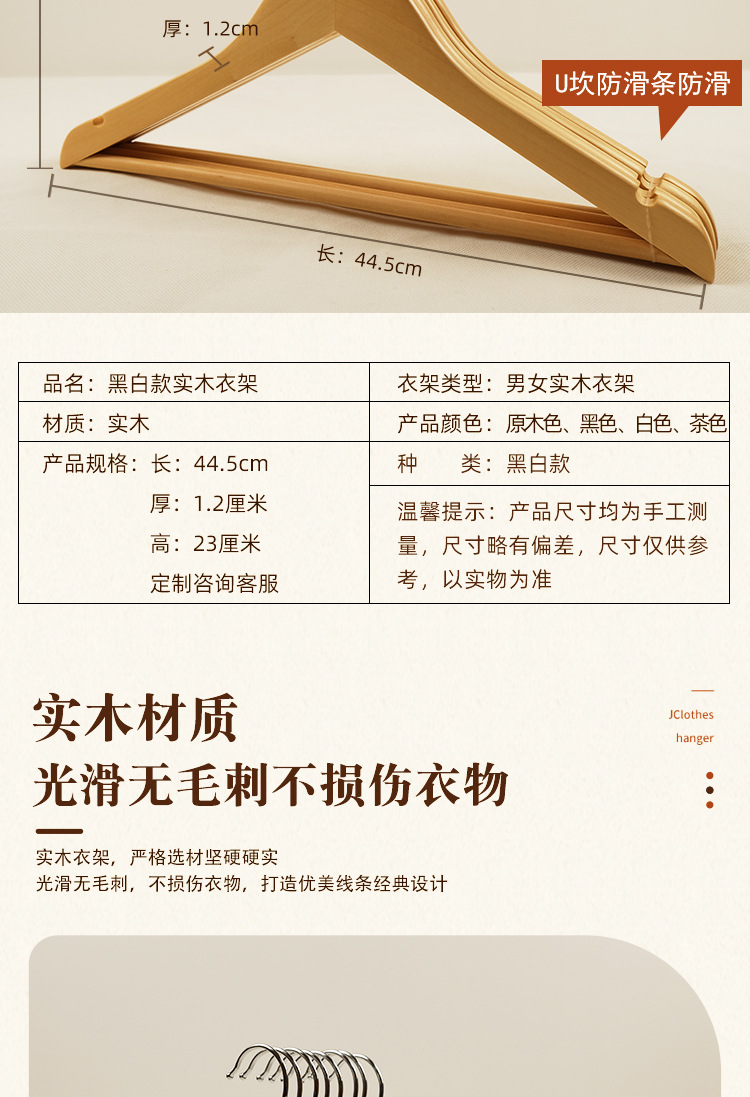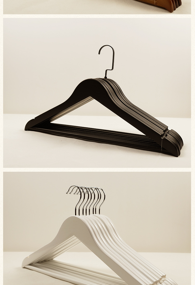 黑白色实木衣架男女 衣撑女装衣服简约木质防滑无痕家用实木衣架