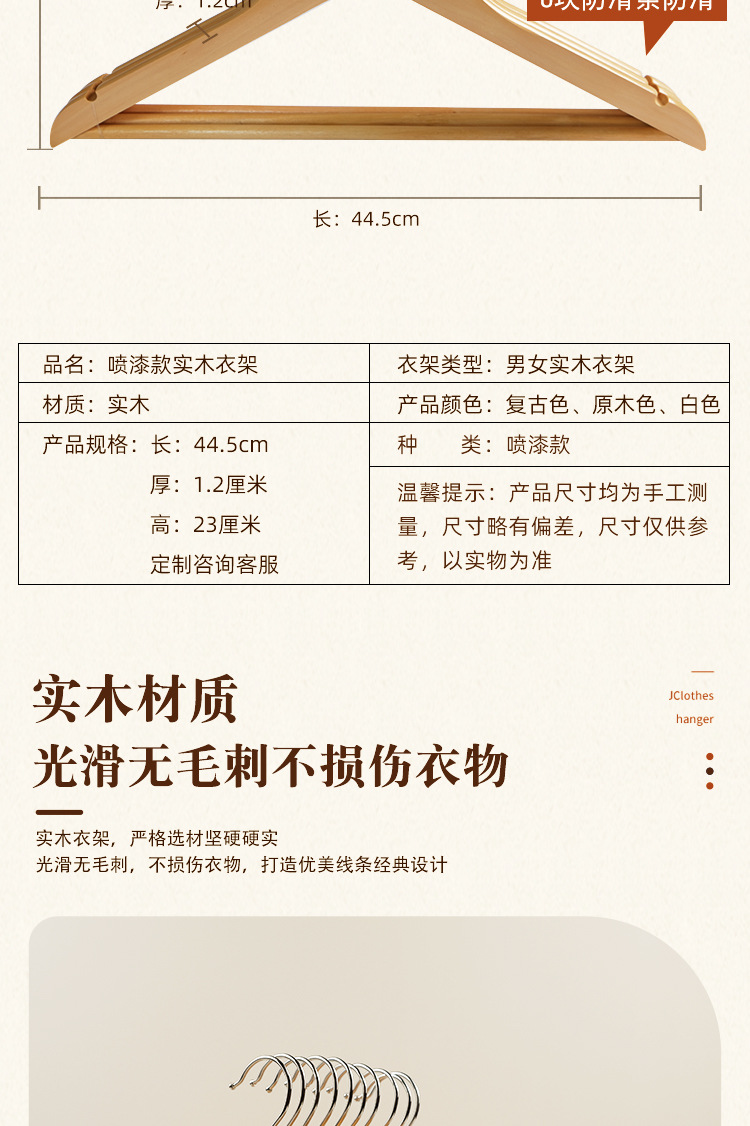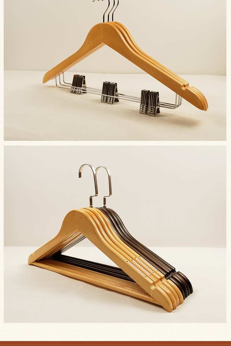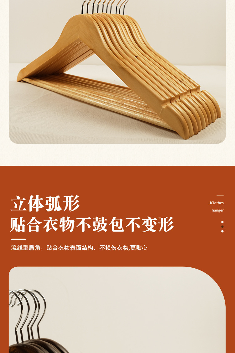 木衣架荷木衣架家用挂衣复古加粗晾衣挂裤架酒店衣架无痕防肩角