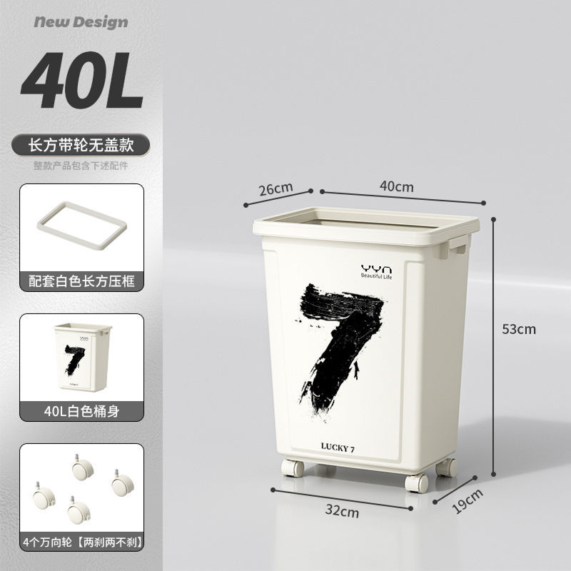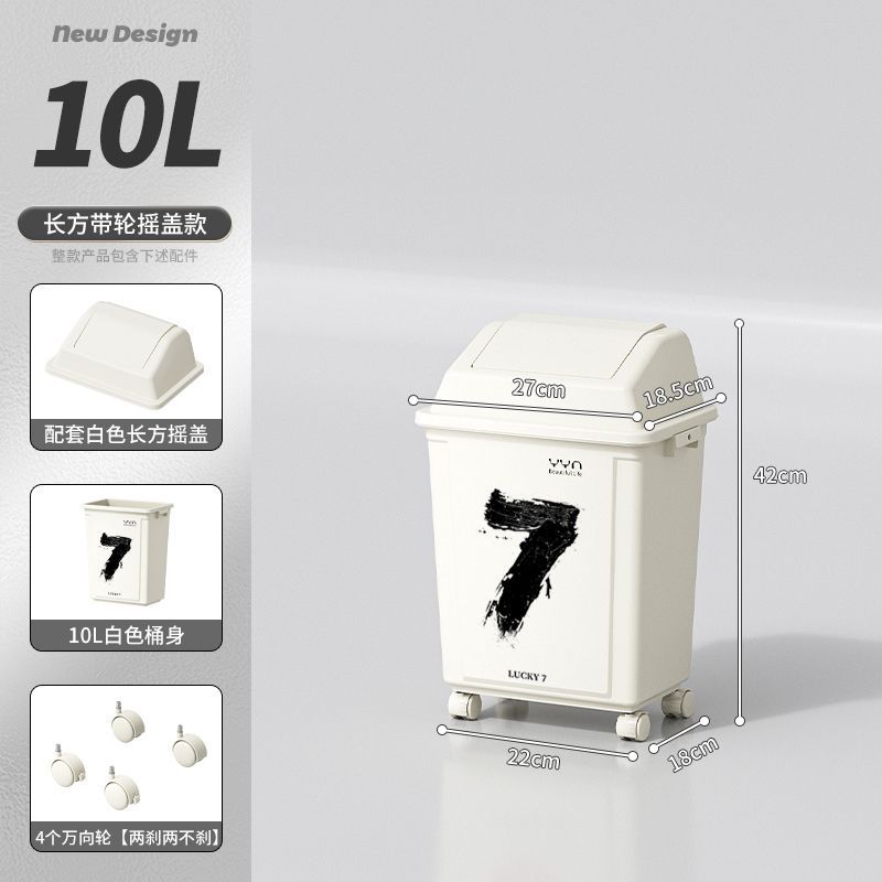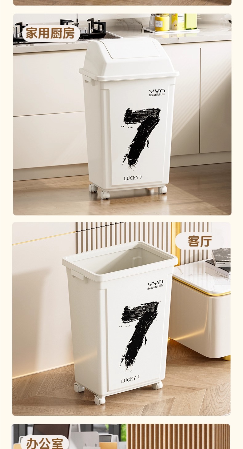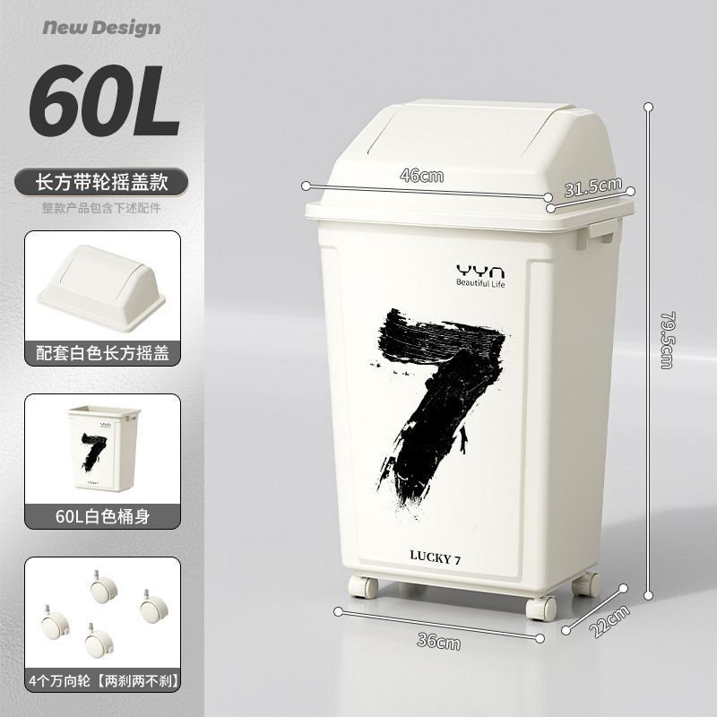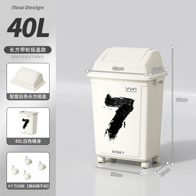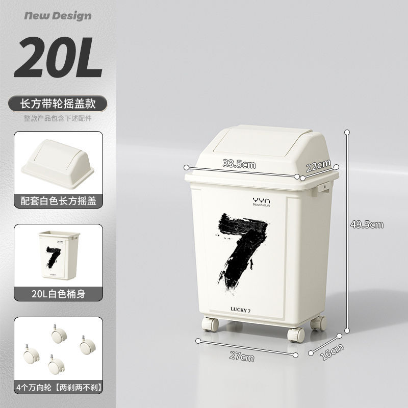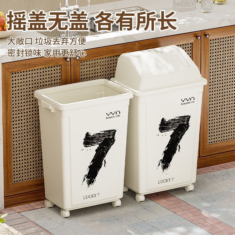 摇盖带万向轮垃圾桶可移动大容量家用商用办公室高颜值2025新款