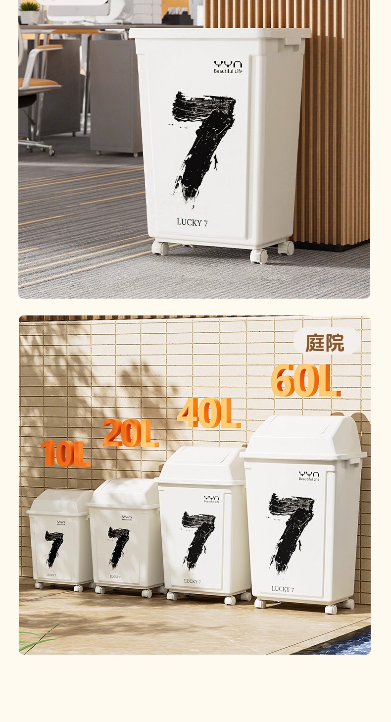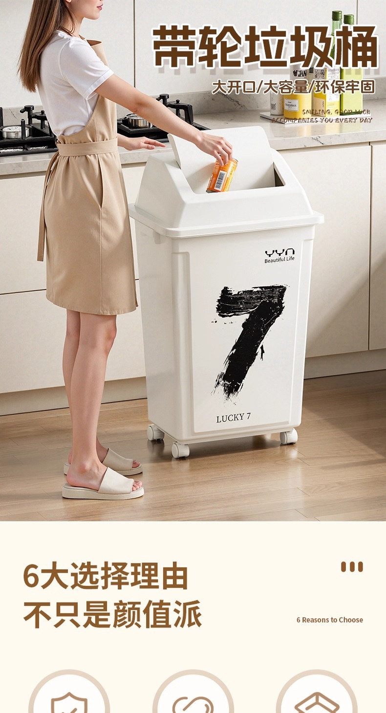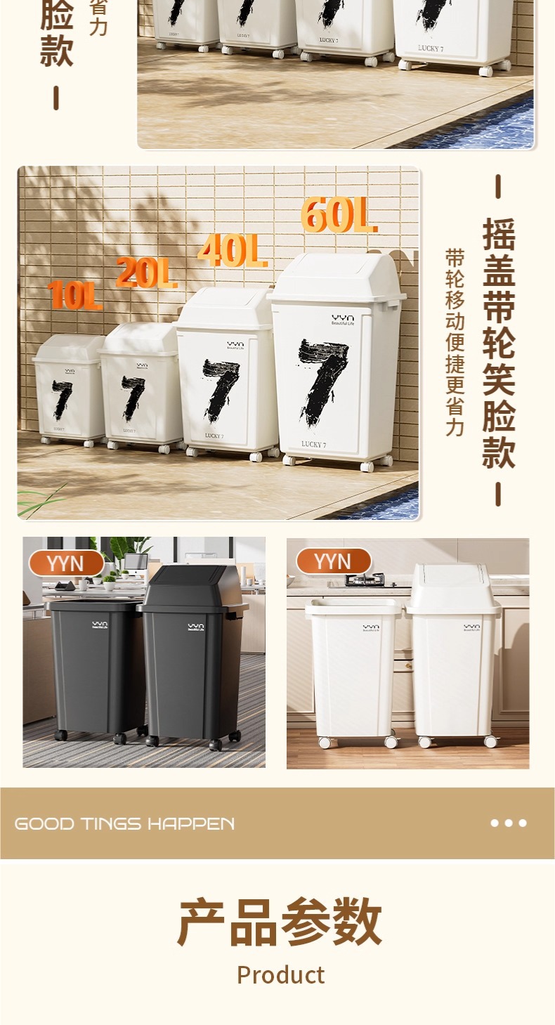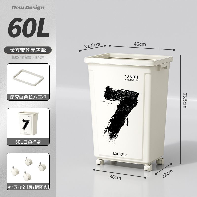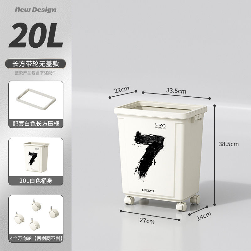 摇盖带万向轮垃圾桶可移动大容量家用商用办公室高颜值2025新款