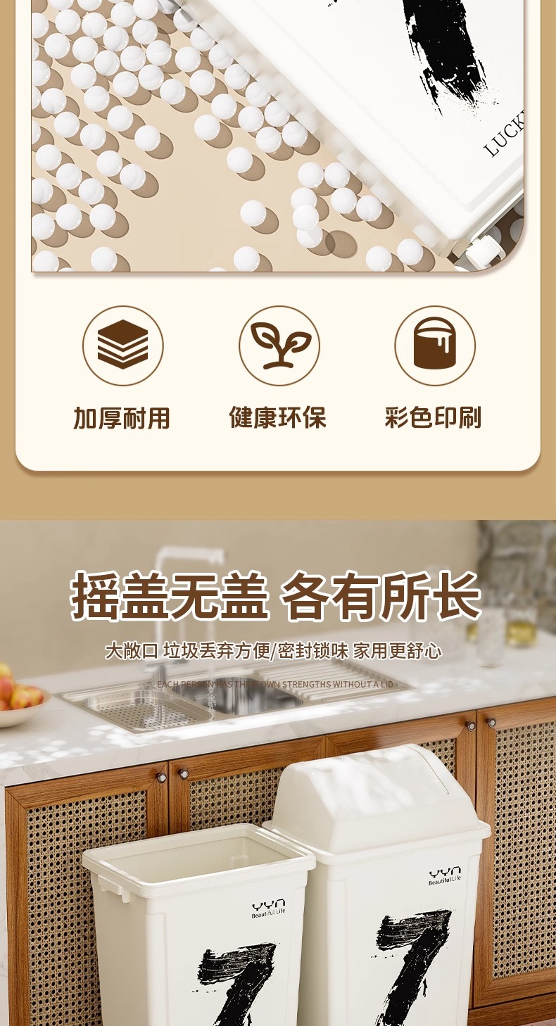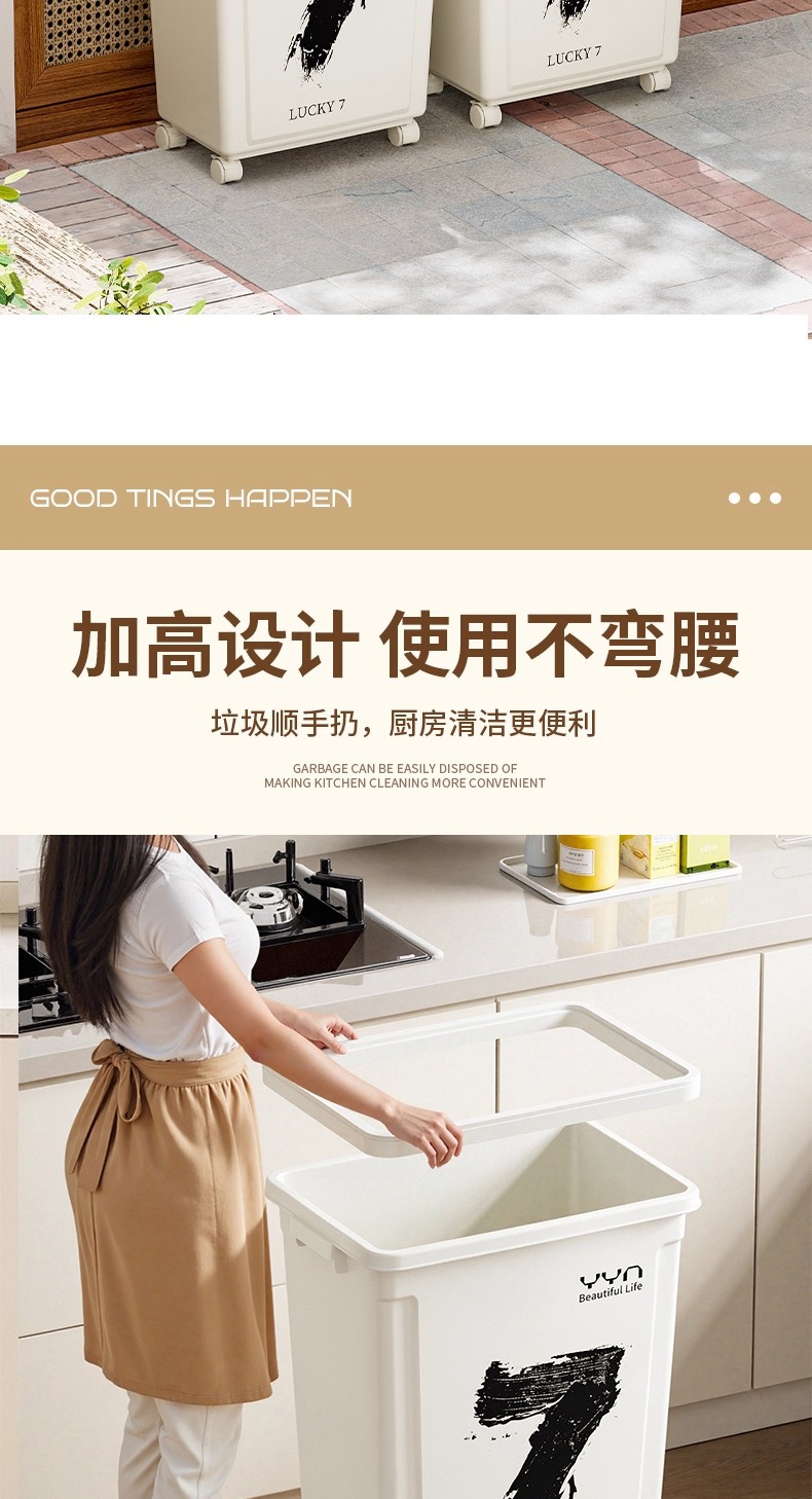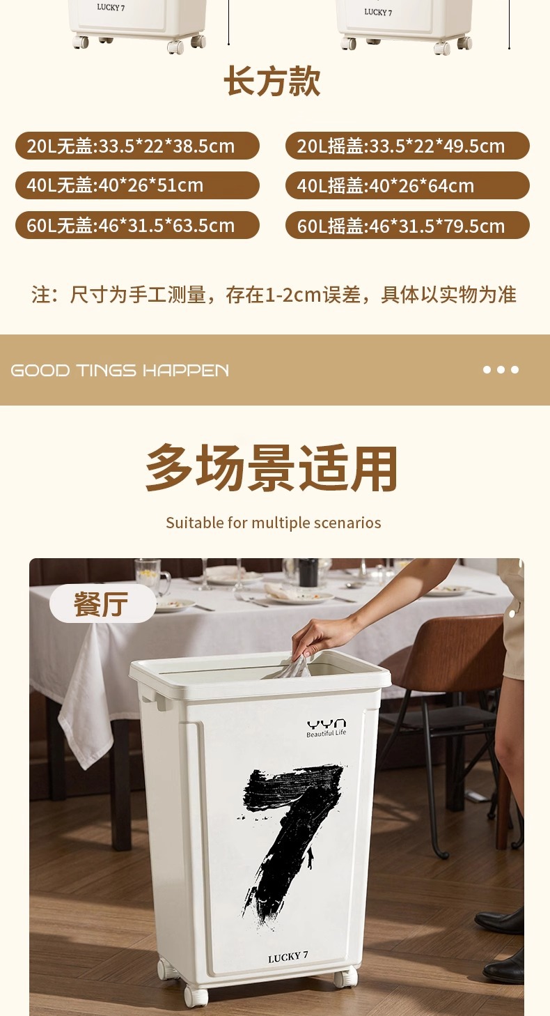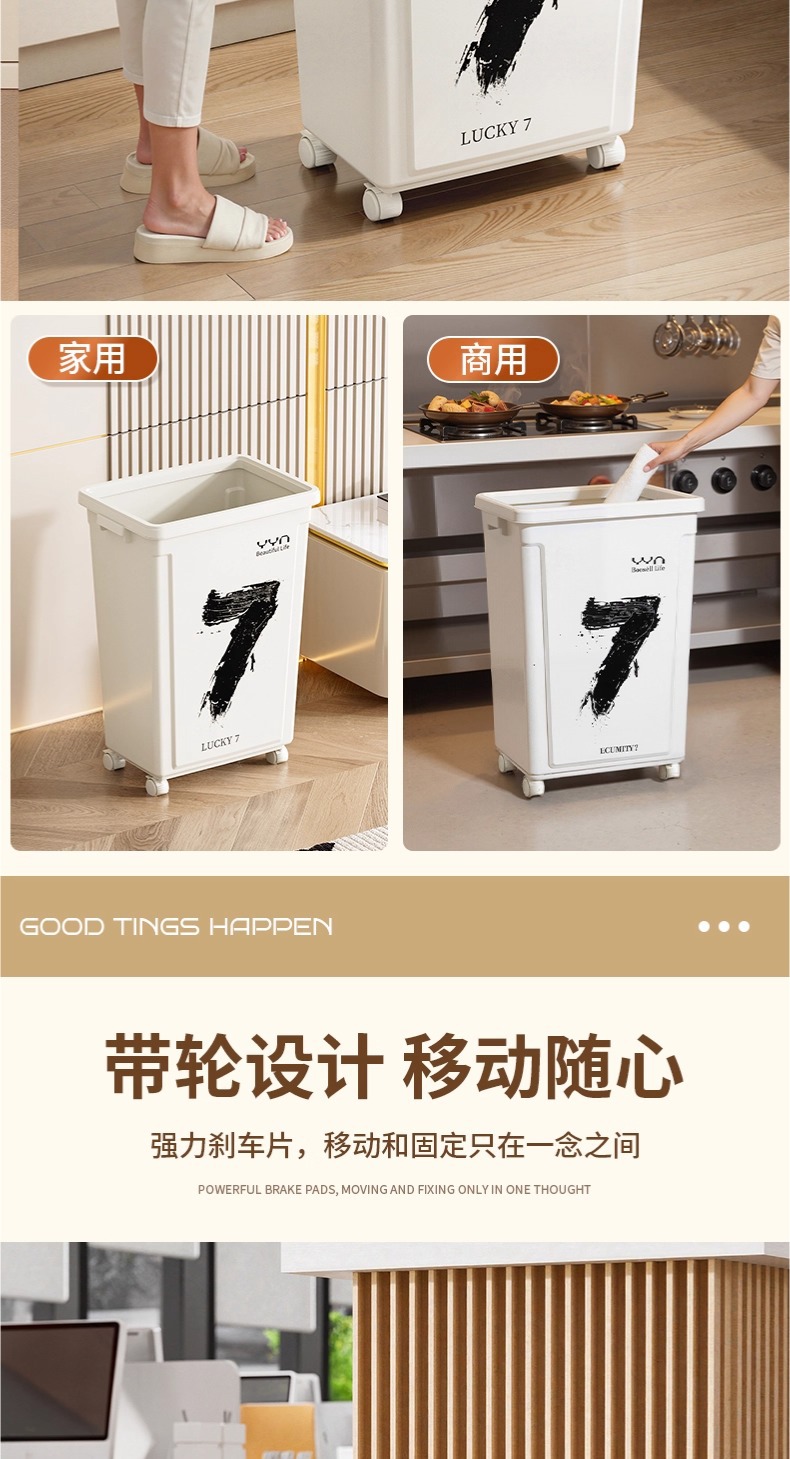 摇盖带万向轮垃圾桶可移动大容量家用商用办公室高颜值2025新款