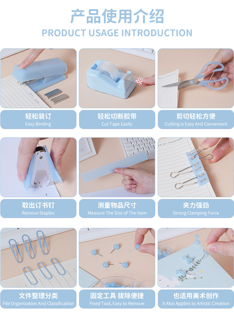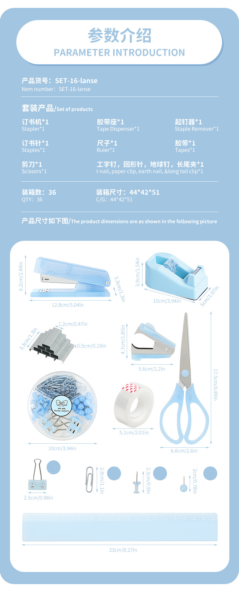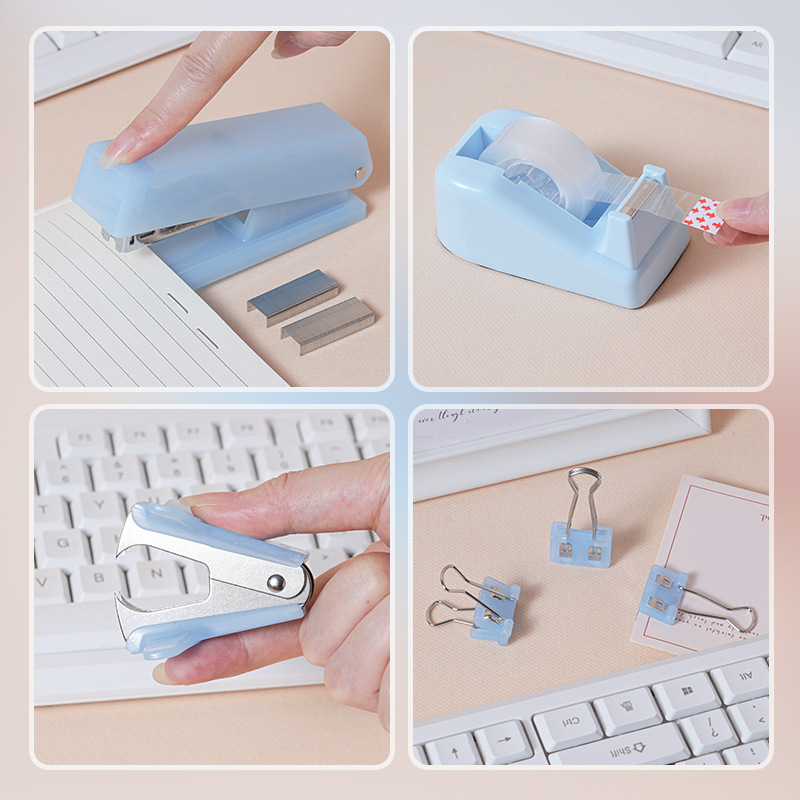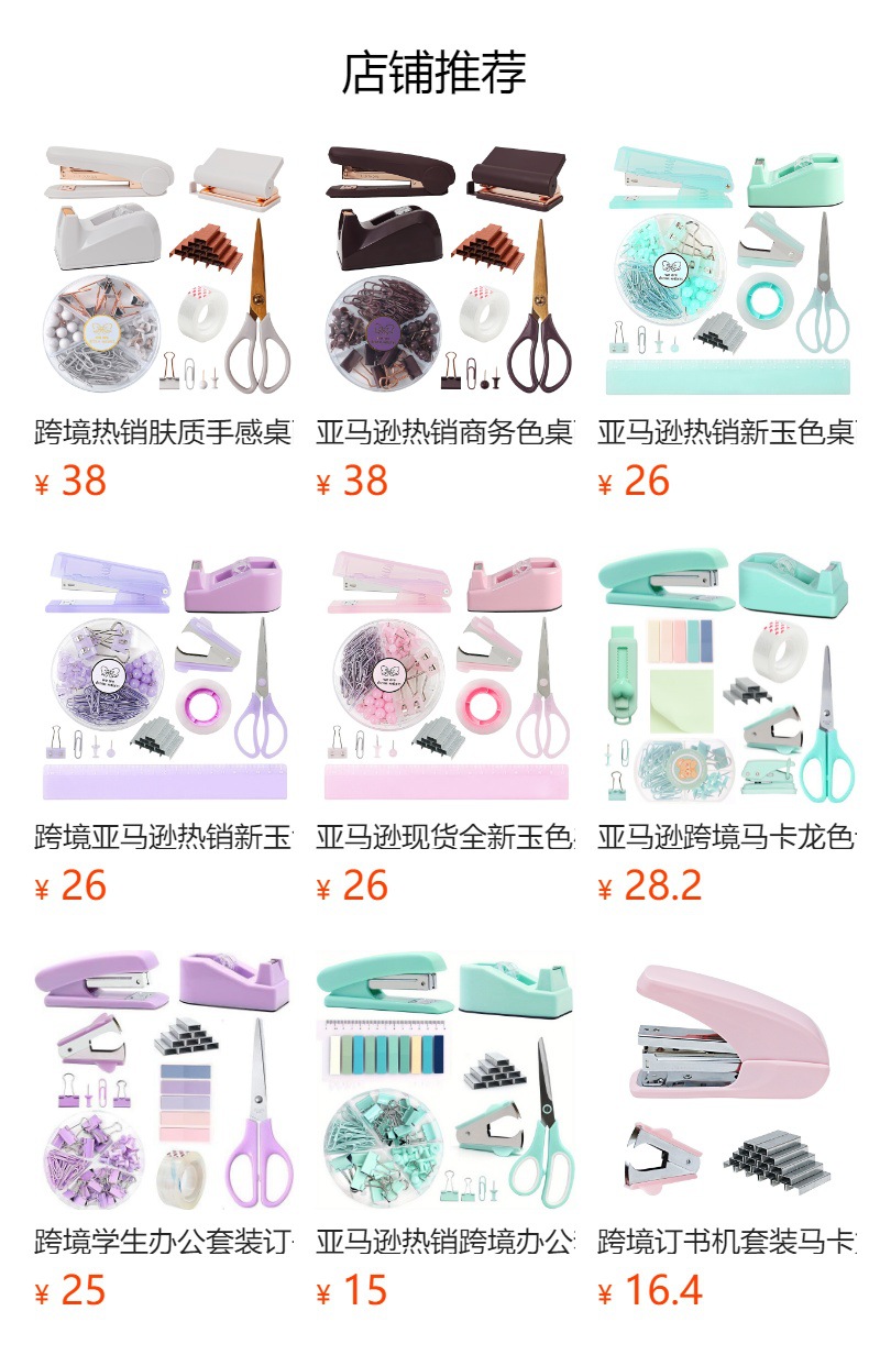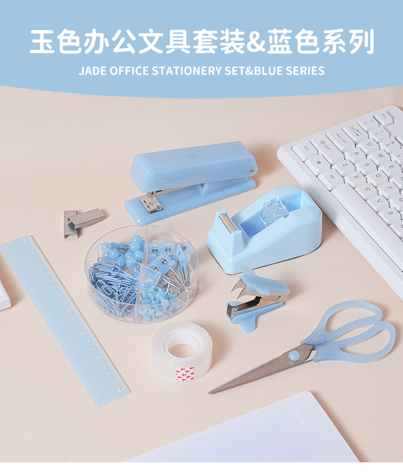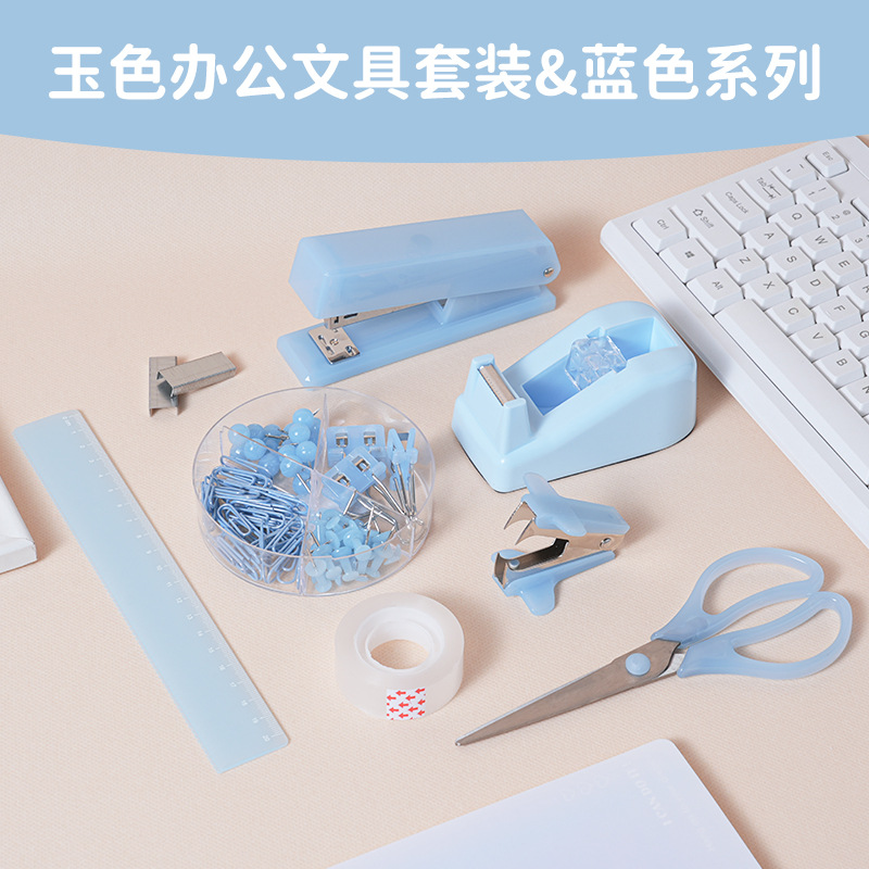 亚马逊爆款新玉色桌面办公文具套装订书机胶带座剪刀跨境热销批发
