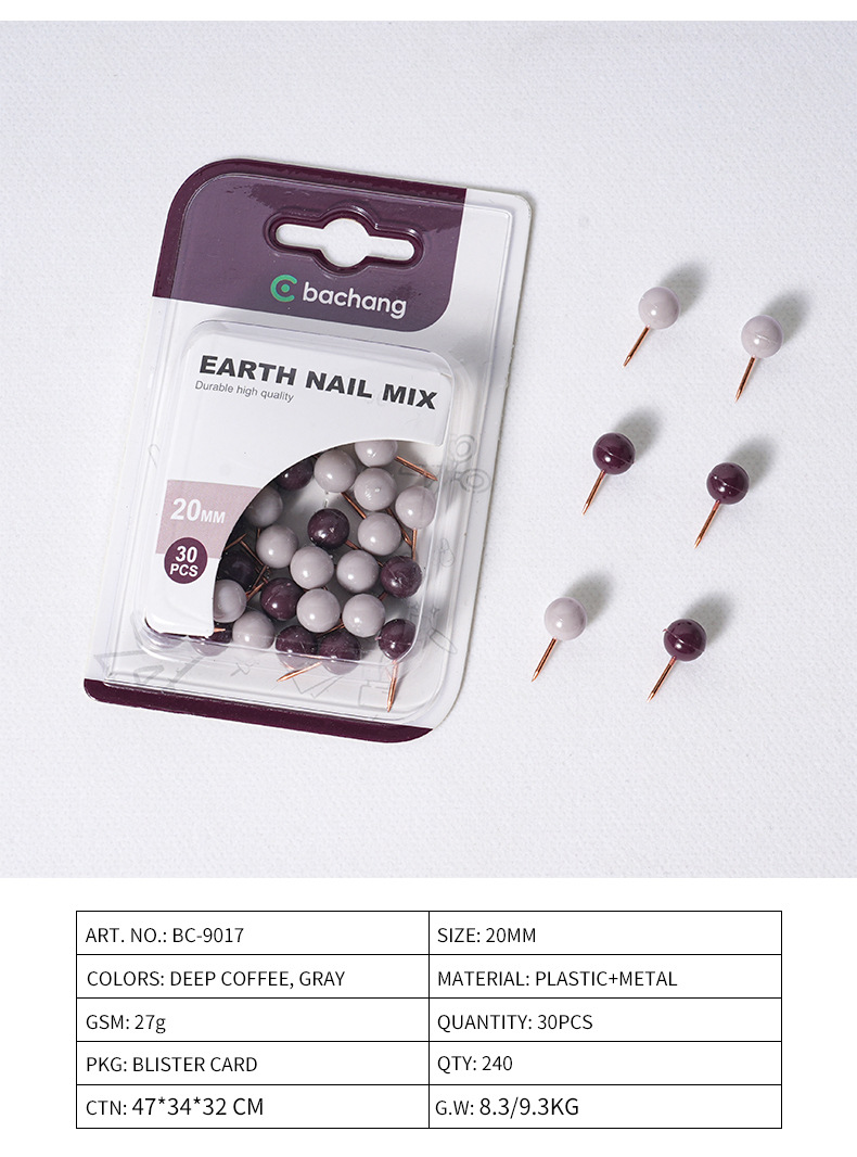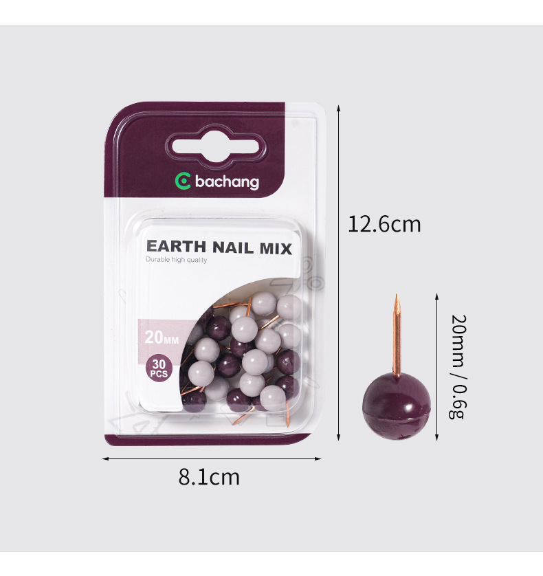 八昌商务色25mm圆形地球钉图钉 办公学生文具套装30枚/卡厂家直销