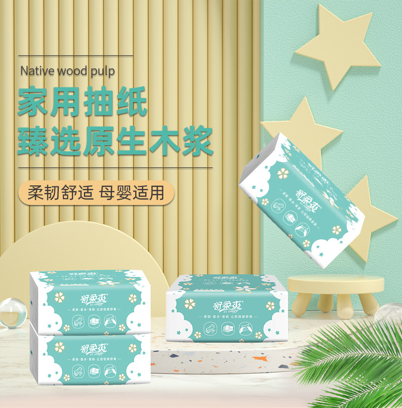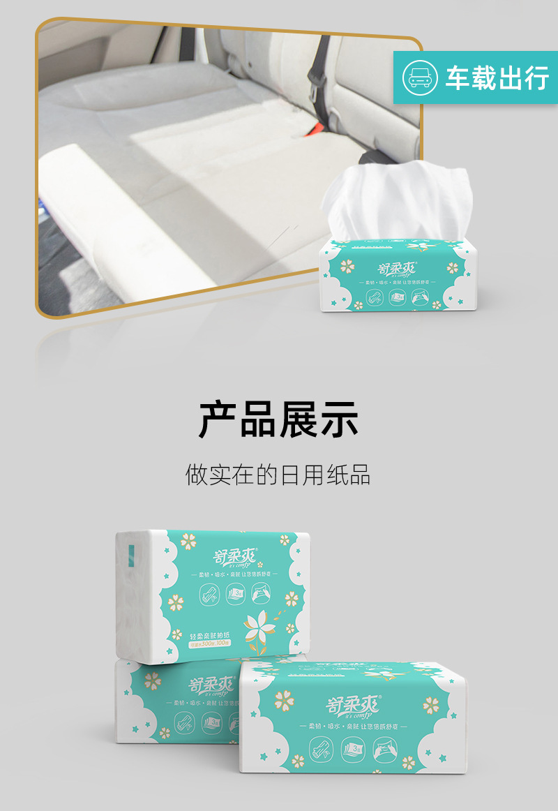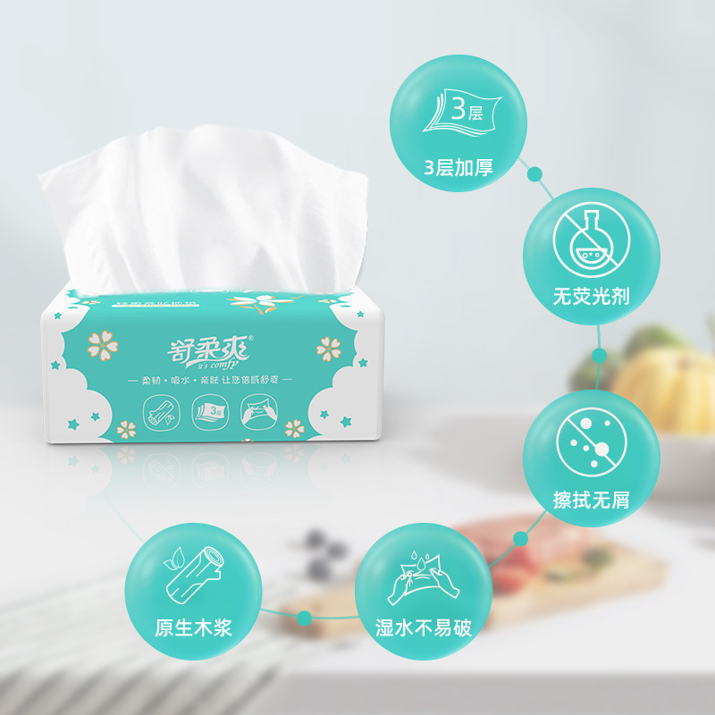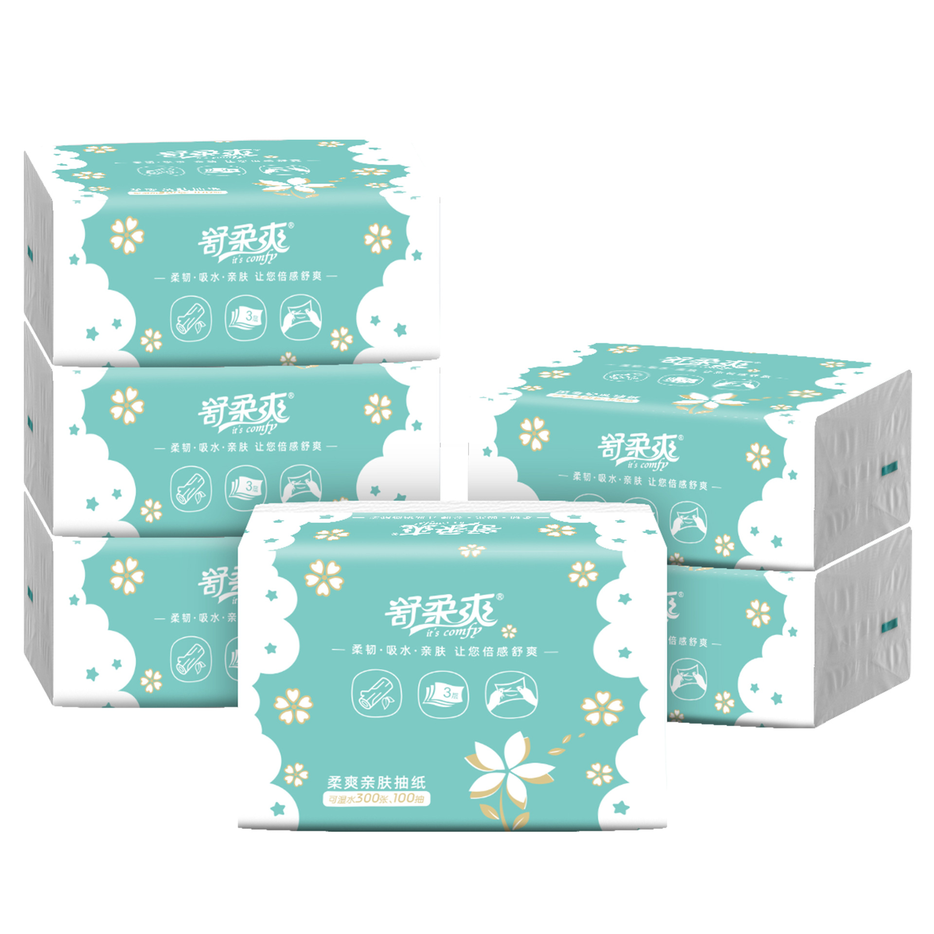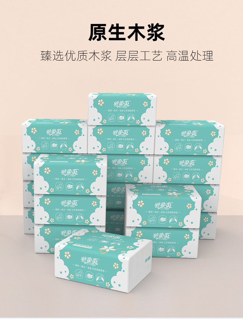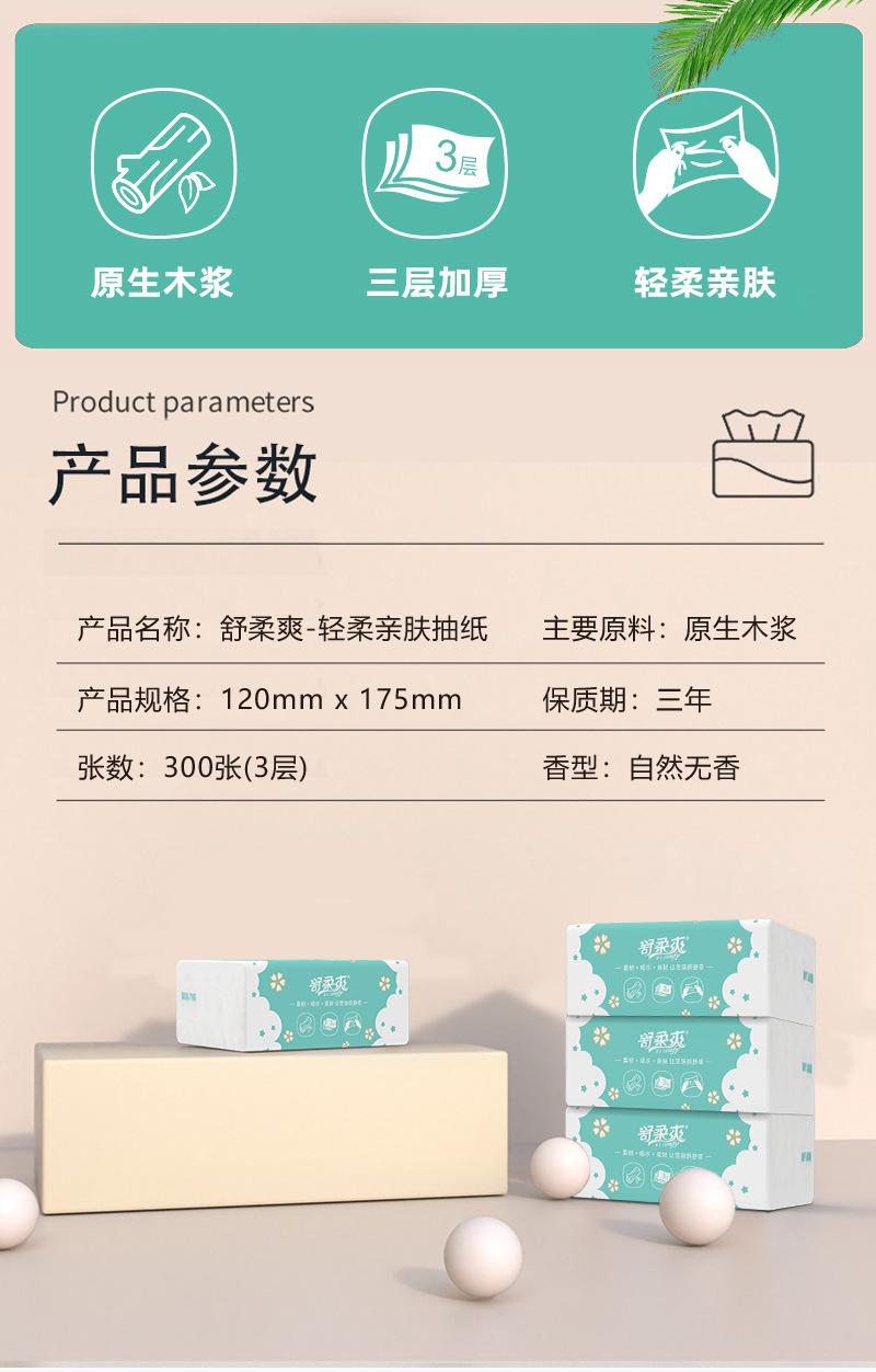 舒柔亲肤原木家用抽纸巾300张饭店餐巾纸3层加厚便携纸抽实惠批发