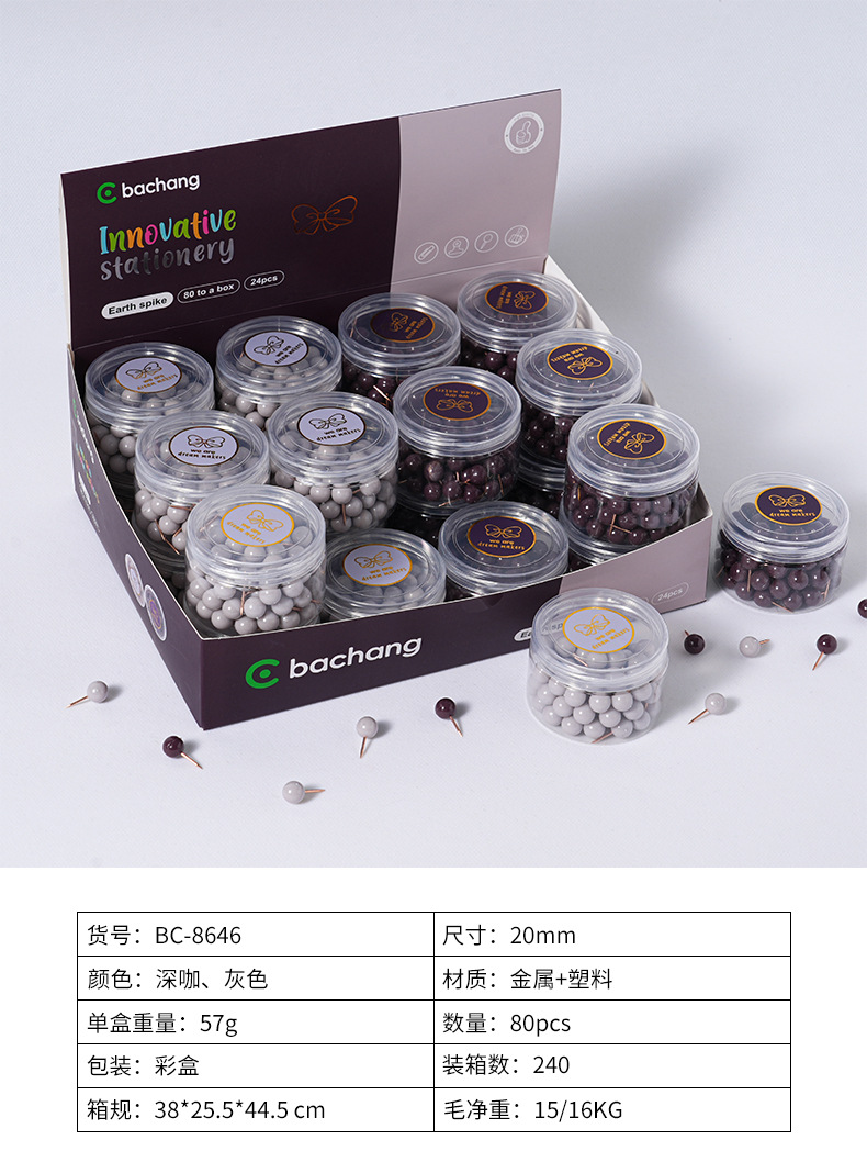 八昌亚马逊专供地球钉商务色PP盒图钉肤质手感圆形小钉子工厂批发