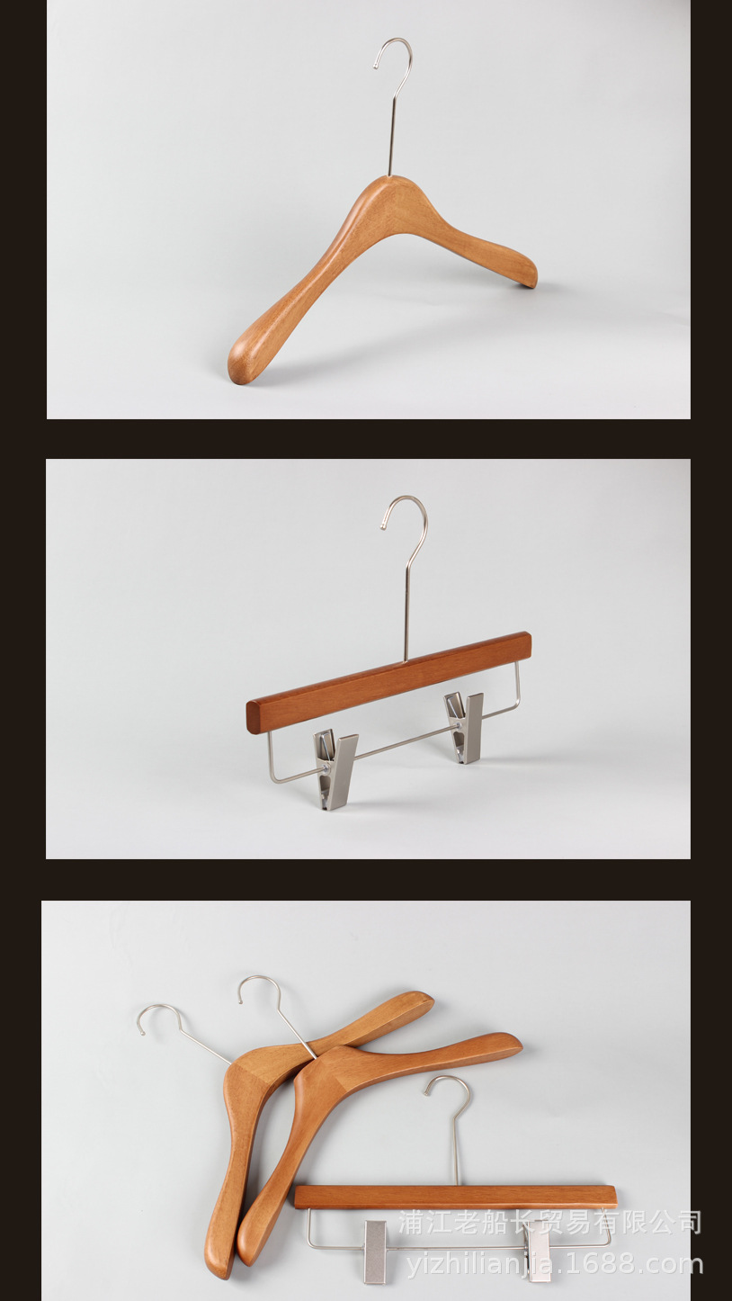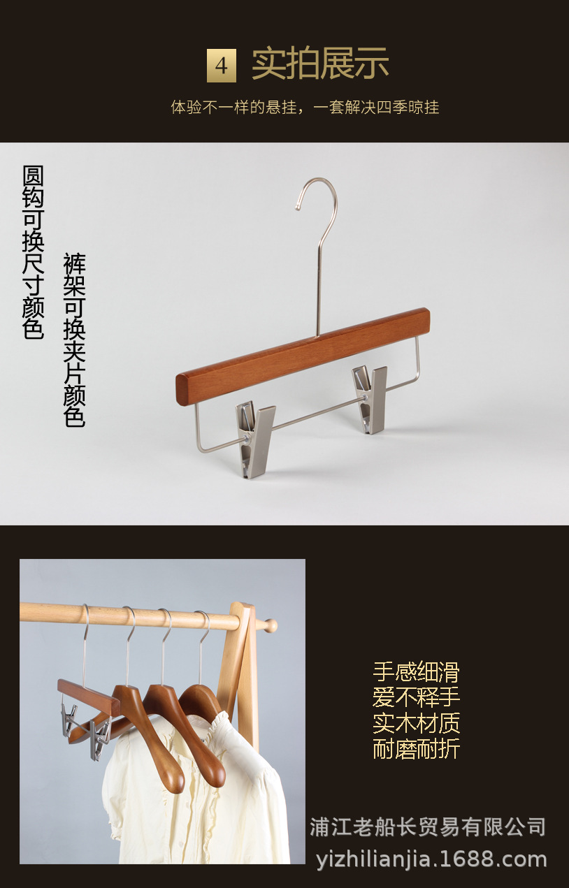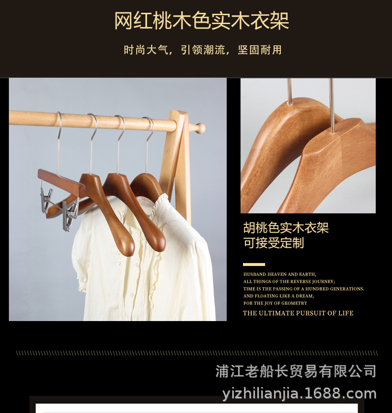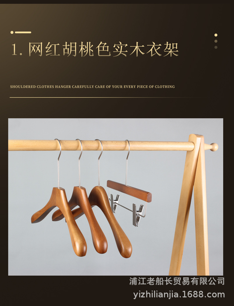 网红实木衣架服装店胡桃木衣挂女装复古烤漆新中式木头无痕裤架
