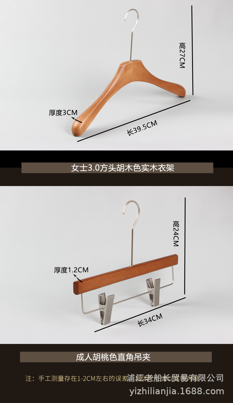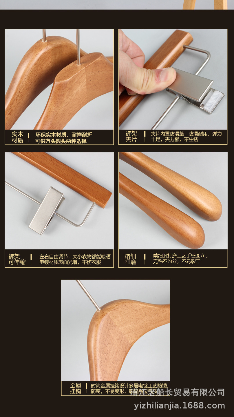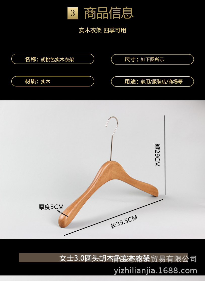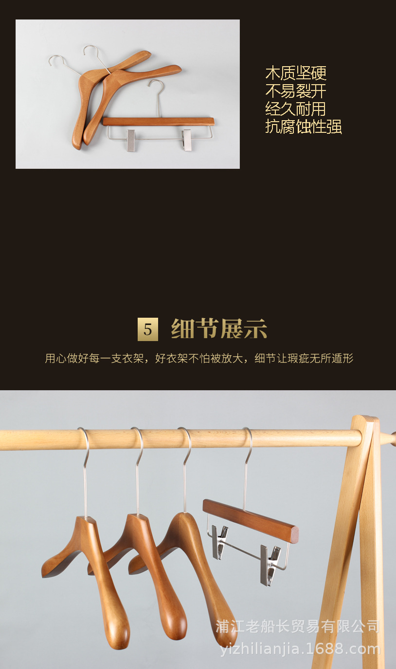 网红实木衣架服装店胡桃木衣挂女装复古烤漆新中式木头无痕裤架
