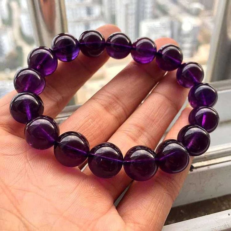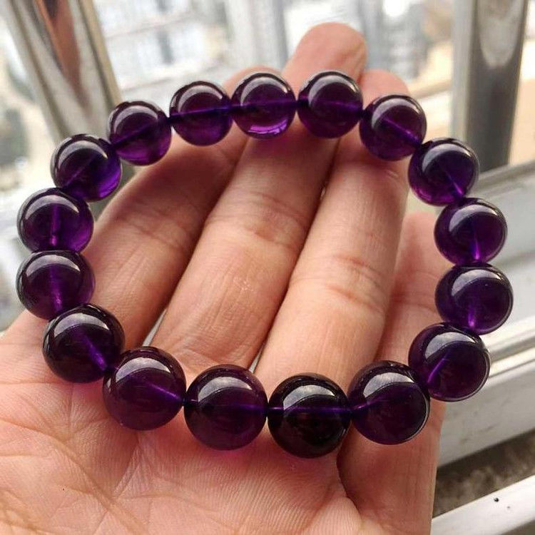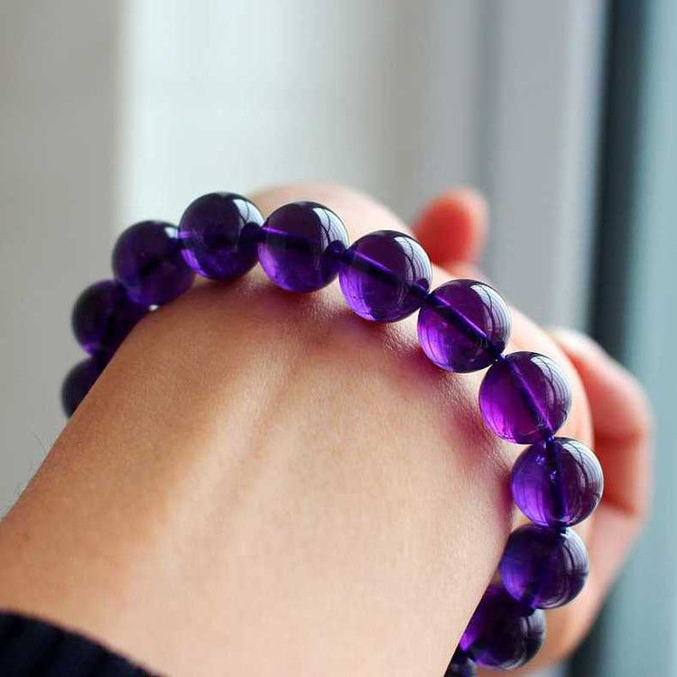 9A级收藏宝石级手串乌拉圭紫水晶手链全天然男女款深紫色配饰批发