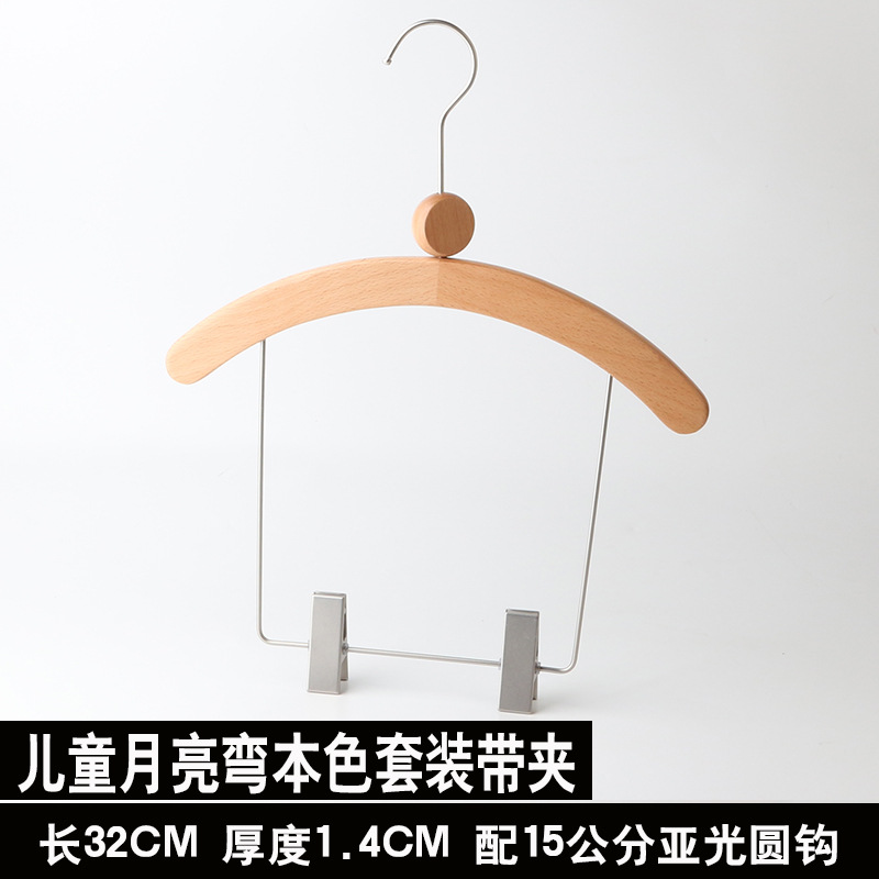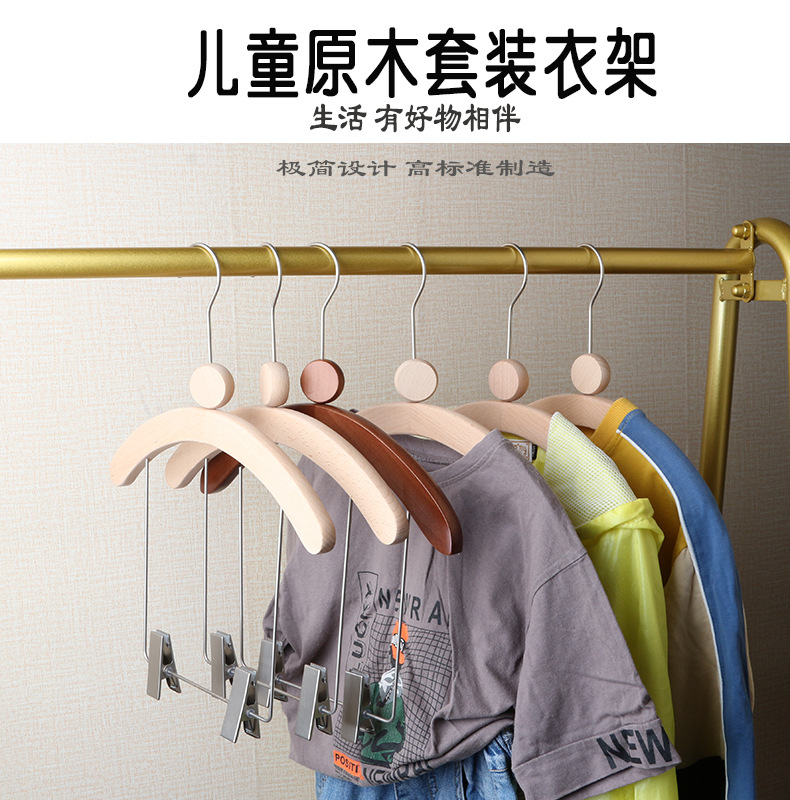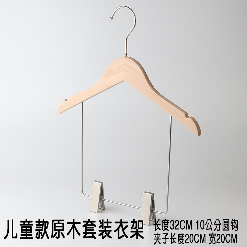 儿童实木服装店衣架家用宝宝婴儿套装夹子童装店木质防滑衣挂裤夹