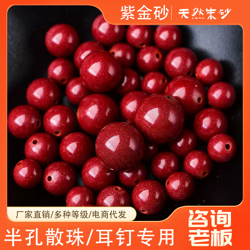 朱砂原矿紫金砂散珠耳钉散珠半孔批发拿货高含量珠子手串